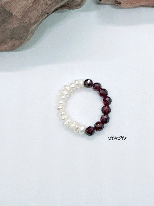 ガーネットと淡水パールの組み合わせの指輪。 ガーネットは深い赤色が特徴で、その存在感はどんなシーンにも華を添えます。 淡水パールはその柔らかな輝きと温かみのある色合いで、女性らしさを引き立てます。 ✵ガーネット✵ ・情熱と活力を与え、持ち主の魅力を高めるとされています。 ・人間関係や愛情を深めるサポートをすると言われています。 ✵淡水パール✵ ・内面の美しさを引き出し、優雅さを演出します。 ・心の安定をもたらし、リラックス効果があるとも言われています。 サイズ 11号〜13号(ゴム) ※ギフトで箱をお選びの際は、送料はレターパックを選択してください。