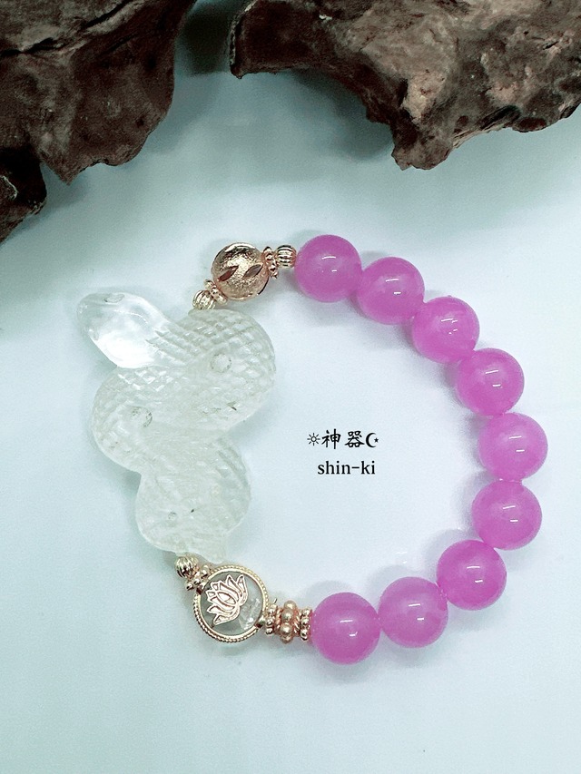 stone bracelet《人魚》塩源瑪瑙×《星》水晶×ピンクカラージェード