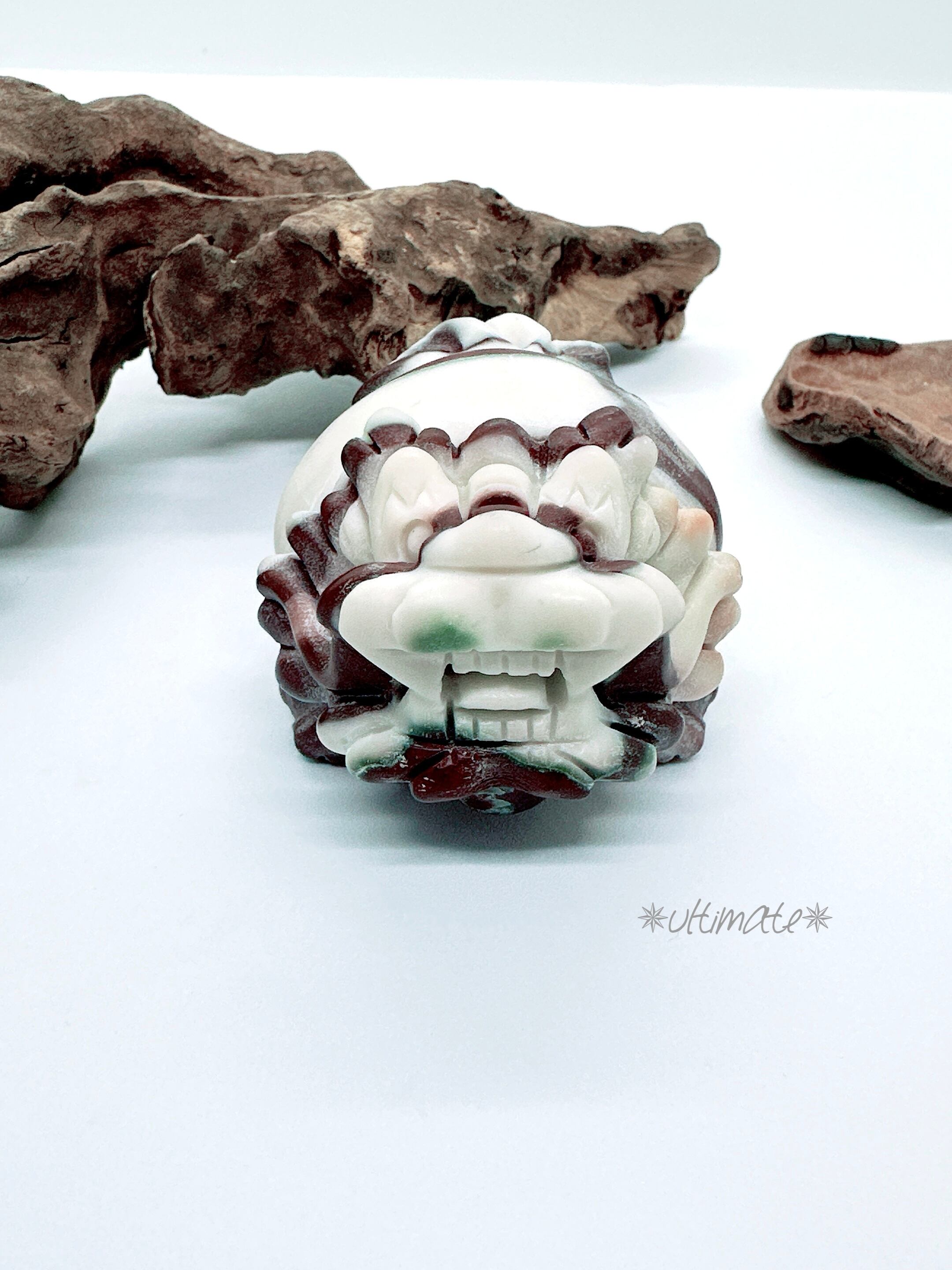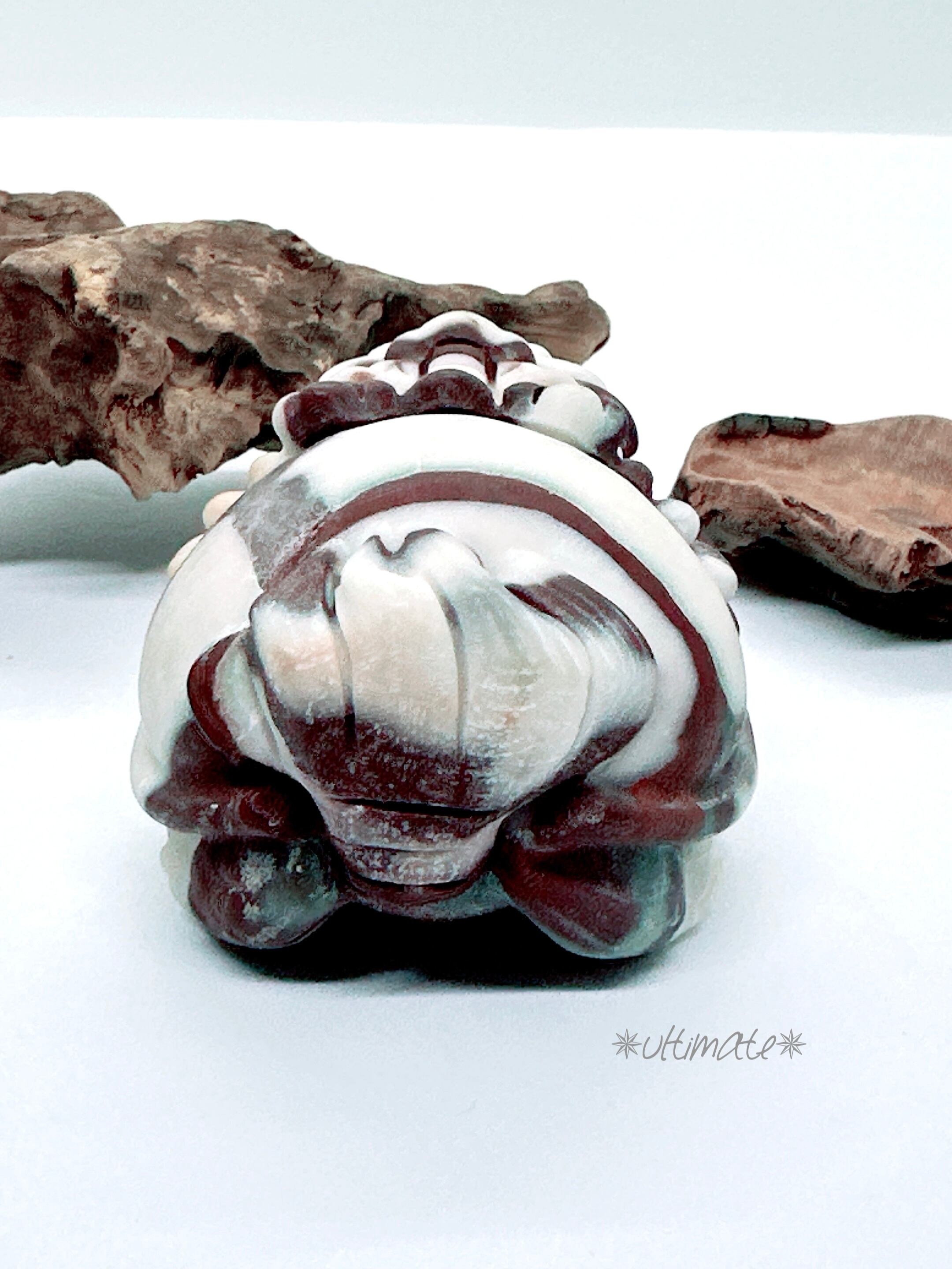 茶色と白の縞模様の可愛いチョコレートカルサイトの龍亀。
