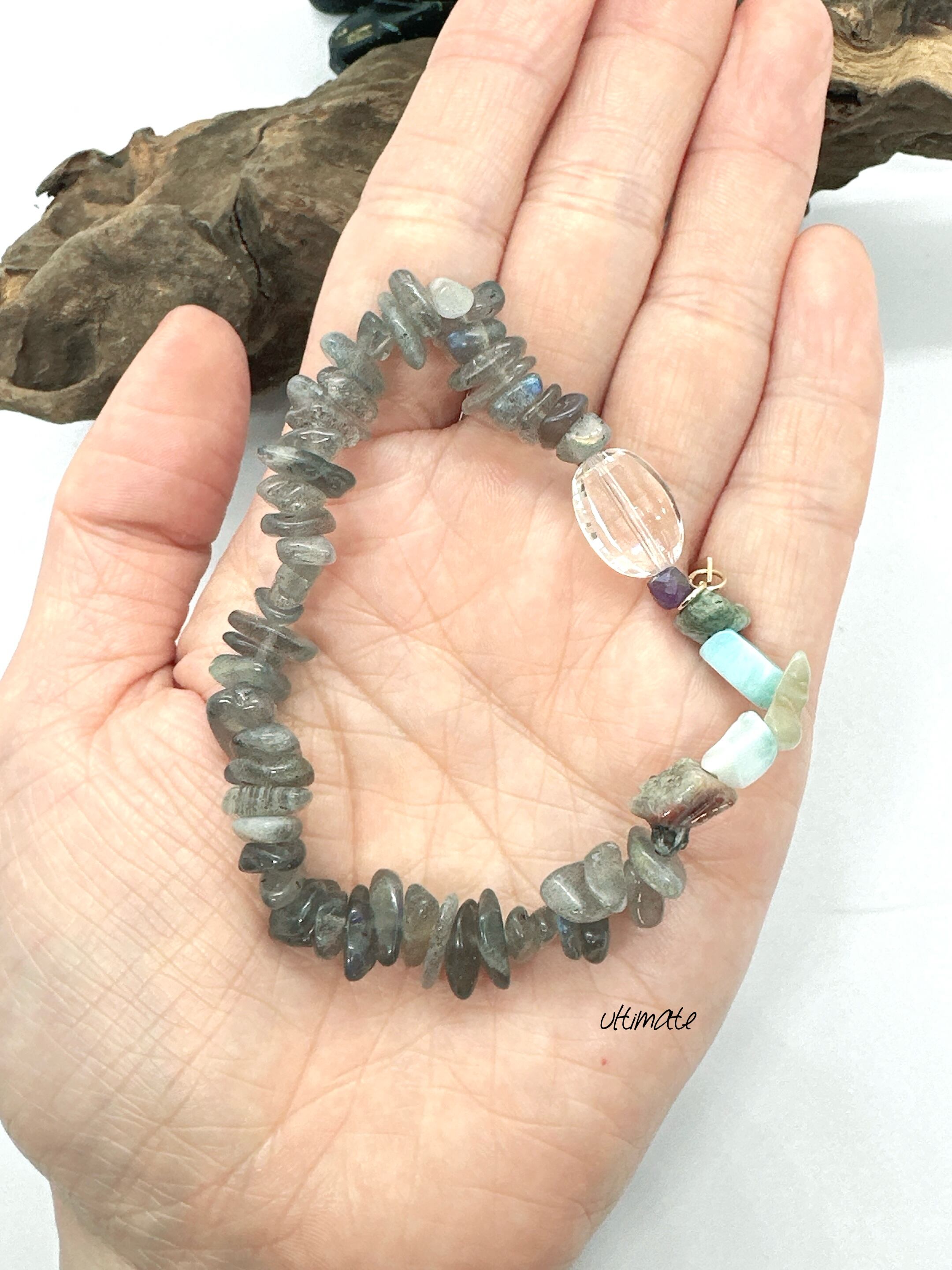 stone bracelet ラブラドライト×ラリマー×アメジスト×水晶