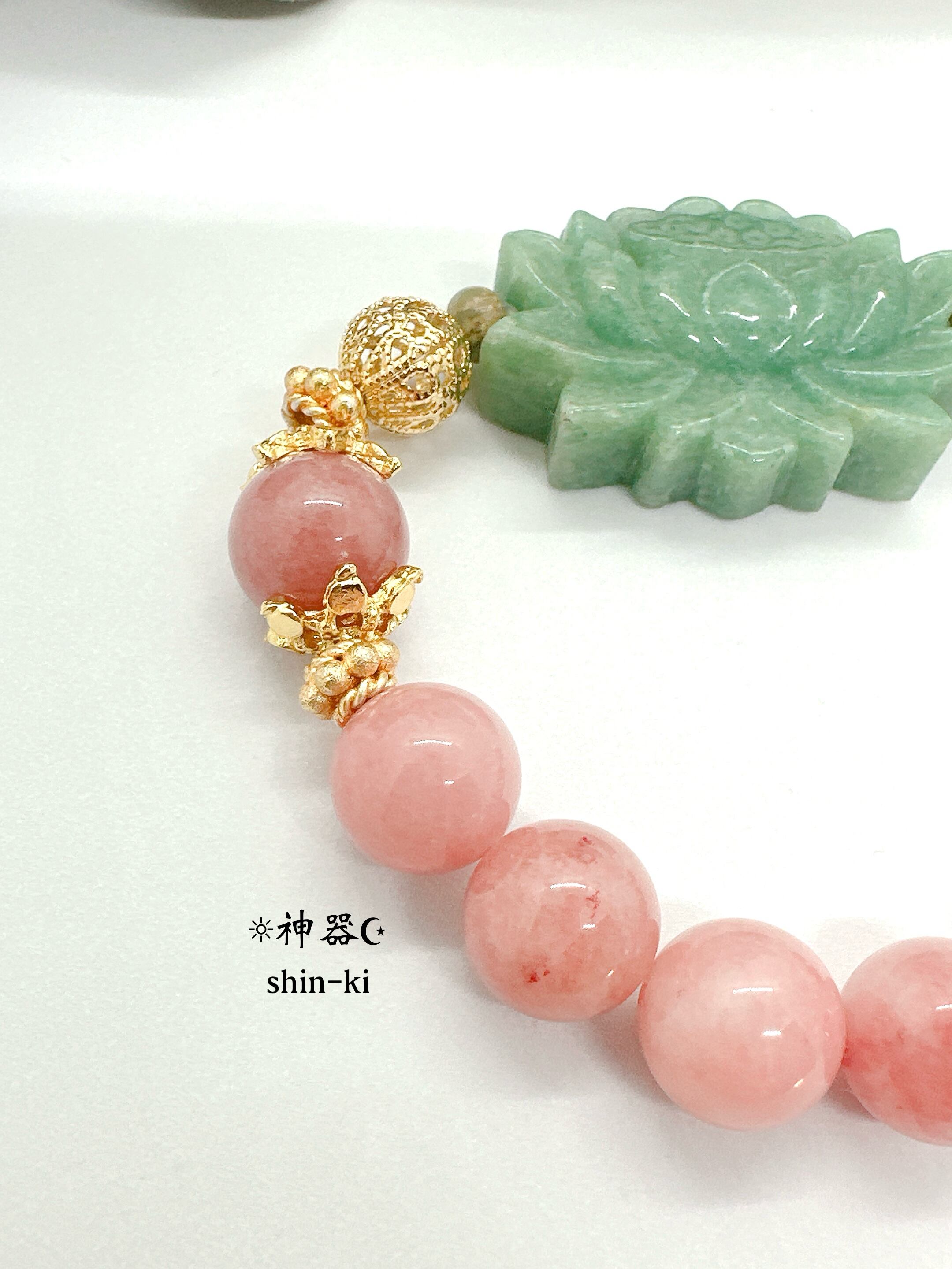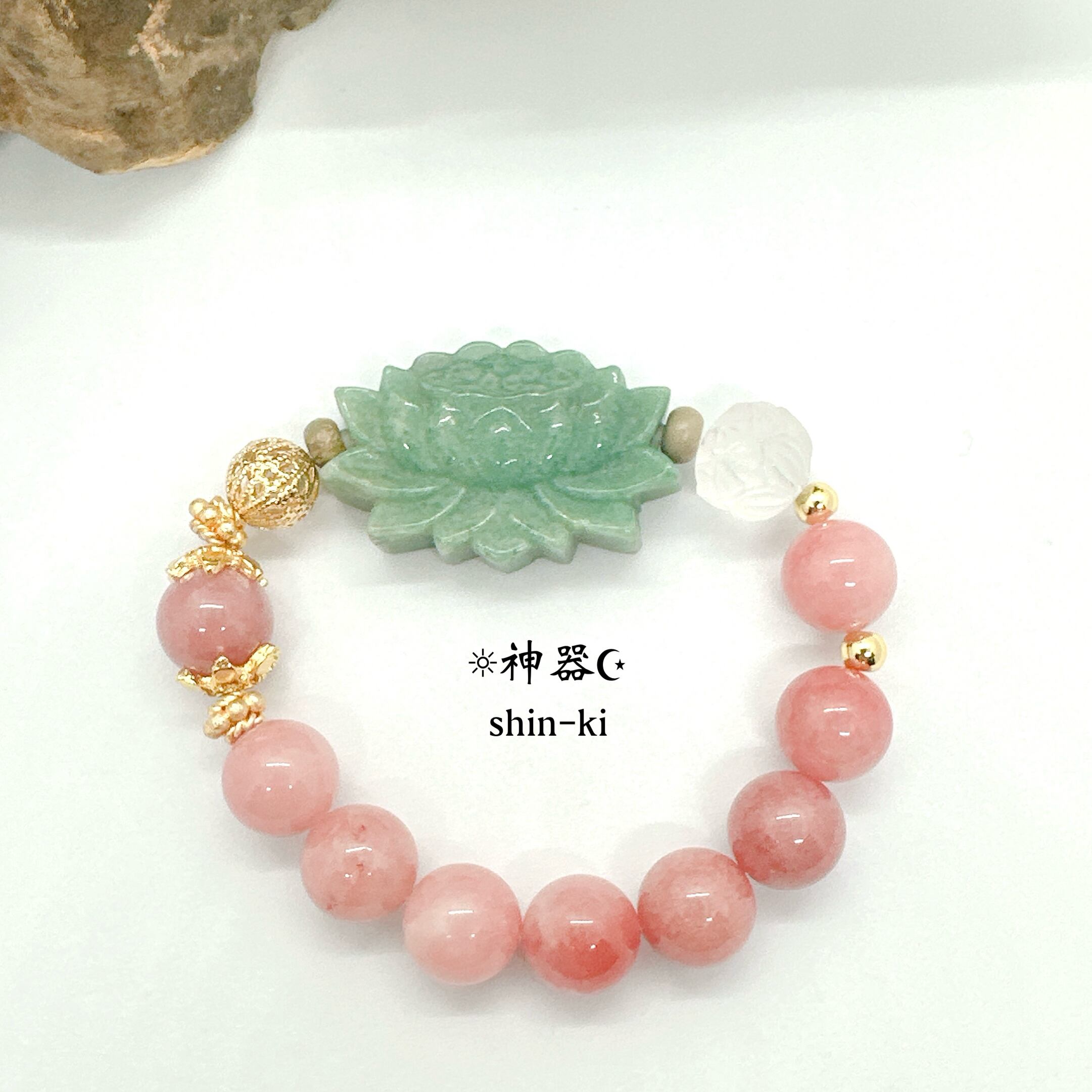 stone bracelet 《蓮》グリーンアベンチュリン×ロータス水晶×ピンクカラージェイド
