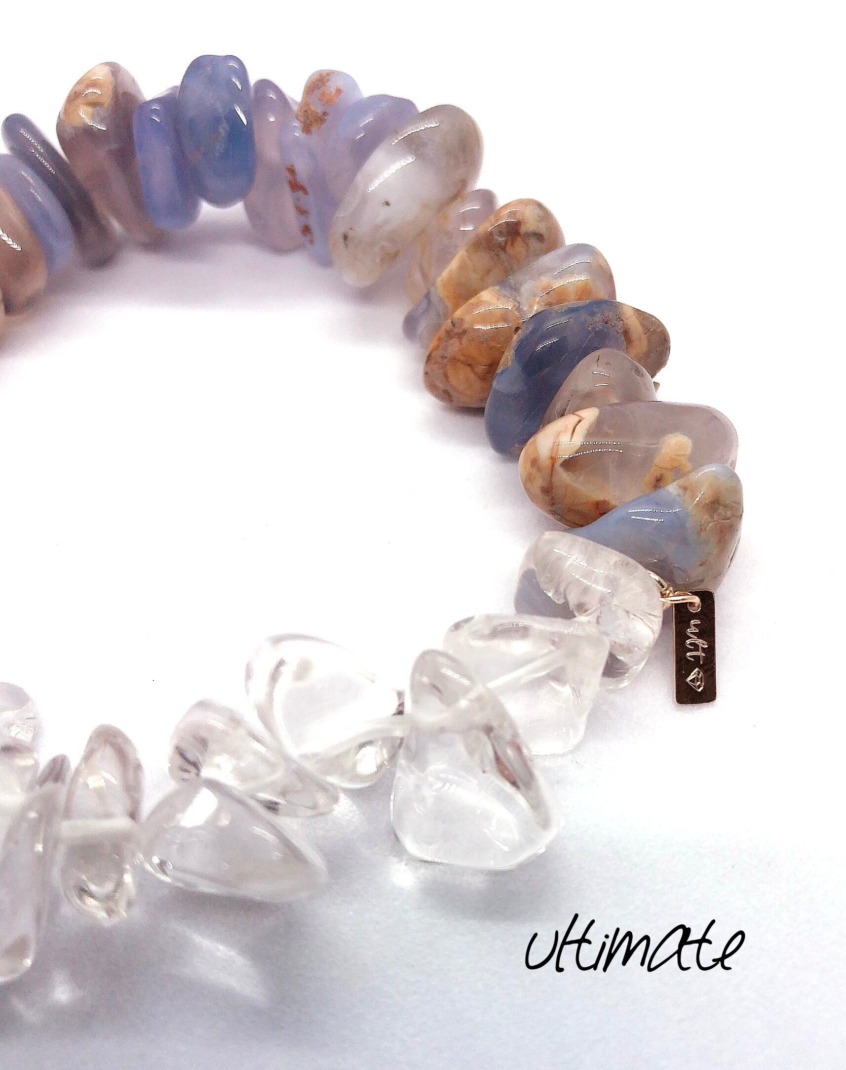stone bracelet《母岩付きブルーカルセドニー×水晶》