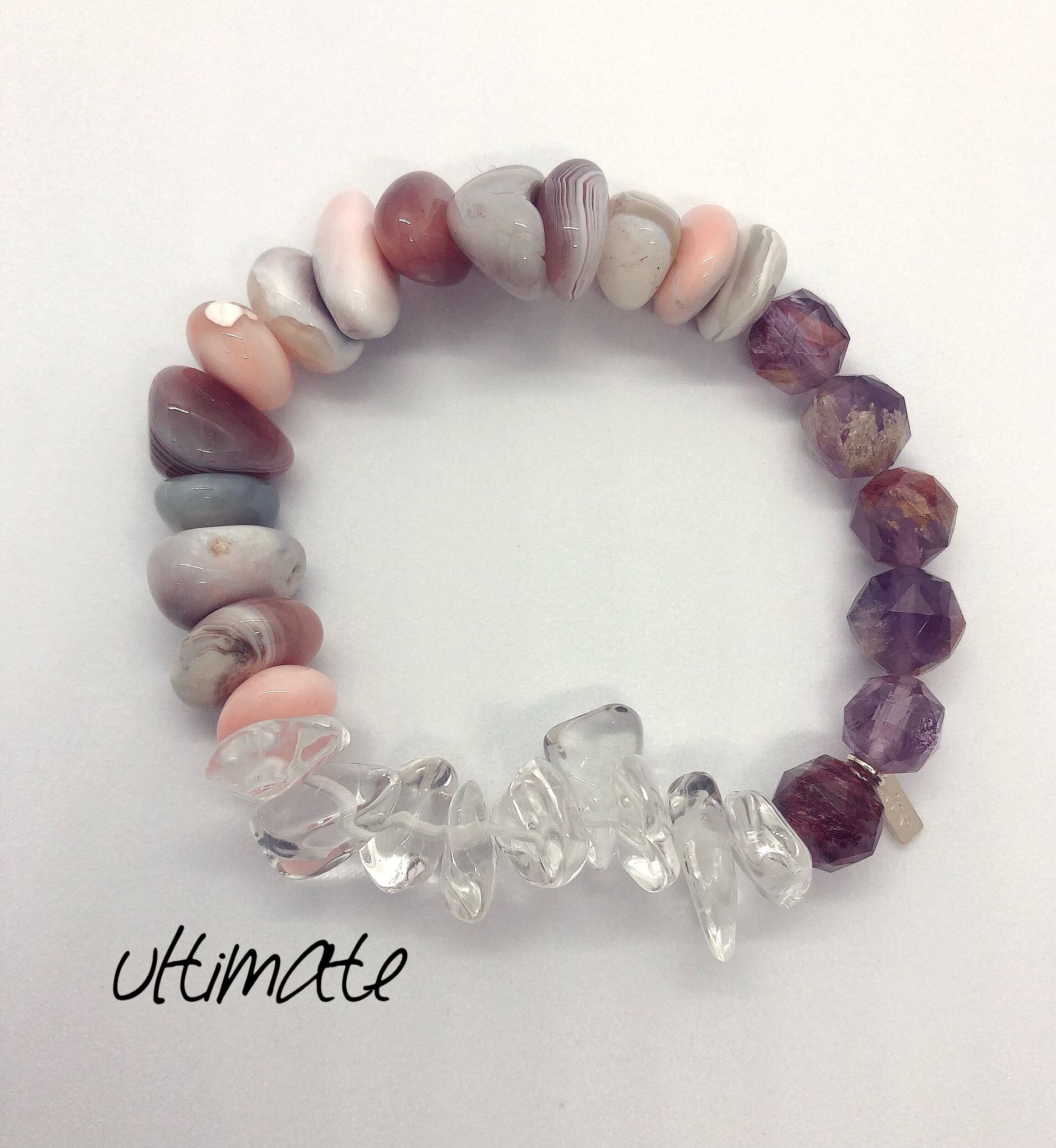 stone bracelet《ガーデンアメジスト×ピンクボツワナアゲート×水晶》
