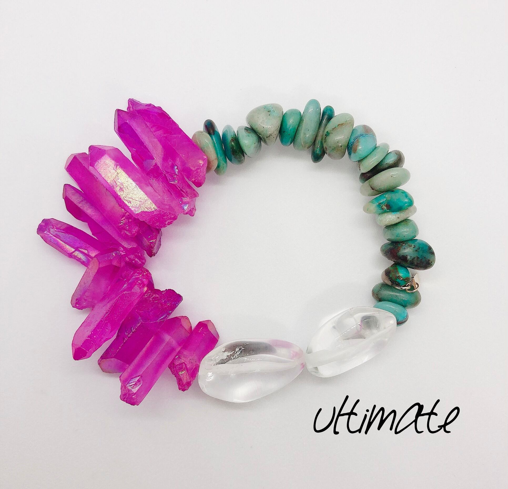 クリスタルの不揃いな結晶の形をそのまま活かしたブレスレット。