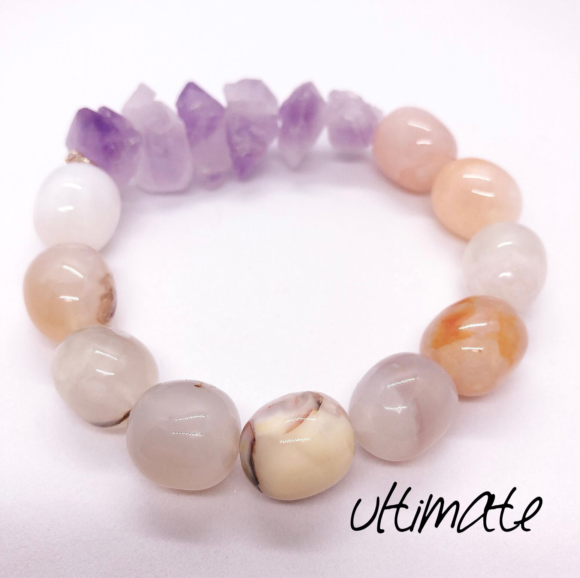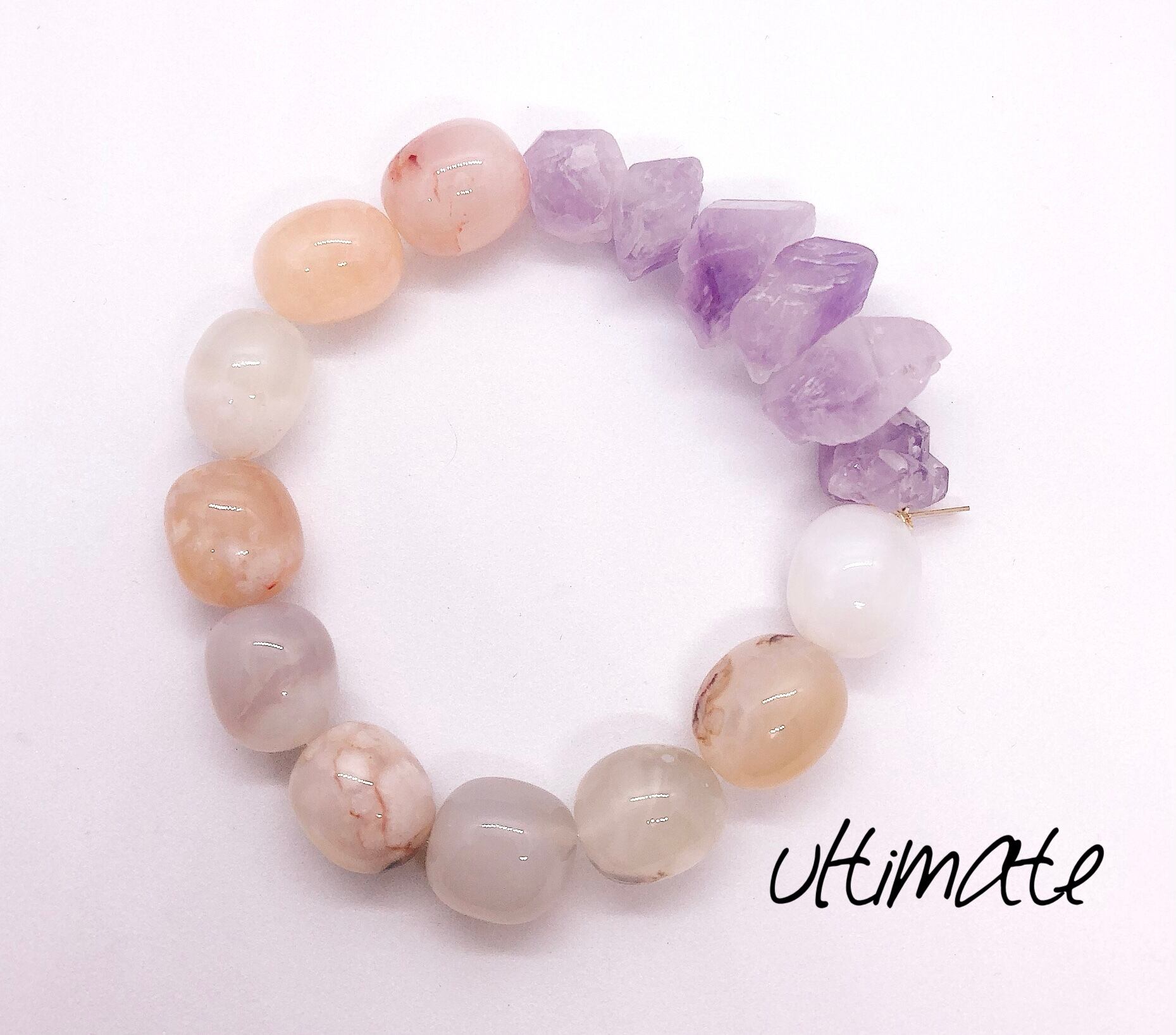 stone bracelet《チェリーブロッサムアゲート×ラフロックアメジスト》