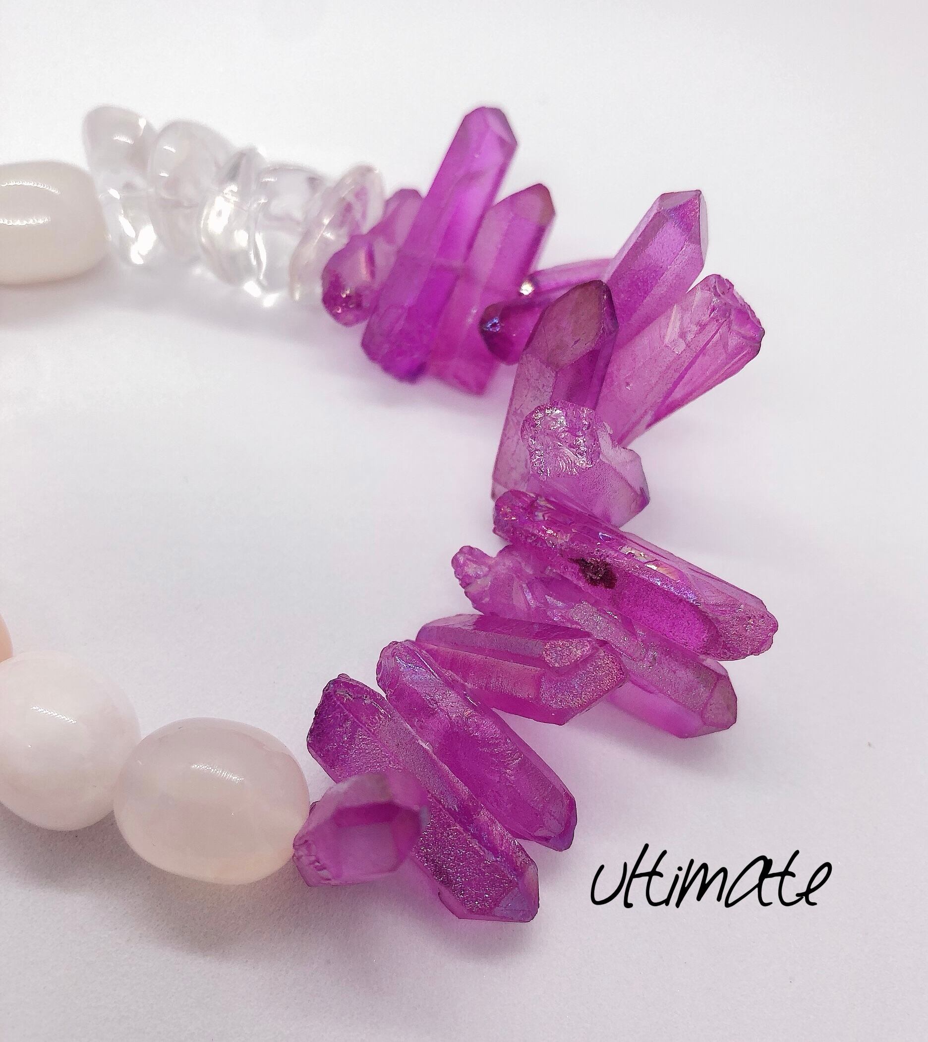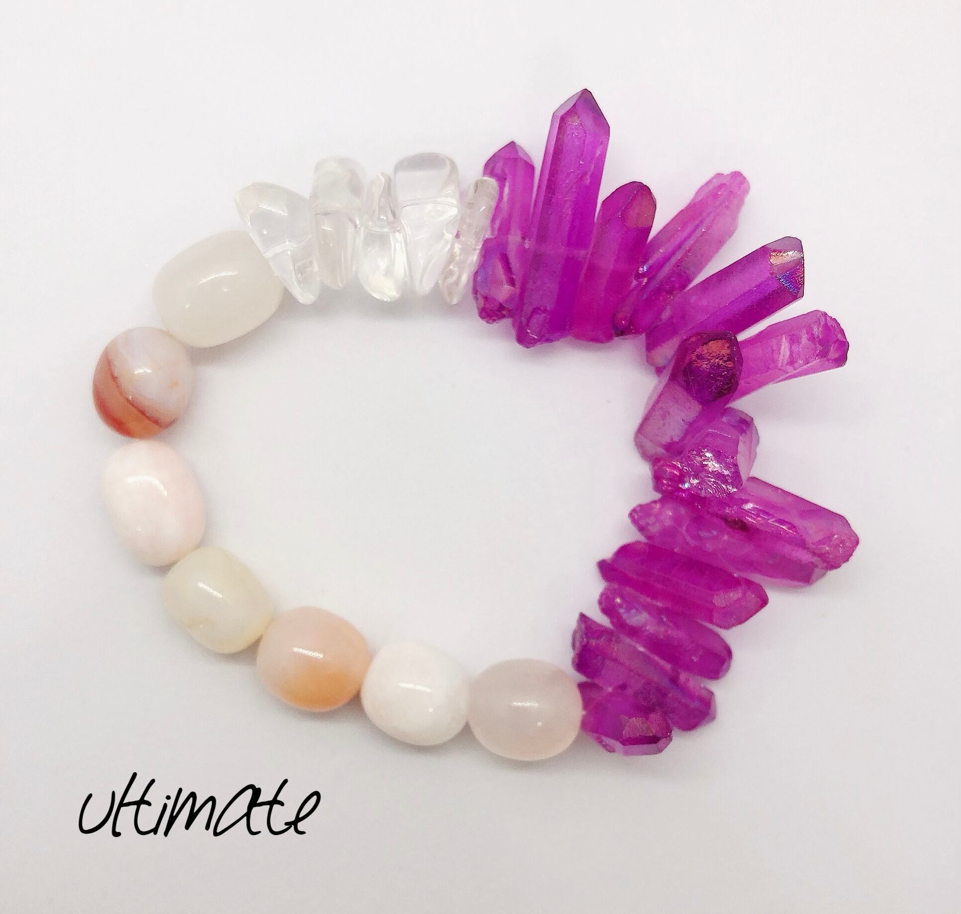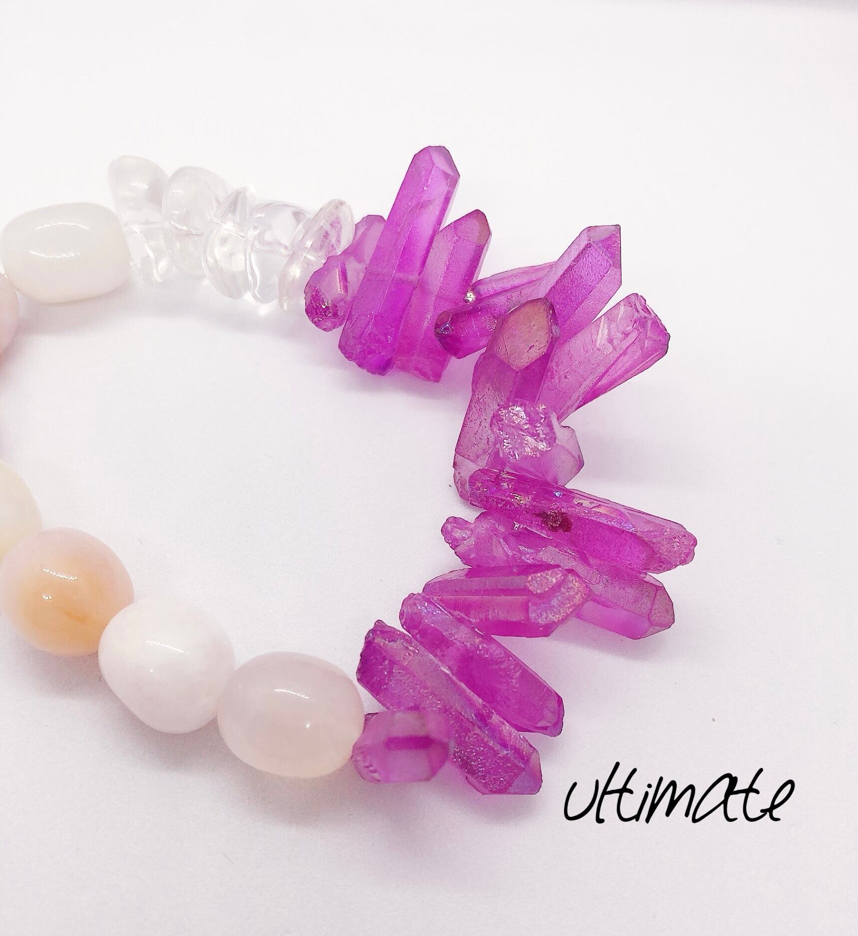 stone bracelet《氷柱水晶(パープルコーティング)×水晶×チェリーブロッサム)