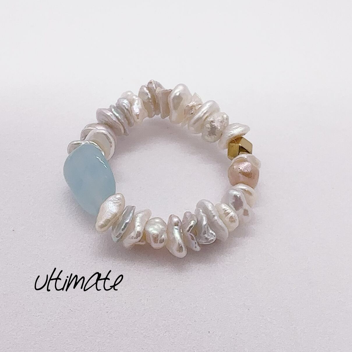 淡水パールと綺麗な水色のアクアマリンがとても優しいエネルギーを出してくれています。