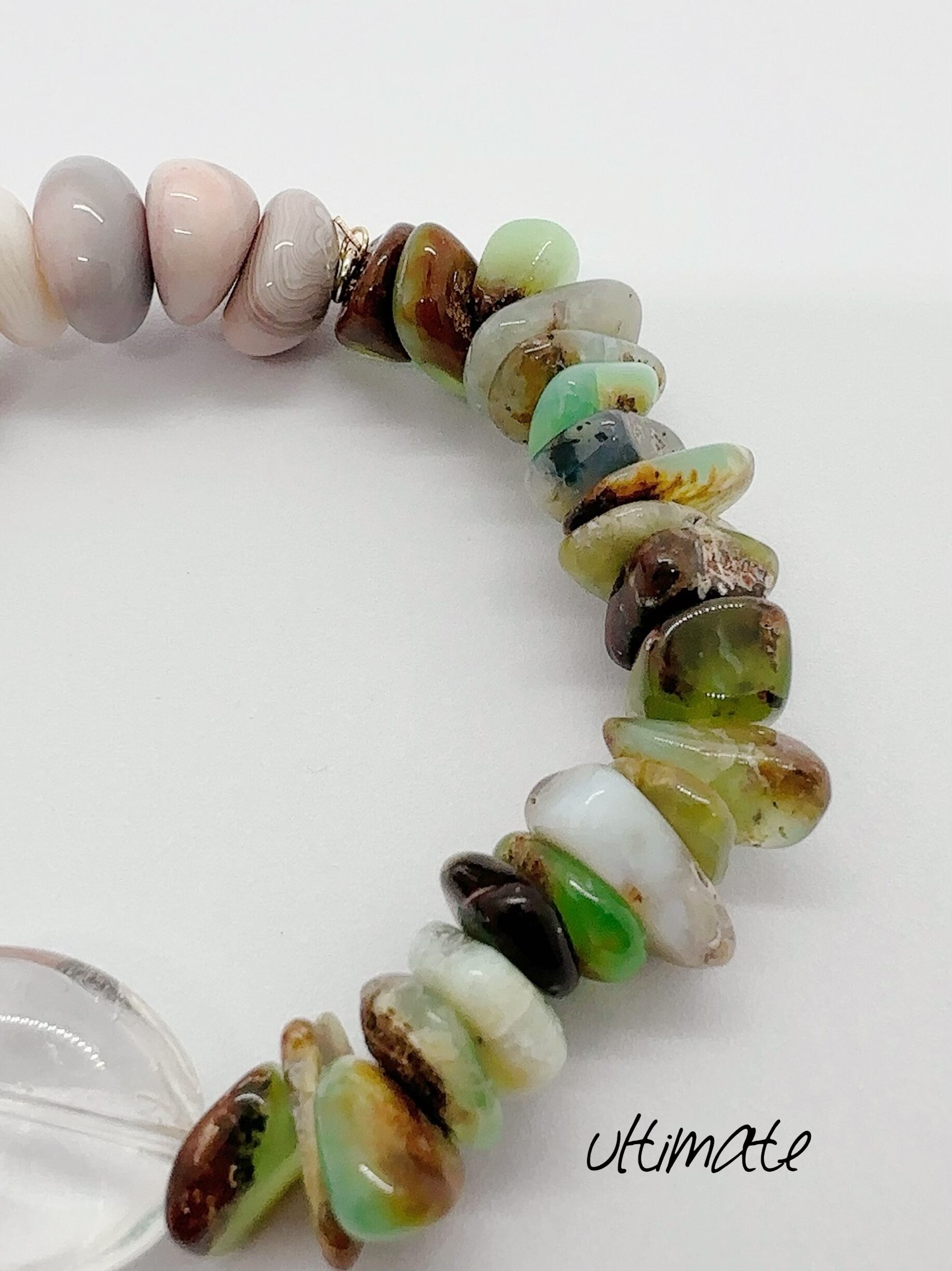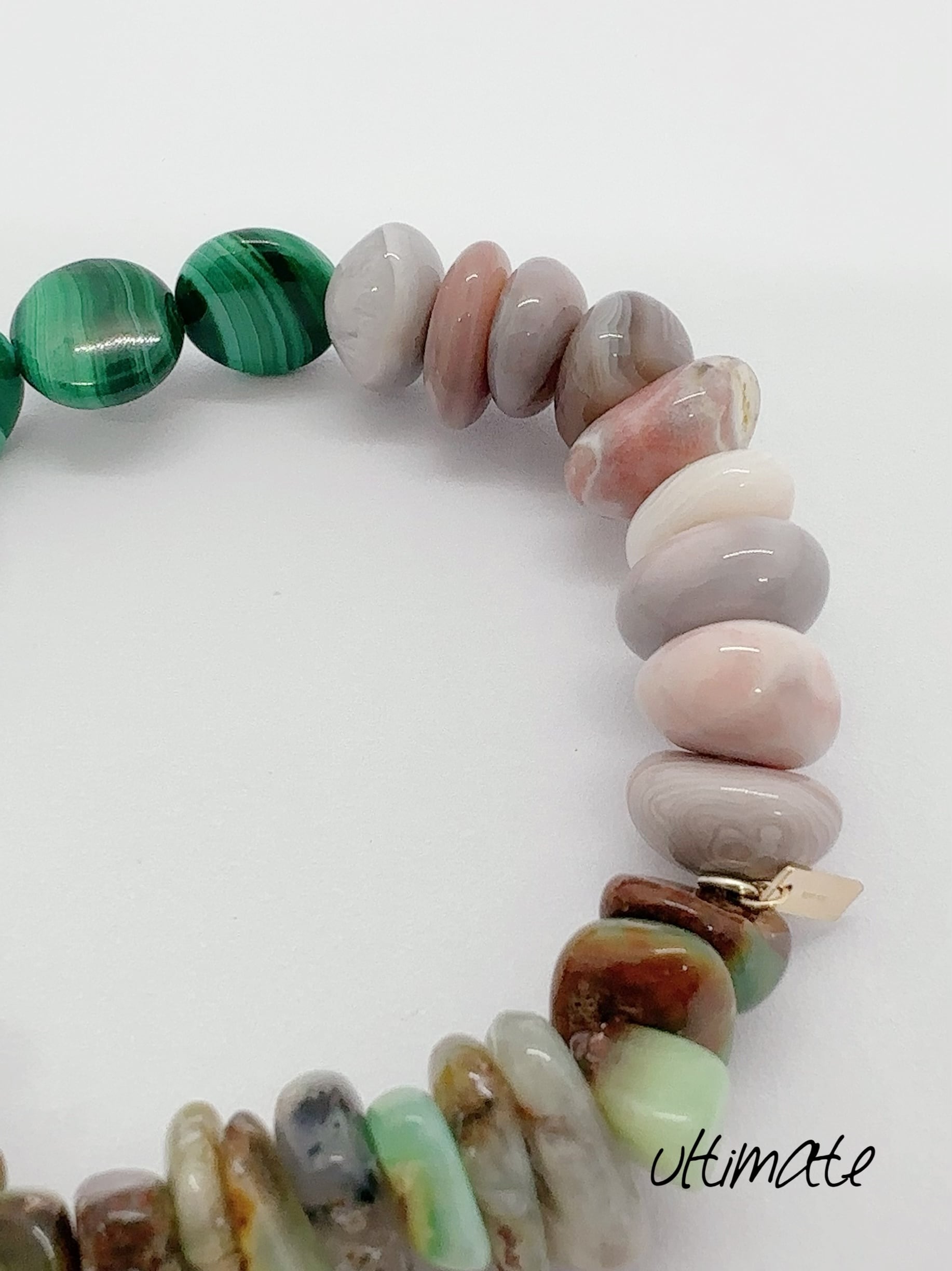 stone bracelet 《母岩付きクリソプレーズ×マラカイト×ピンクボツワナアゲート×水晶》
