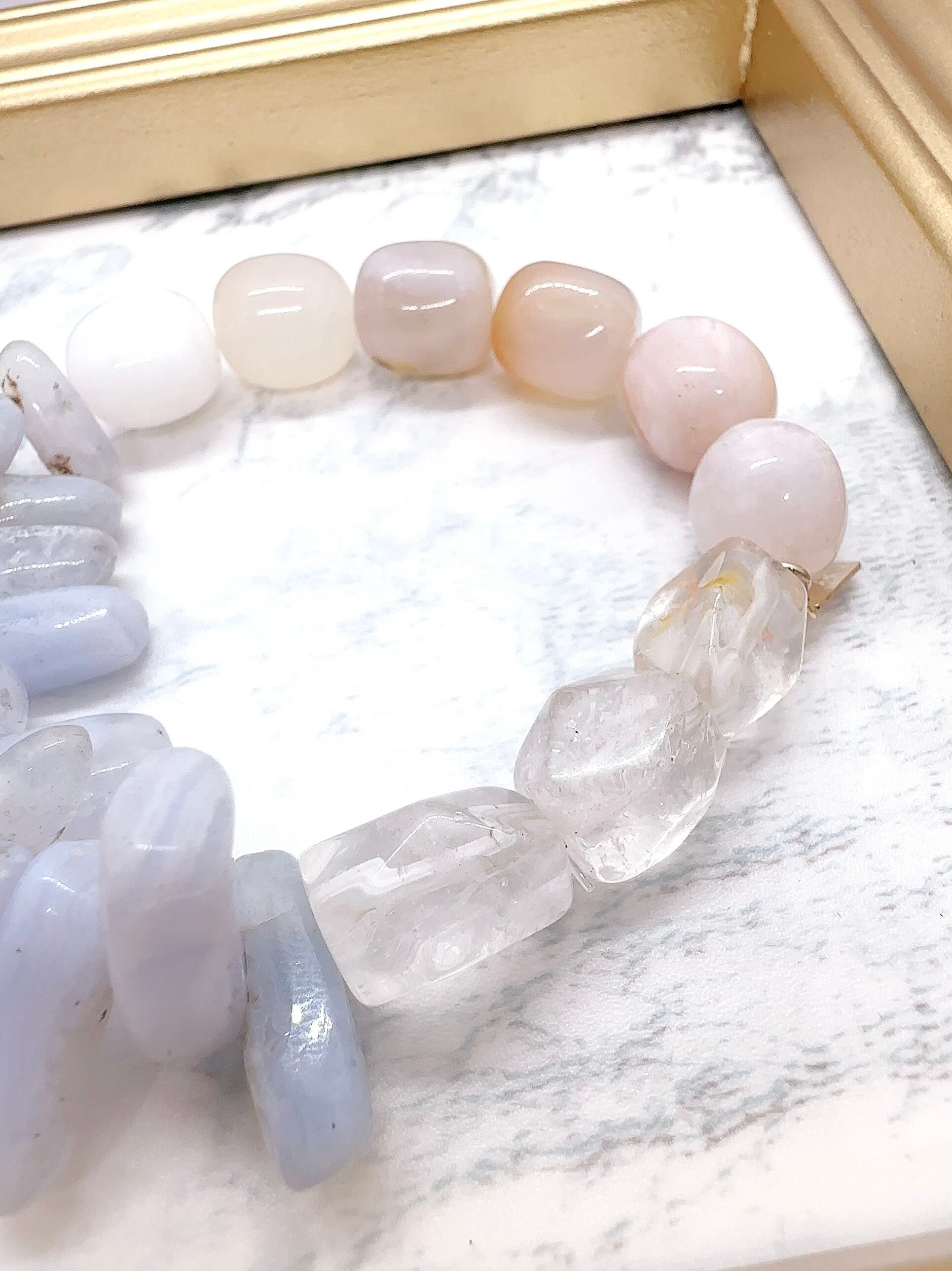 薄いカラーのブルーレースアゲートが印象的なブレスレット。