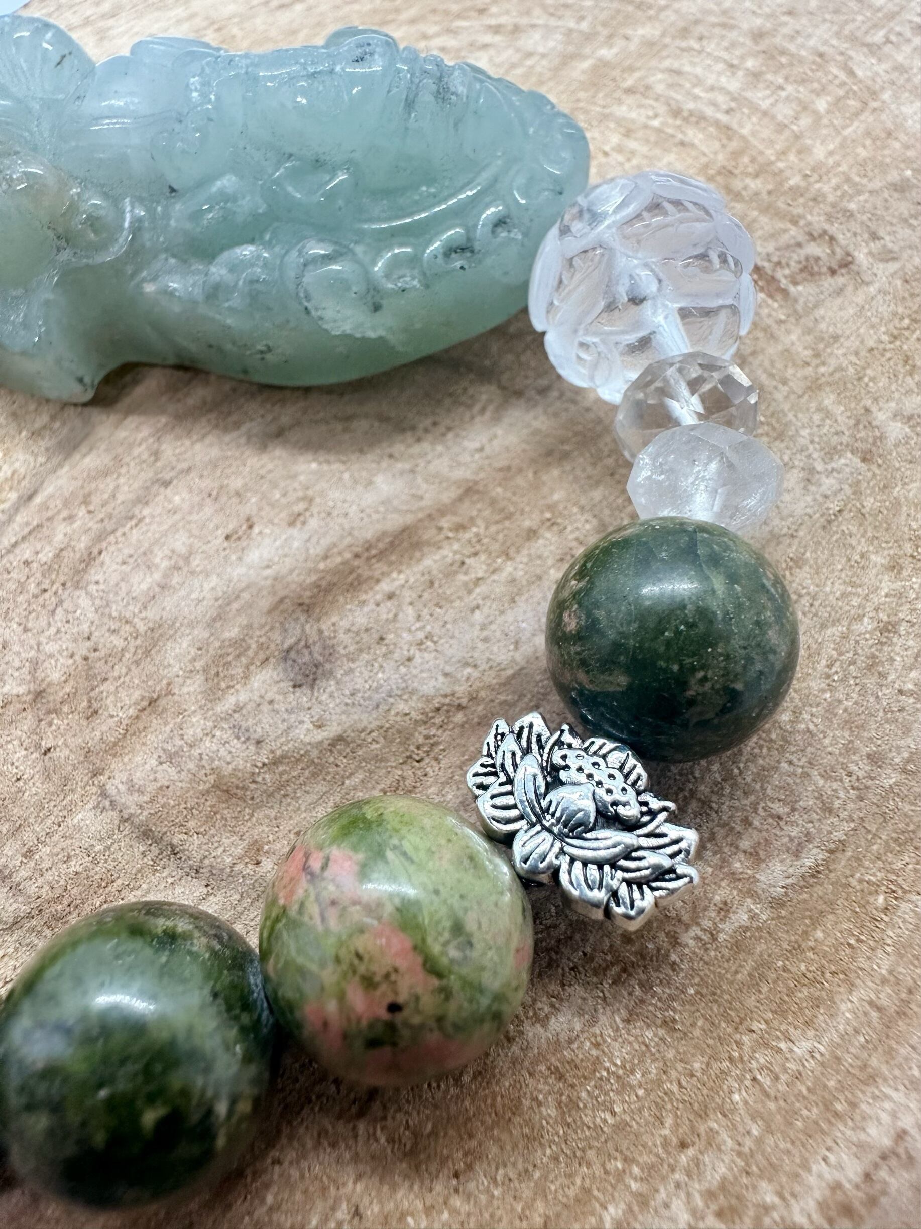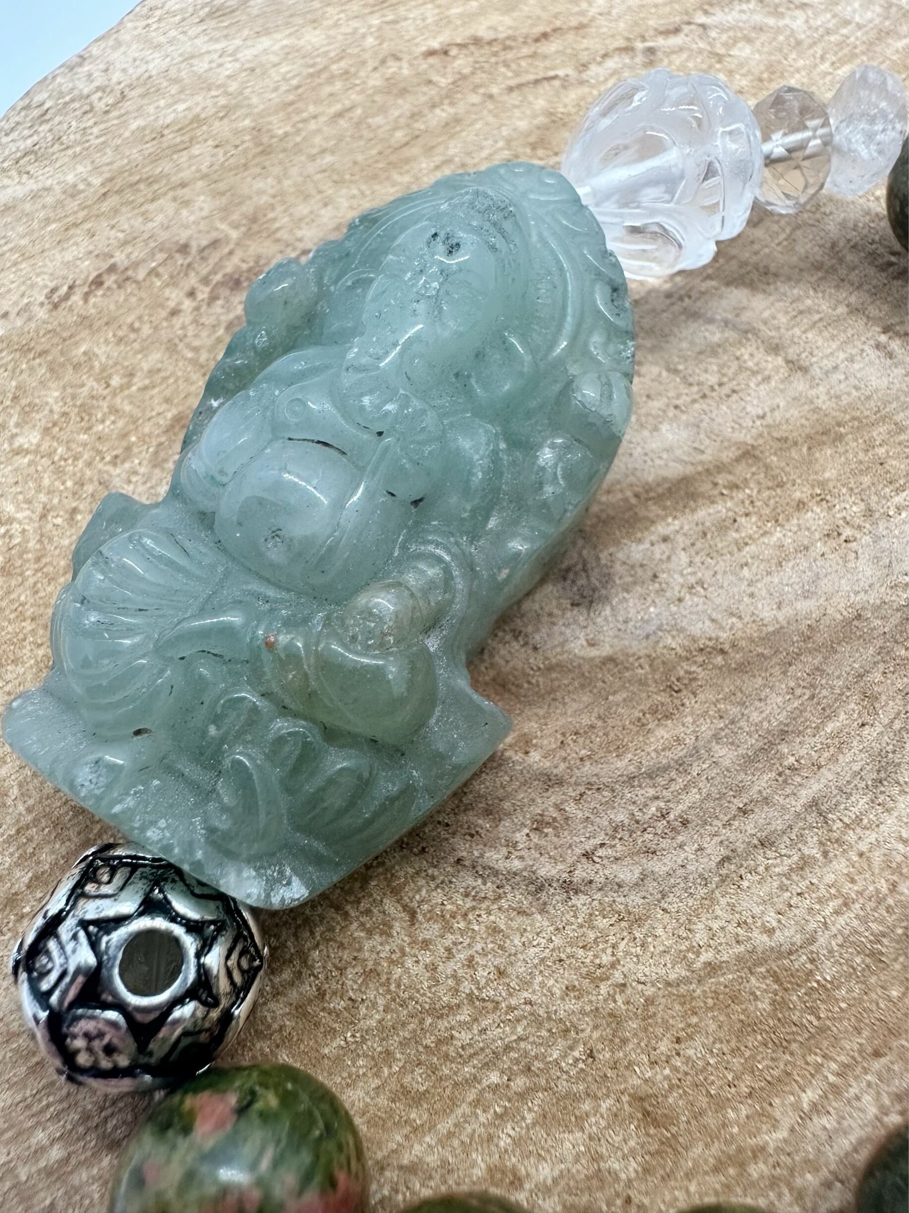 《ガネーシャ》グリーンアベンチュリン×ユナカイト×水晶×ルチルクォーツ