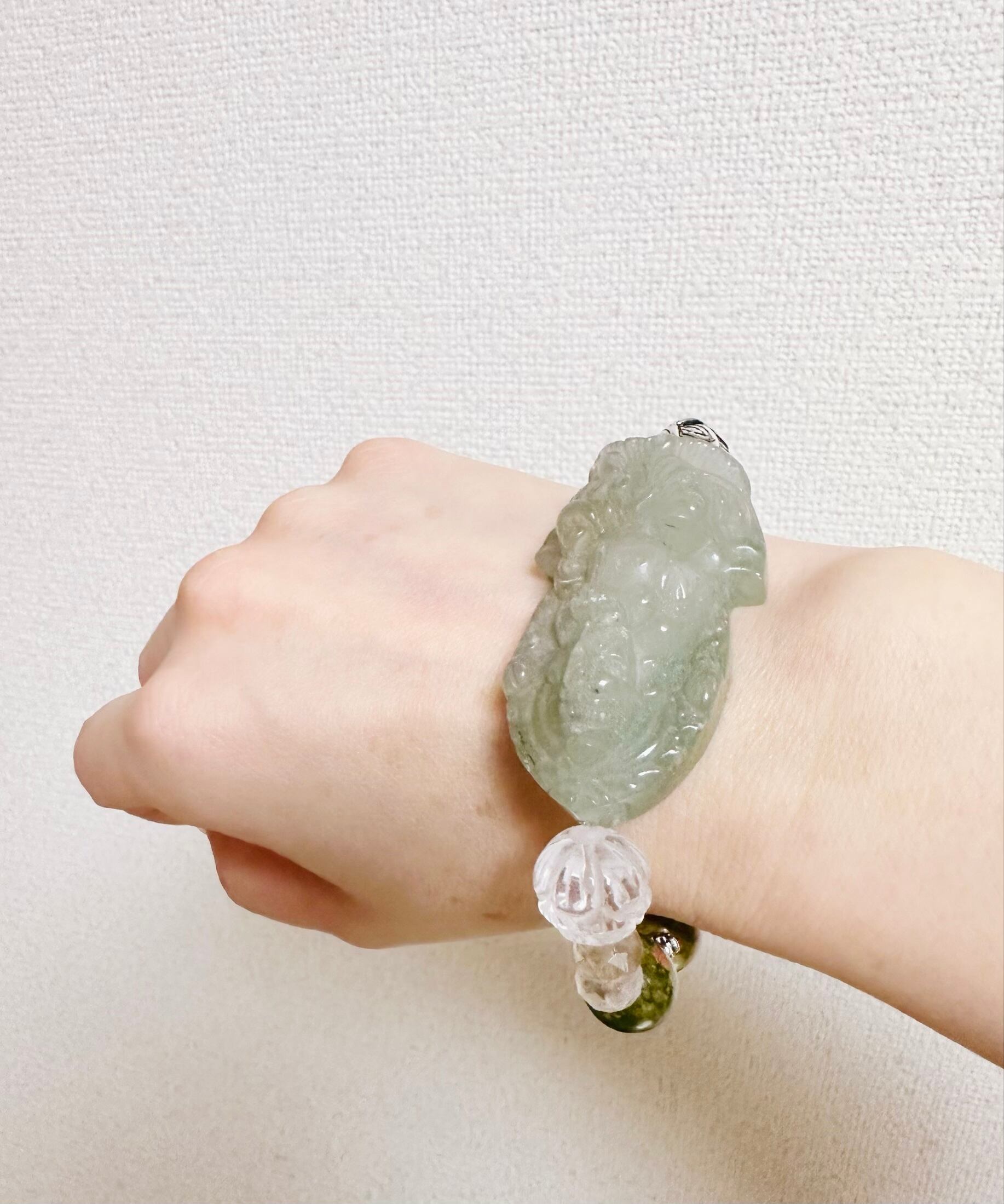 グリーンアベンチュリンのガネーシャが彫られたパーツを使用したブレスレット。