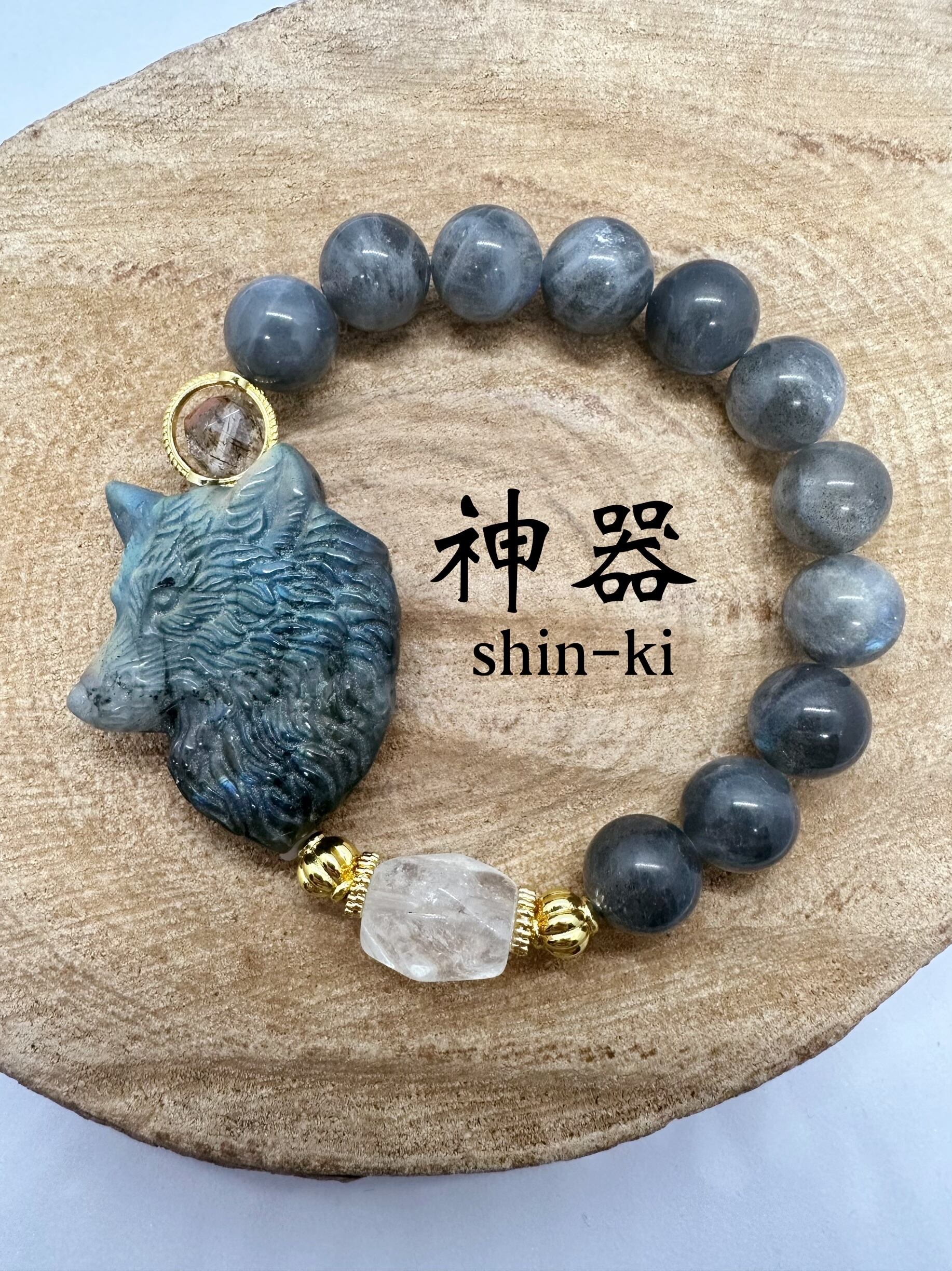 《狼》ラブラドライト×ブラウンルチルクォーツ×水晶