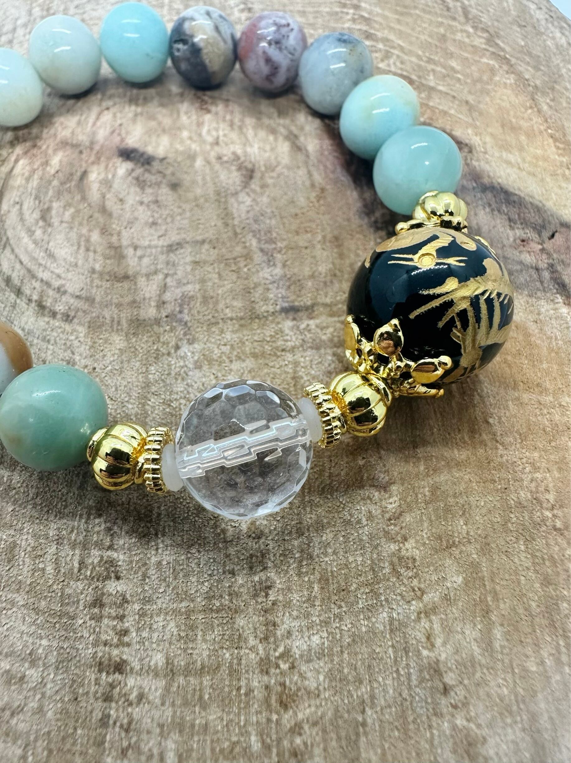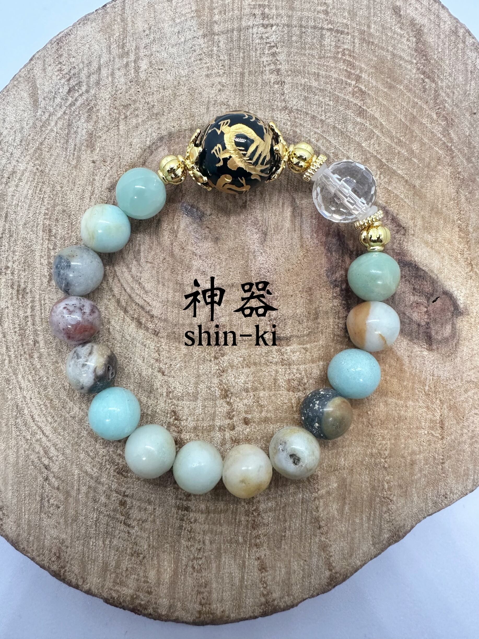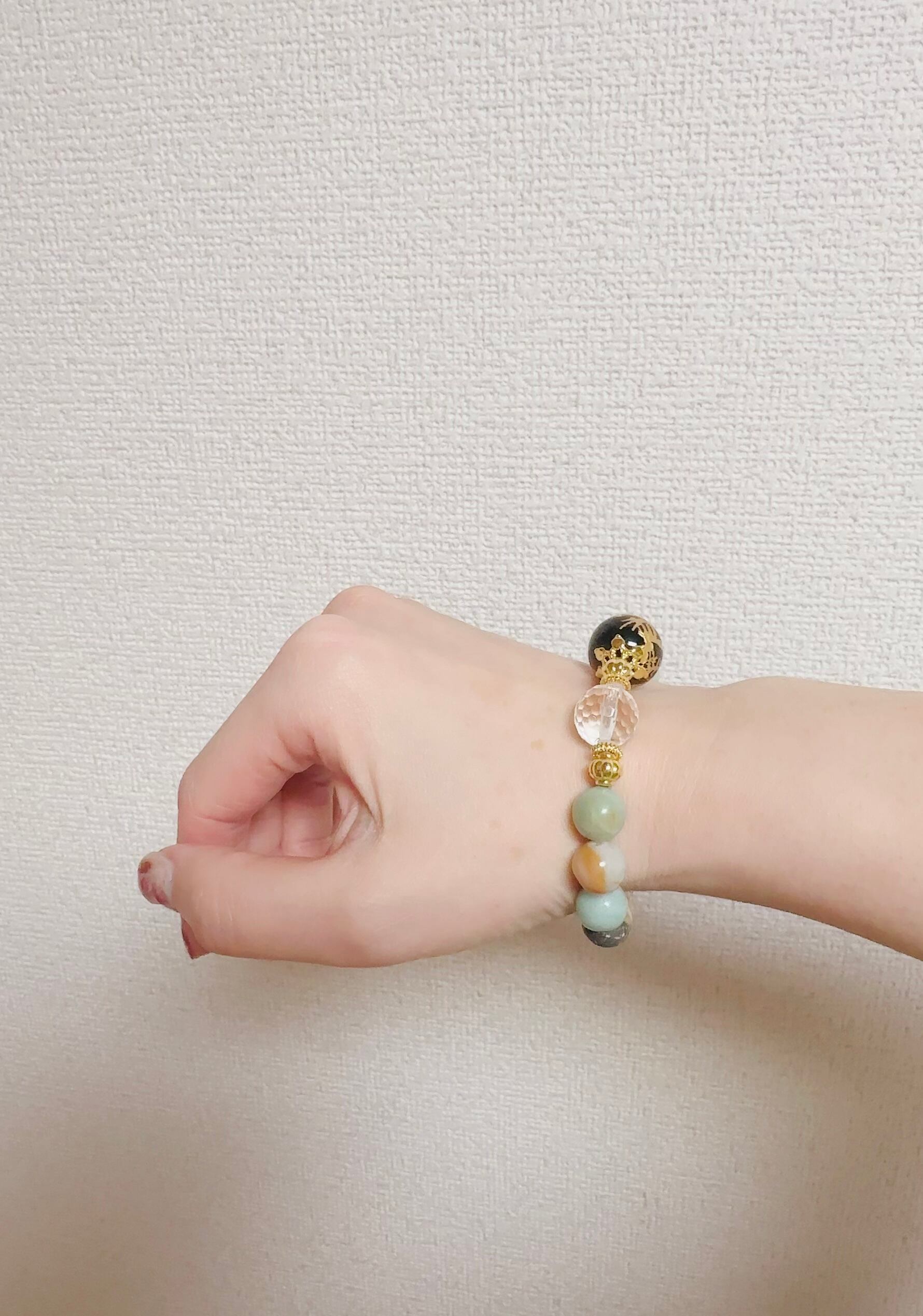 《四神獣》一粒オニキス×ミックスアマゾナイト×カット水晶
