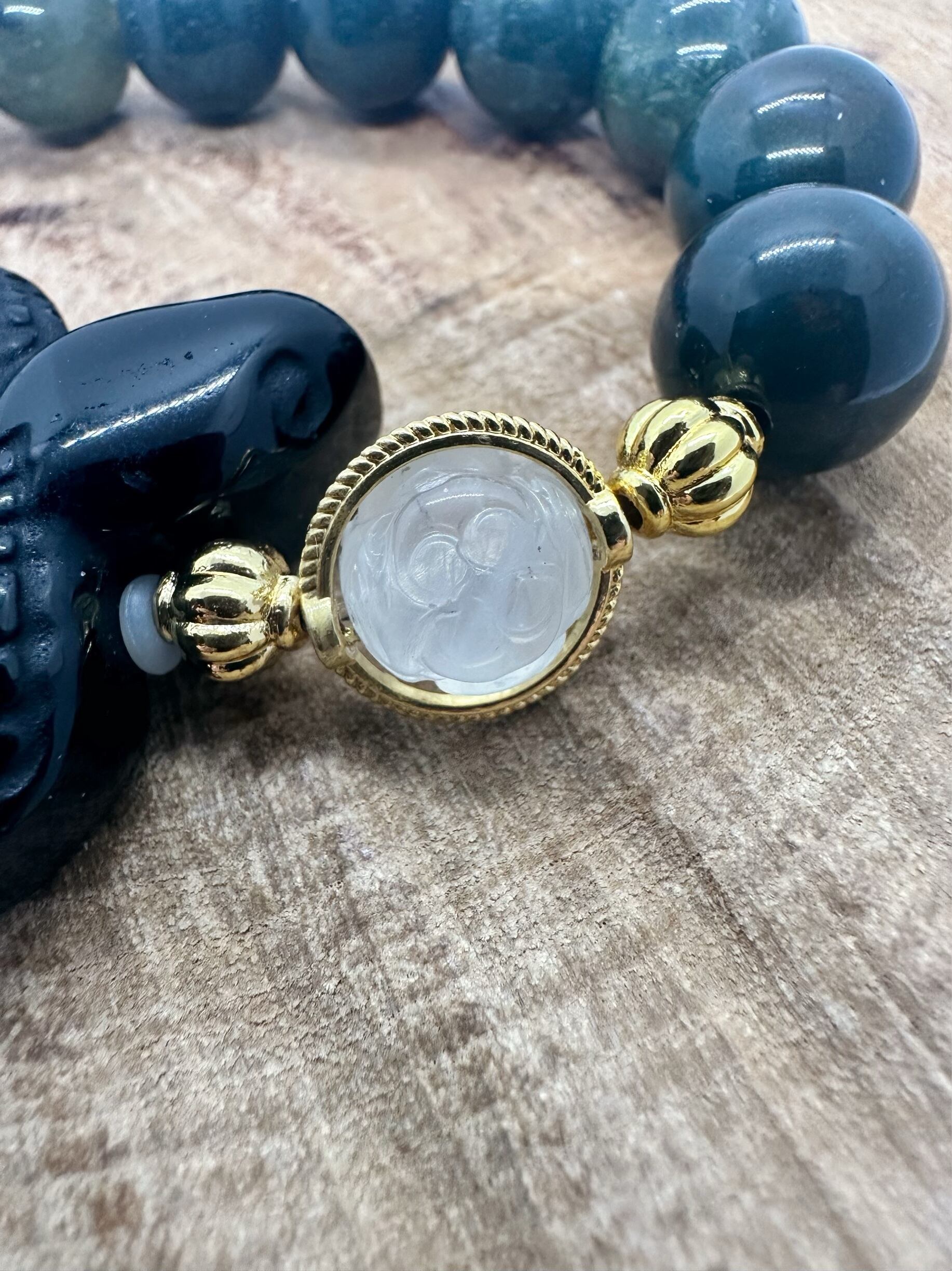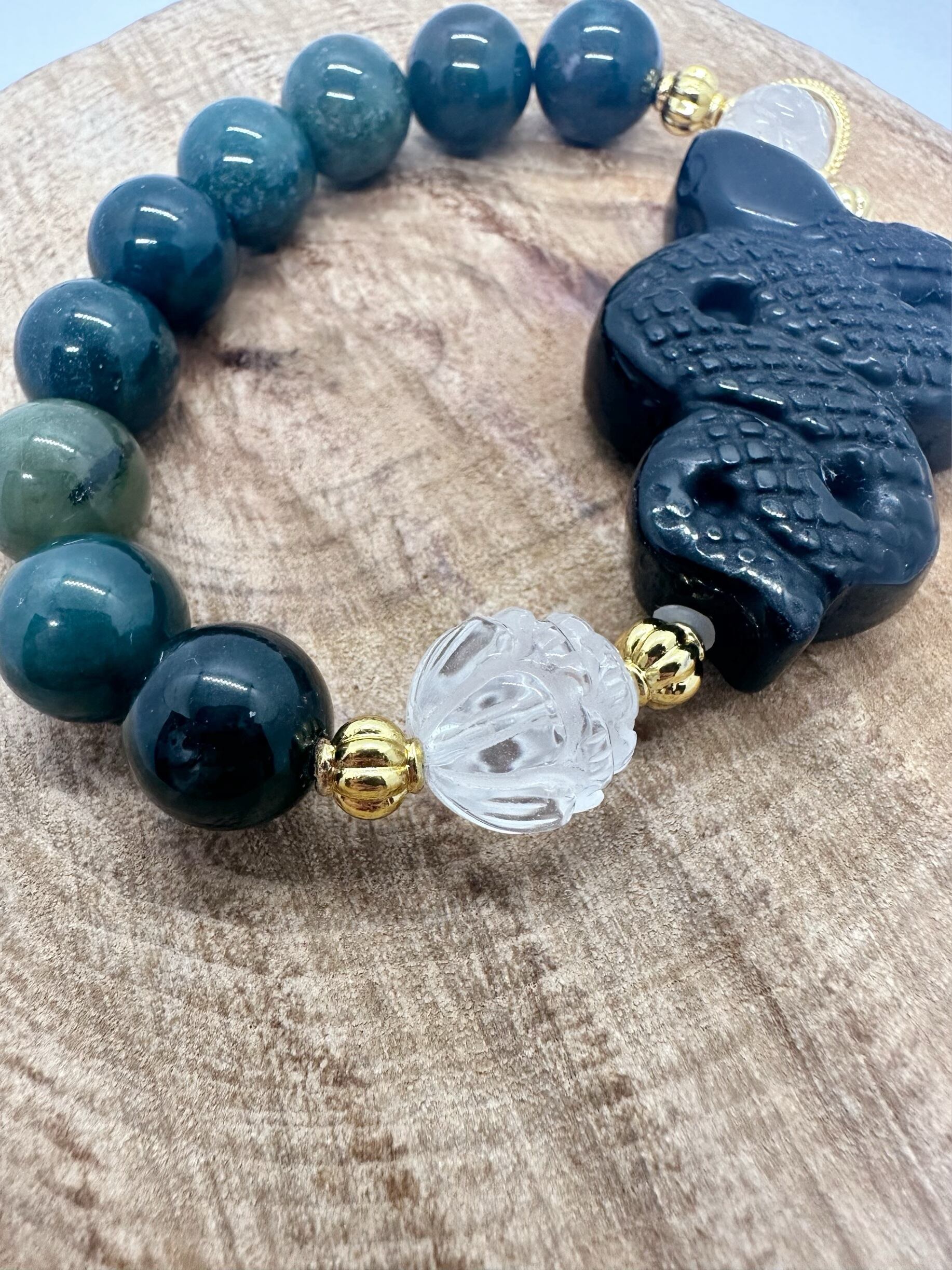 《蛇》オニキス×モスアゲート×回紋珠ムーンストーン×ロータス水晶