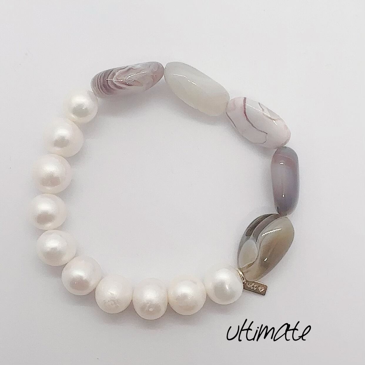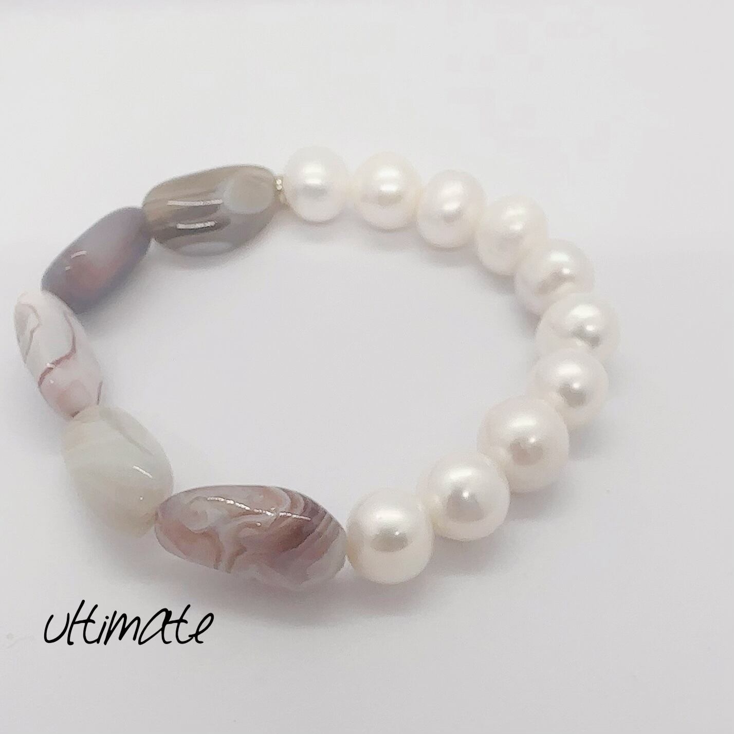 stone bracelet《淡水パール×ピンクボツワナアゲート》