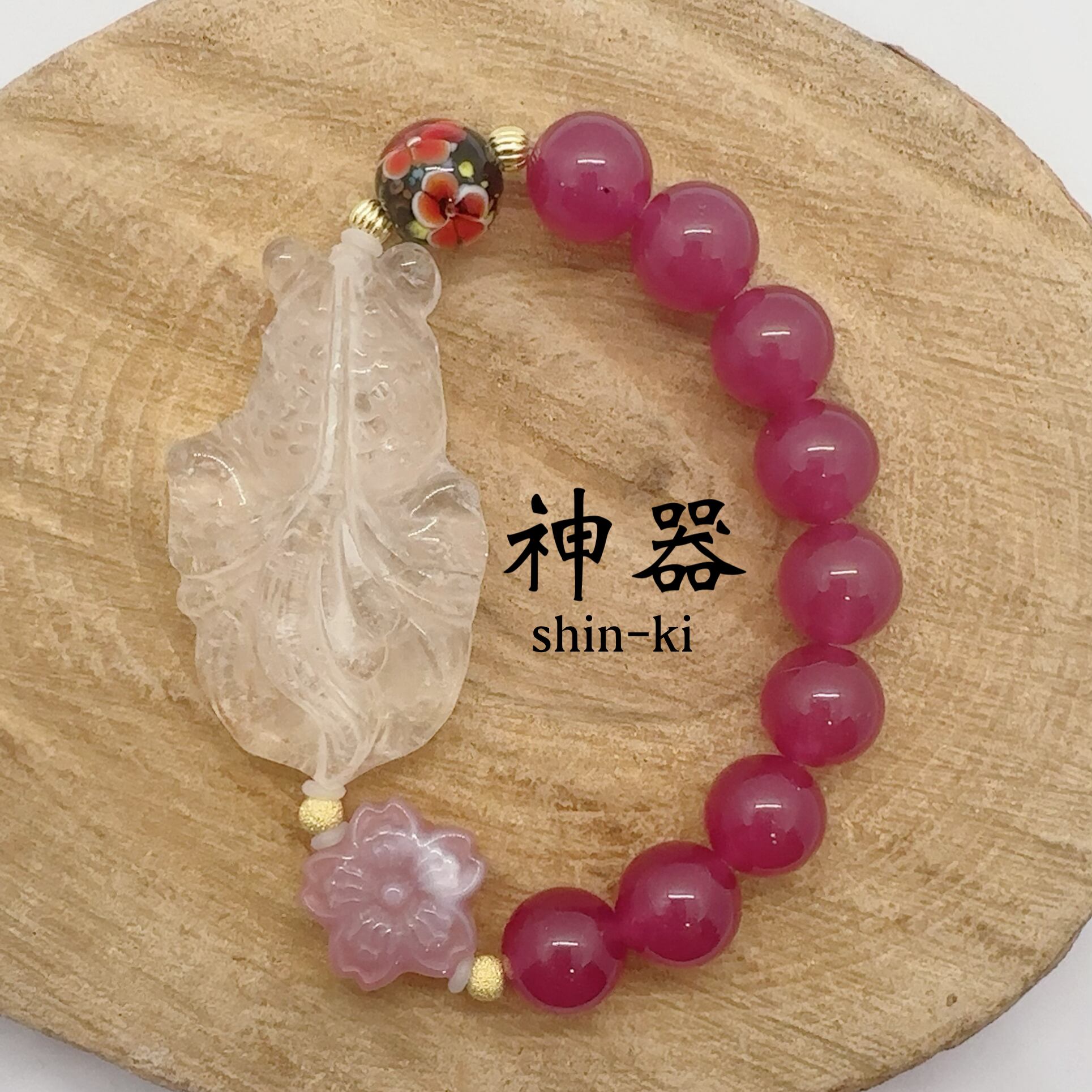 stone bracelet《金魚》水晶×《桜》塩源瑪瑙×レッドパープルジェード×とんぼ玉