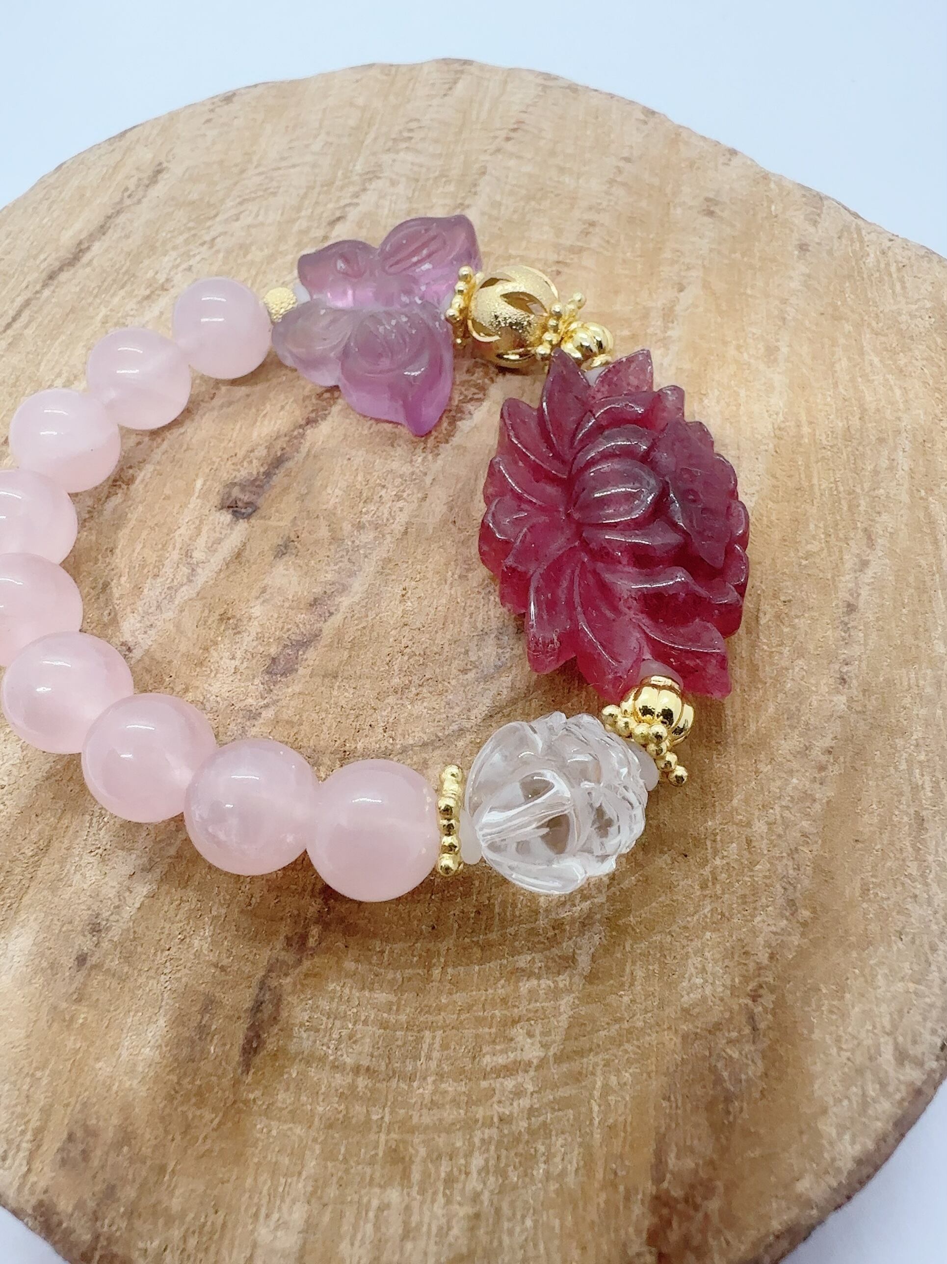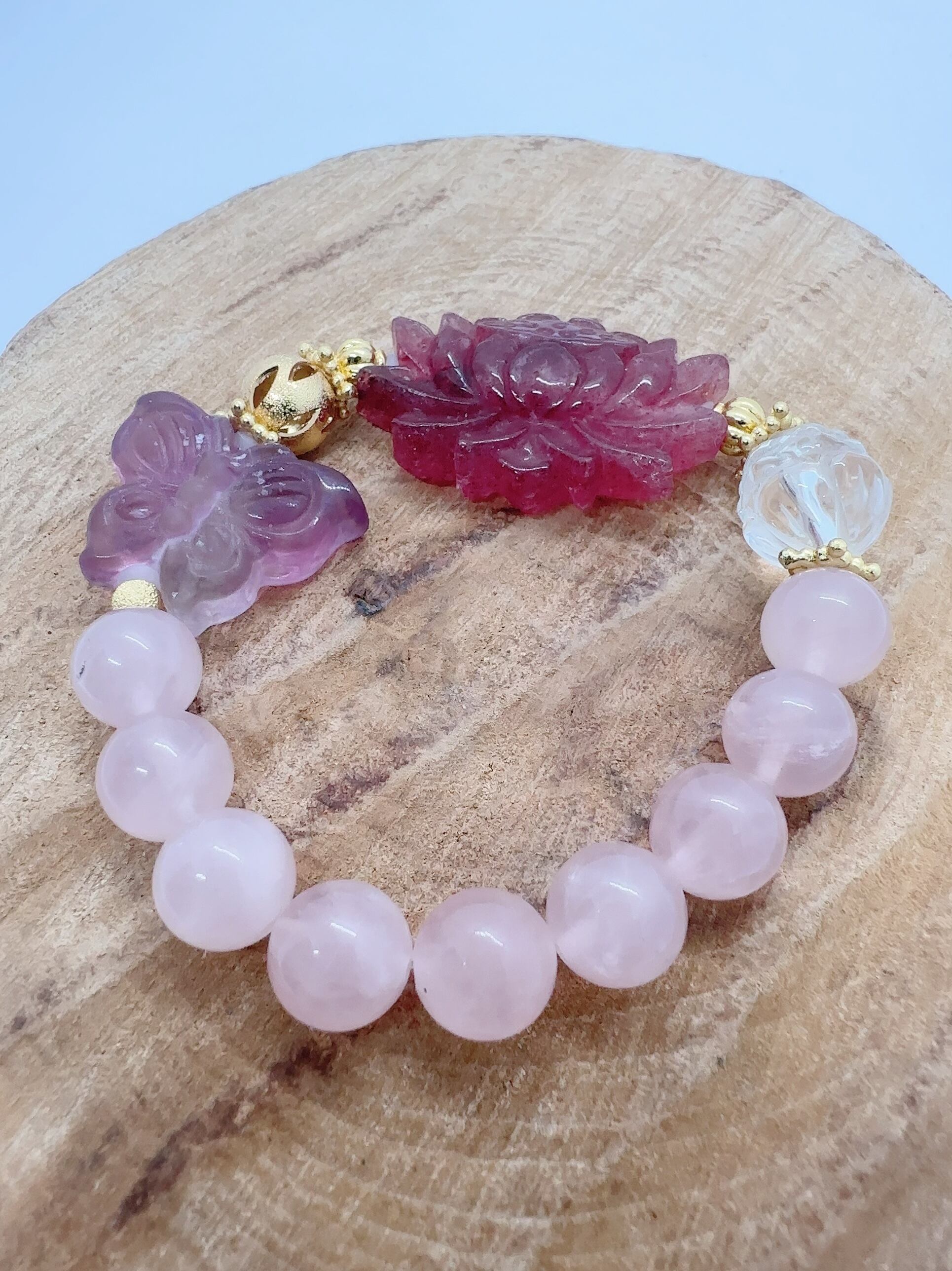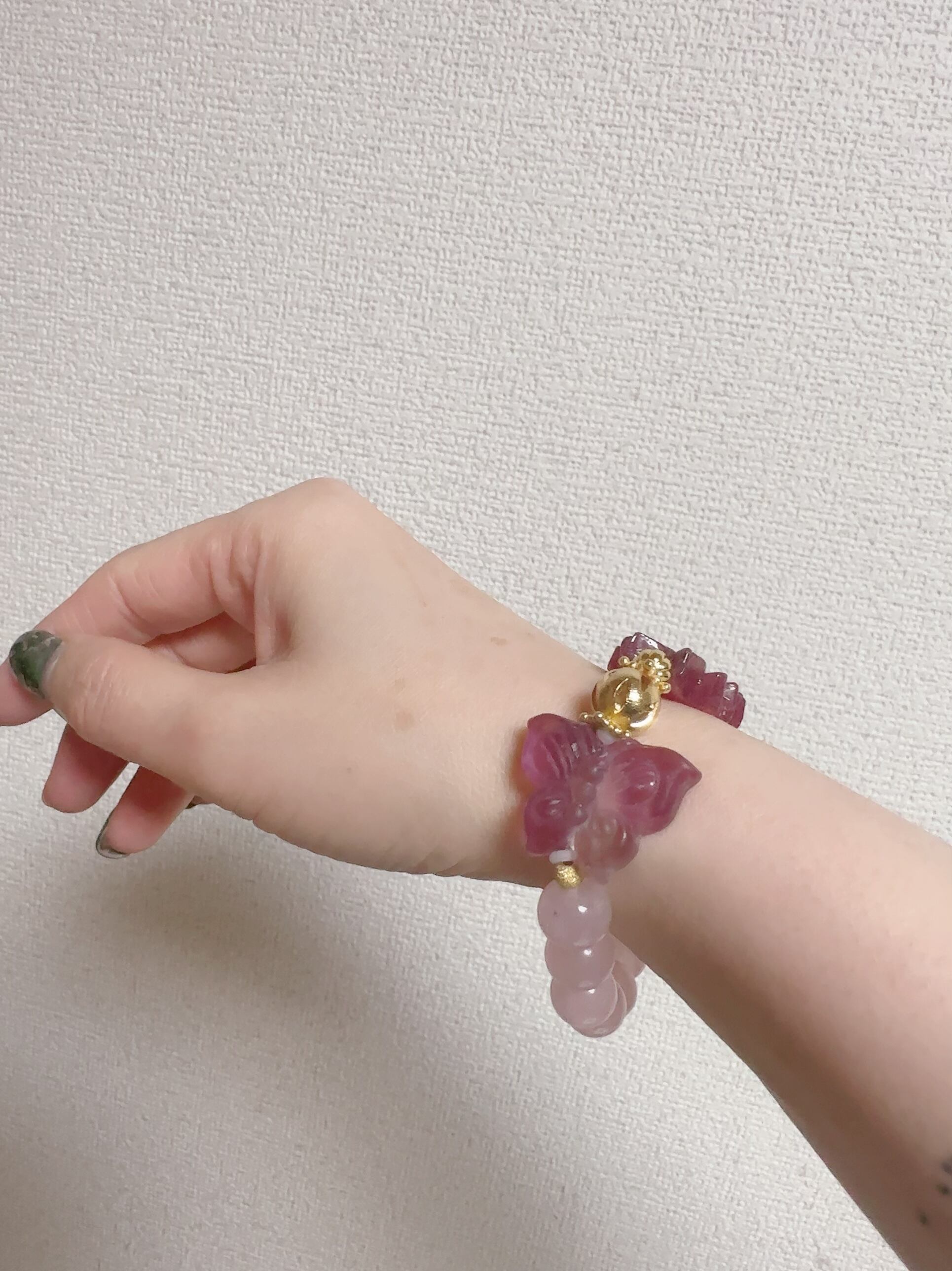 stone bracelet《蓮の花》ストロベリークォーツ×《蝶》フローライト×ロータス水晶