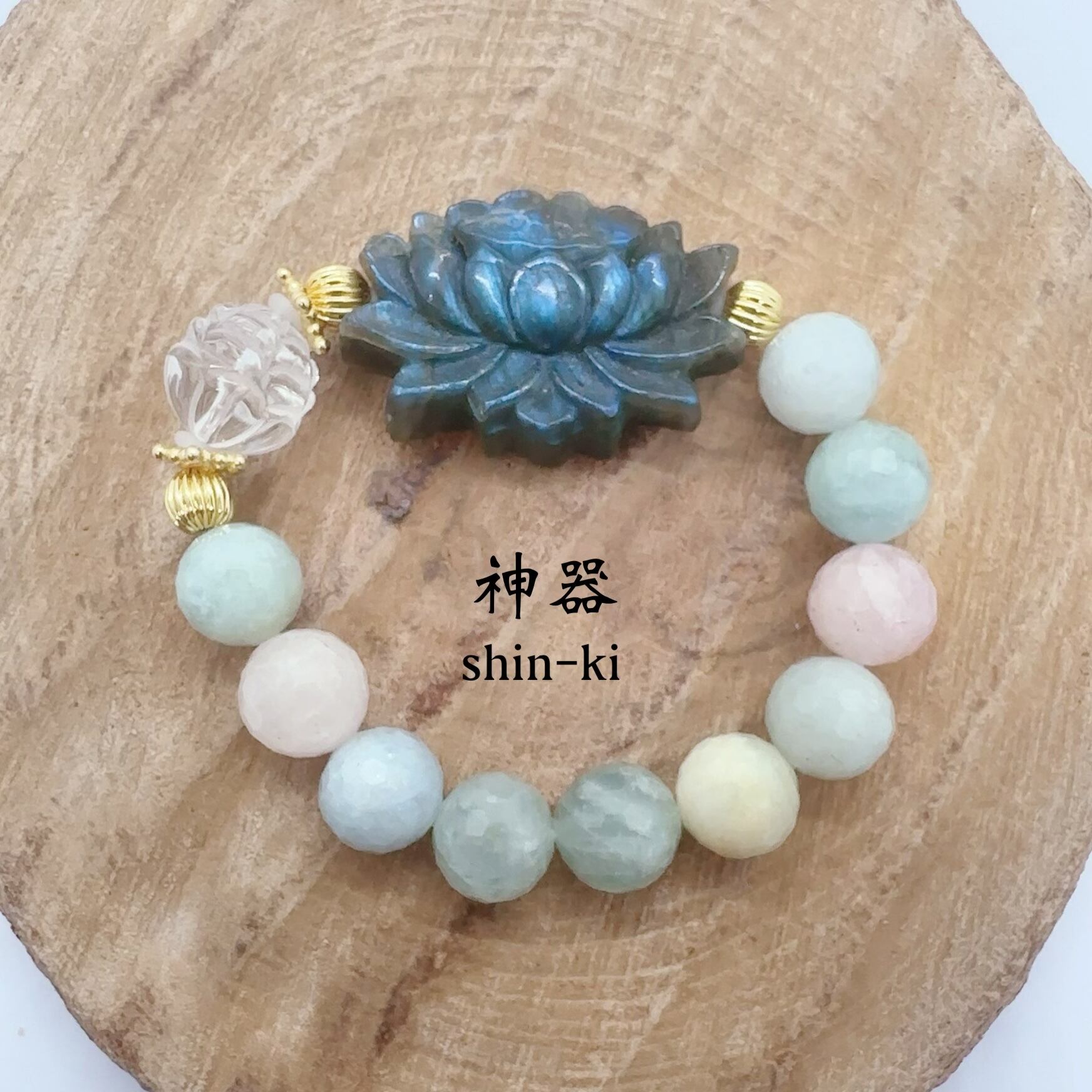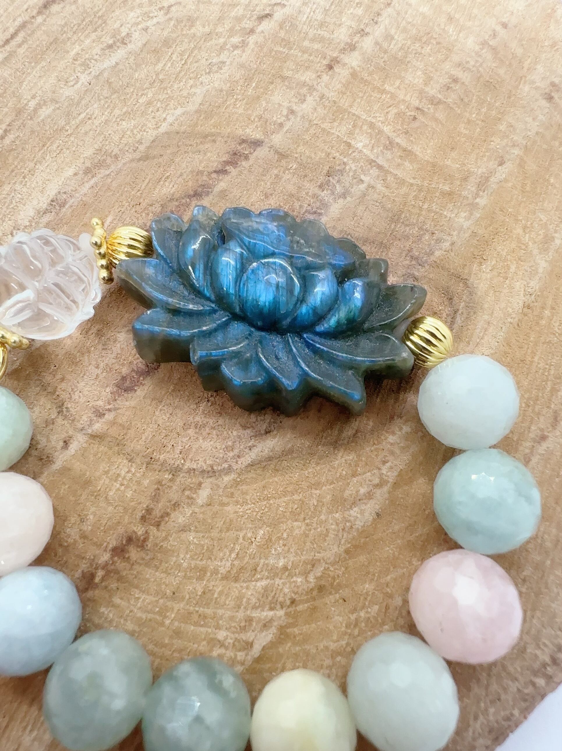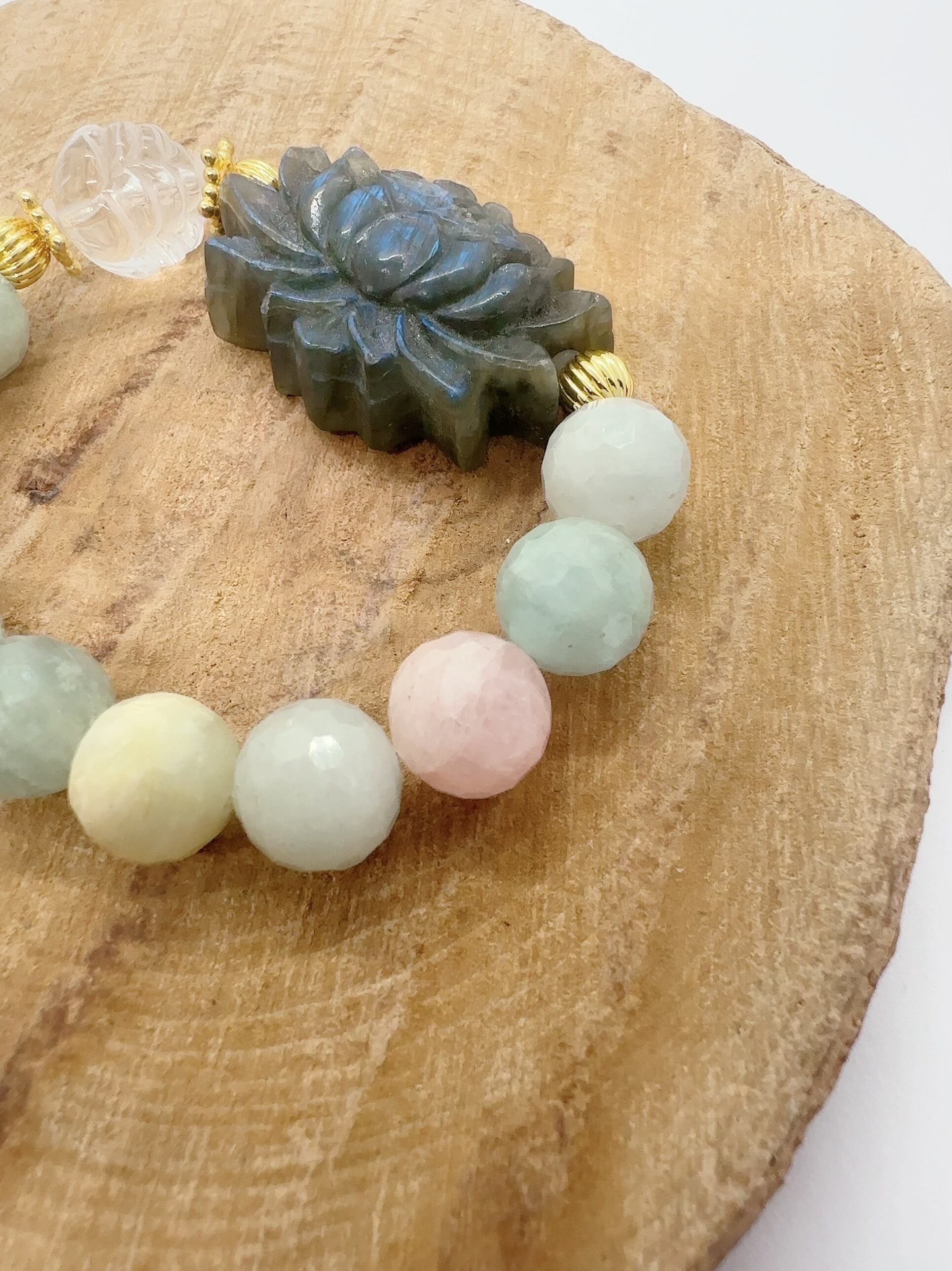 stone bracelet《蓮の花》ラブラドライト×ロータス水晶×ミックスベリル