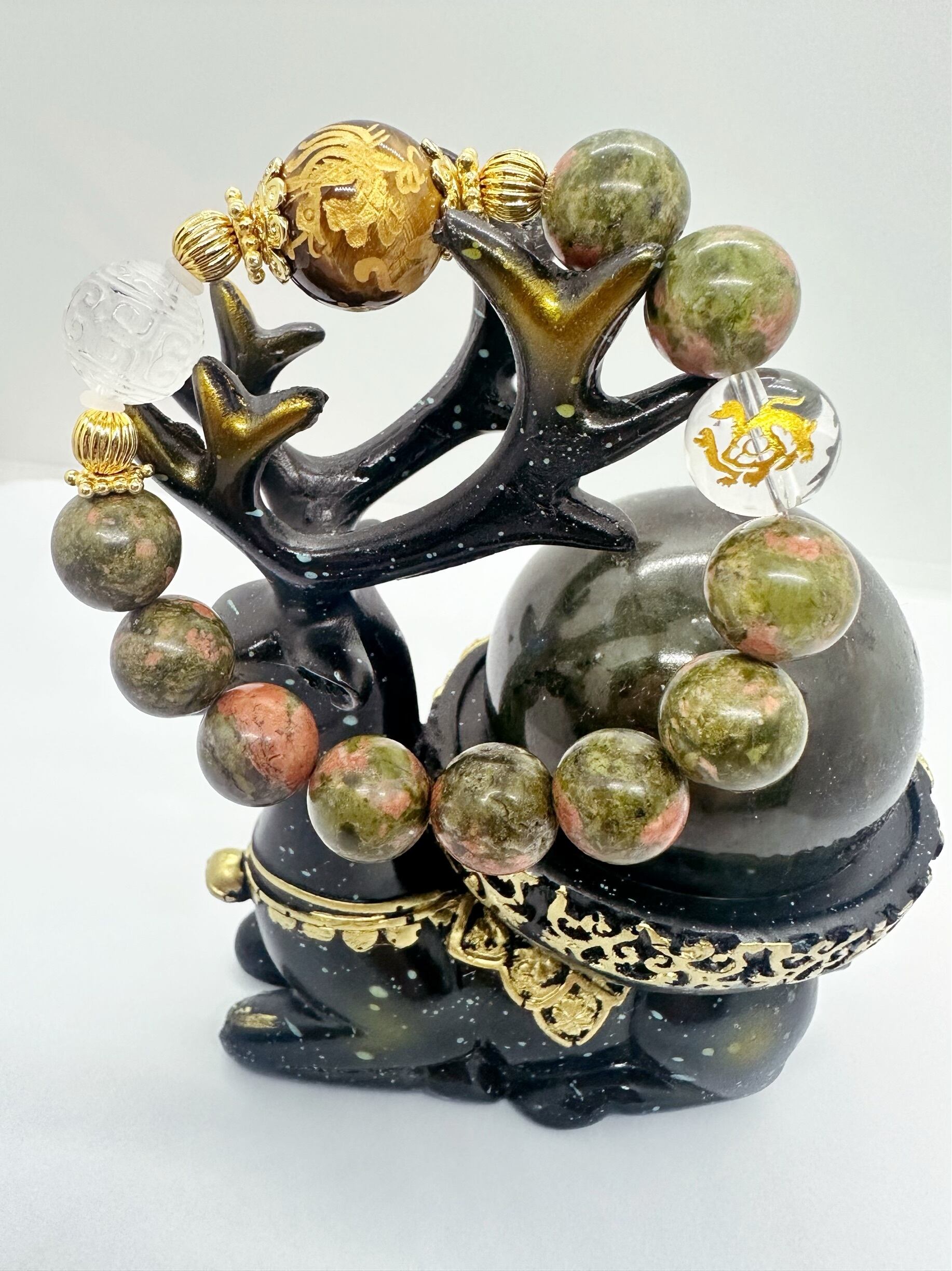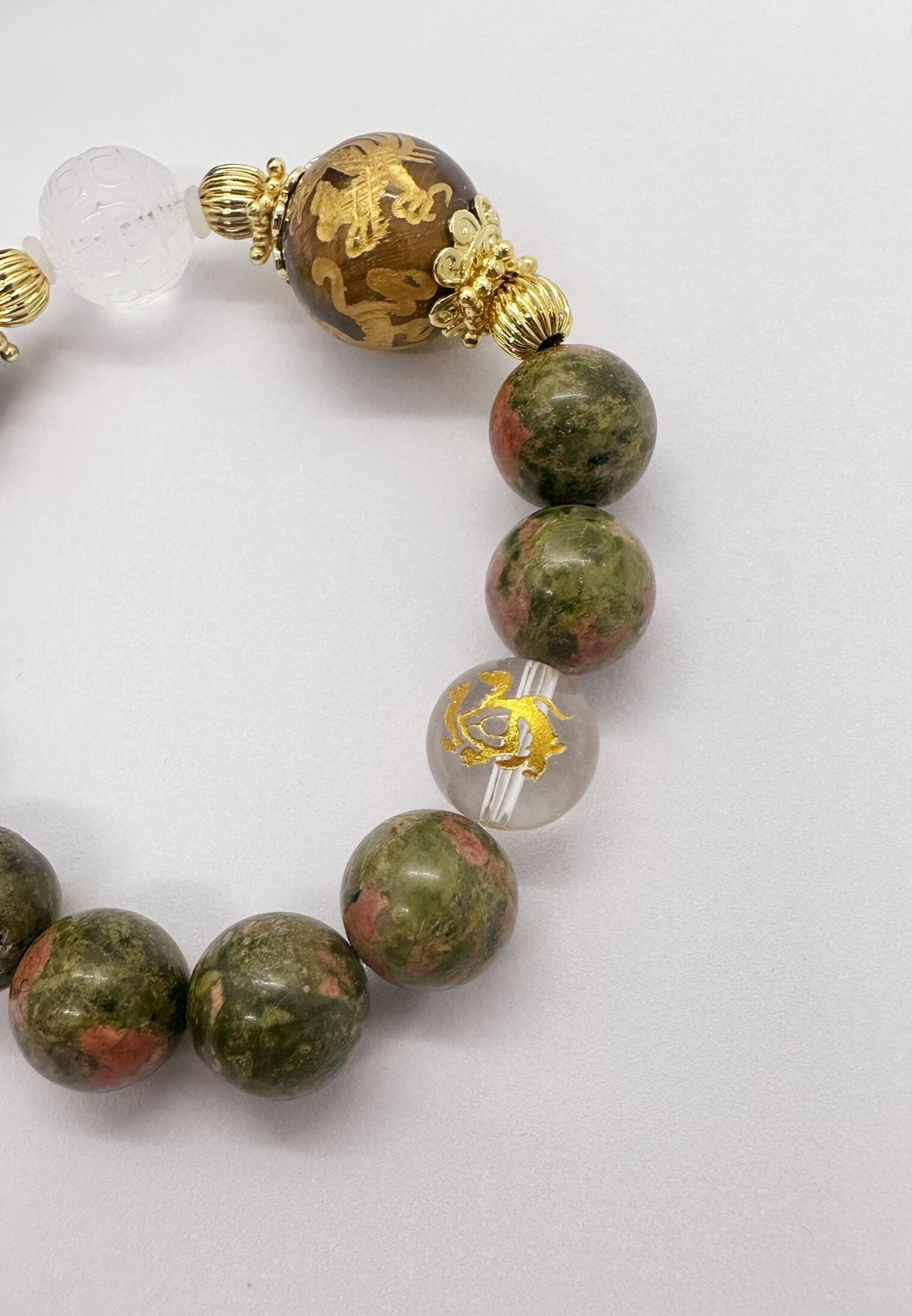 stone bracelet《四神獣》タイガーアイ×《玄武》水晶×《回紋珠》水晶×ユナカイト