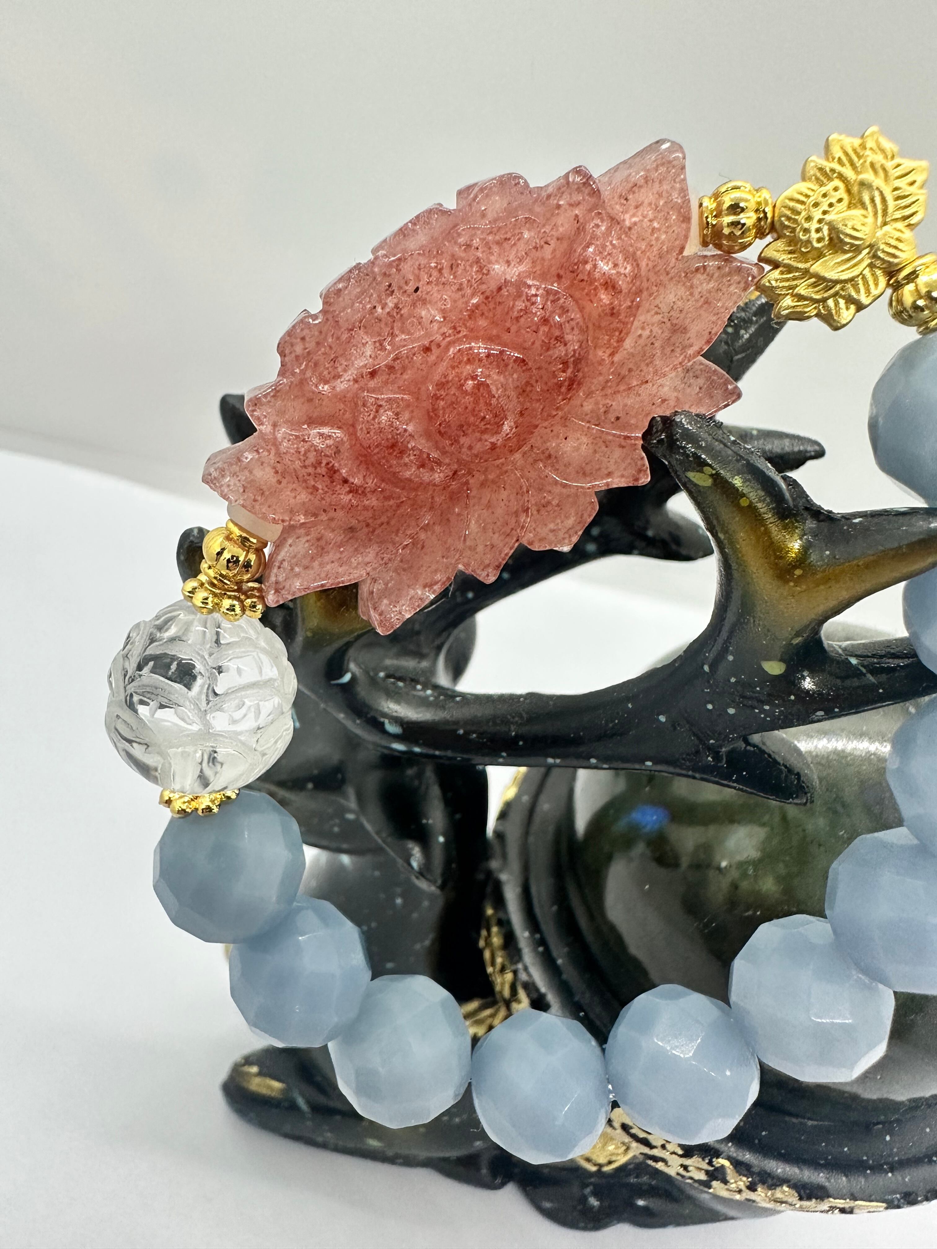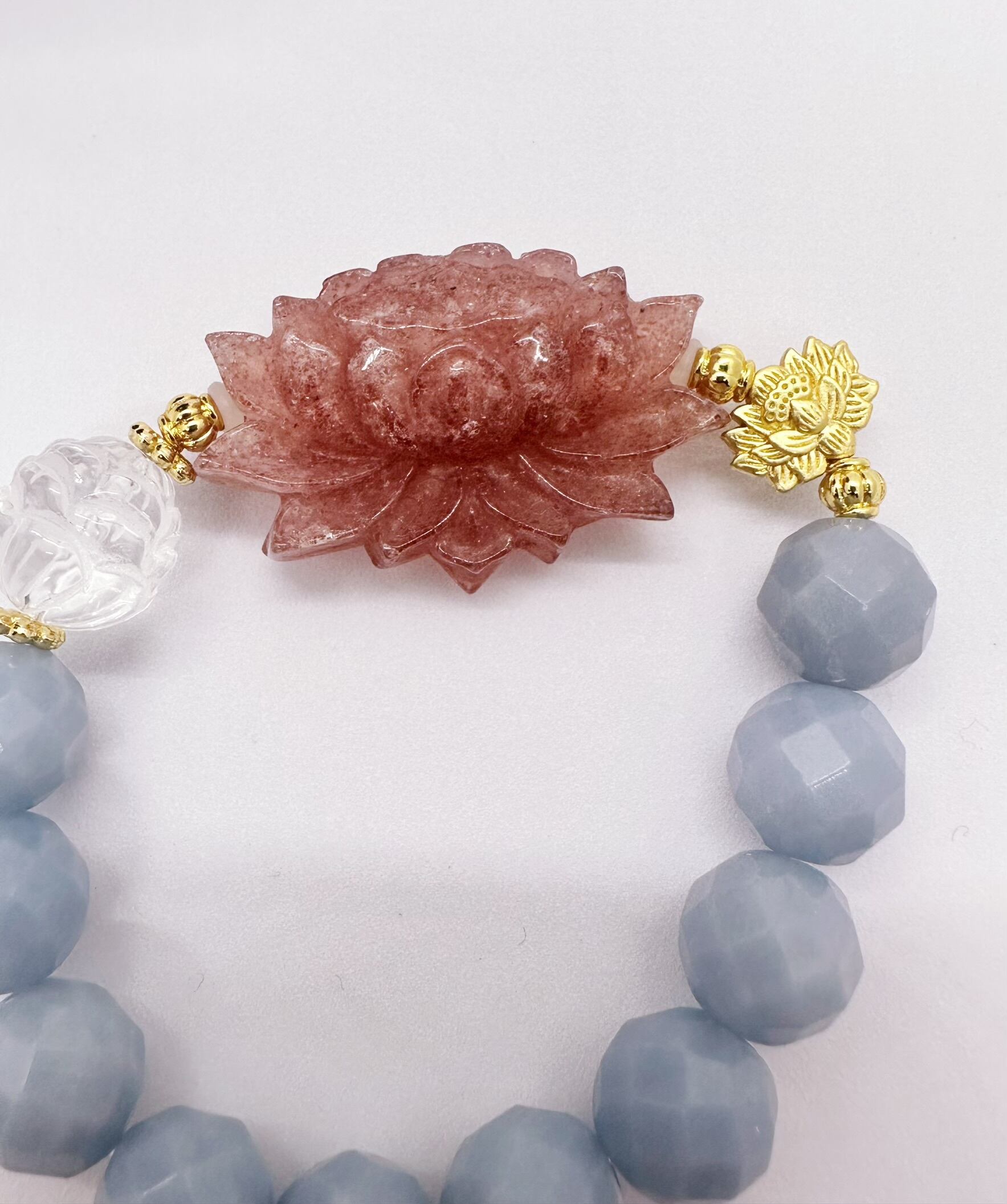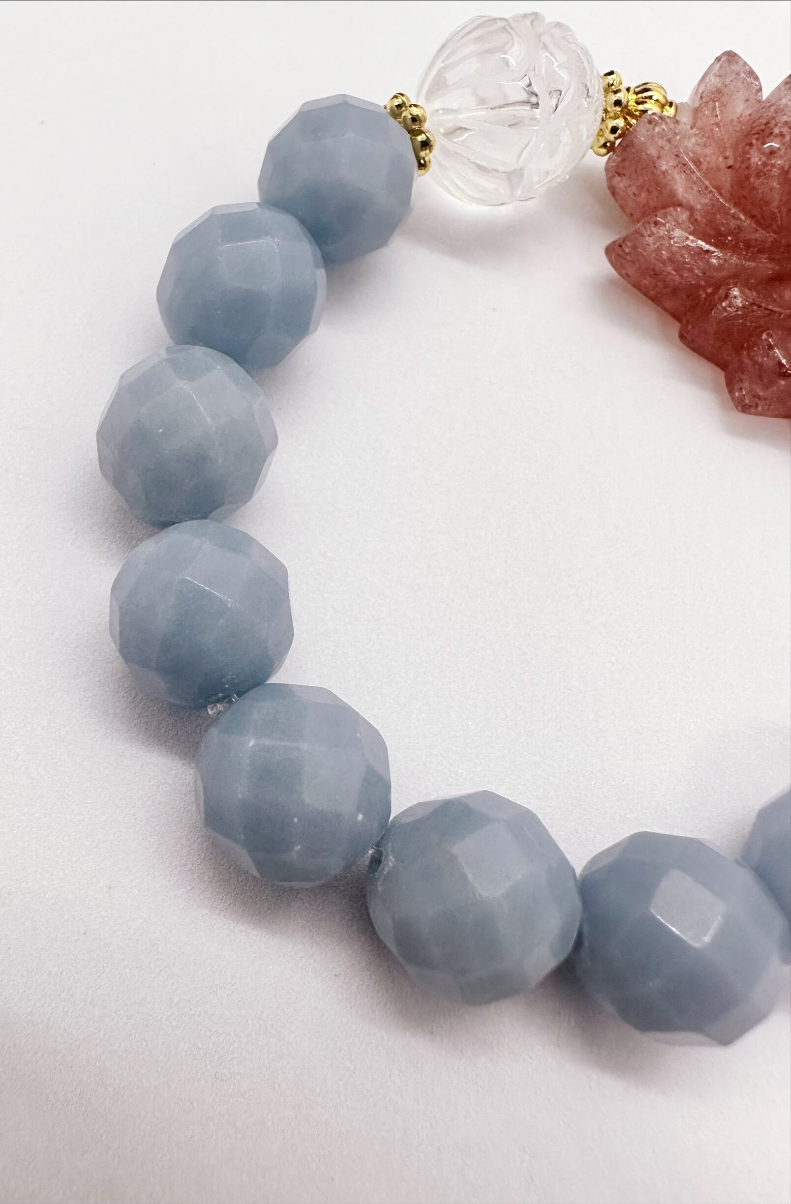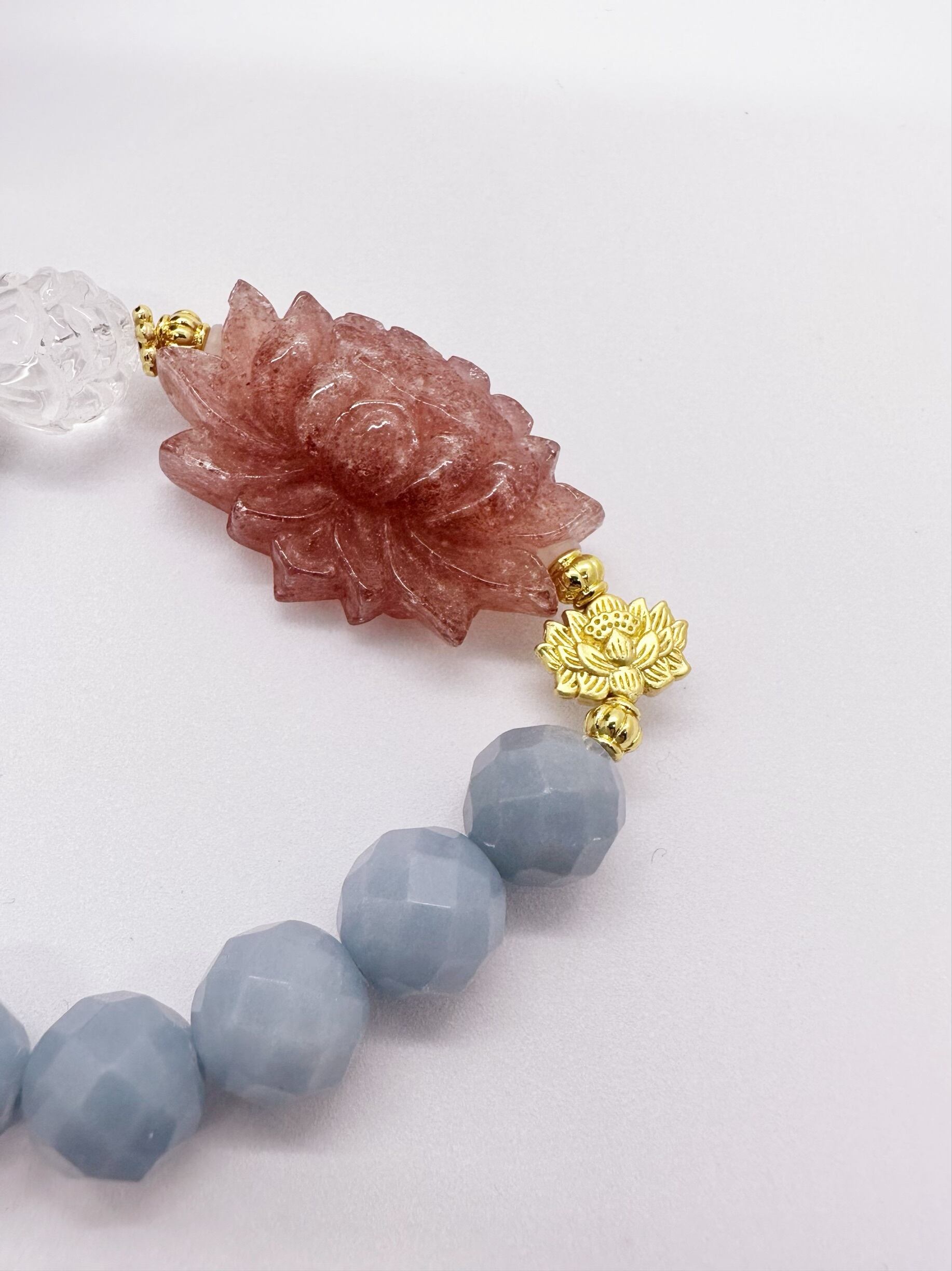 stone bracelet《蓮》ストロベリークォーツ×エンジェライト×ロータス水晶
