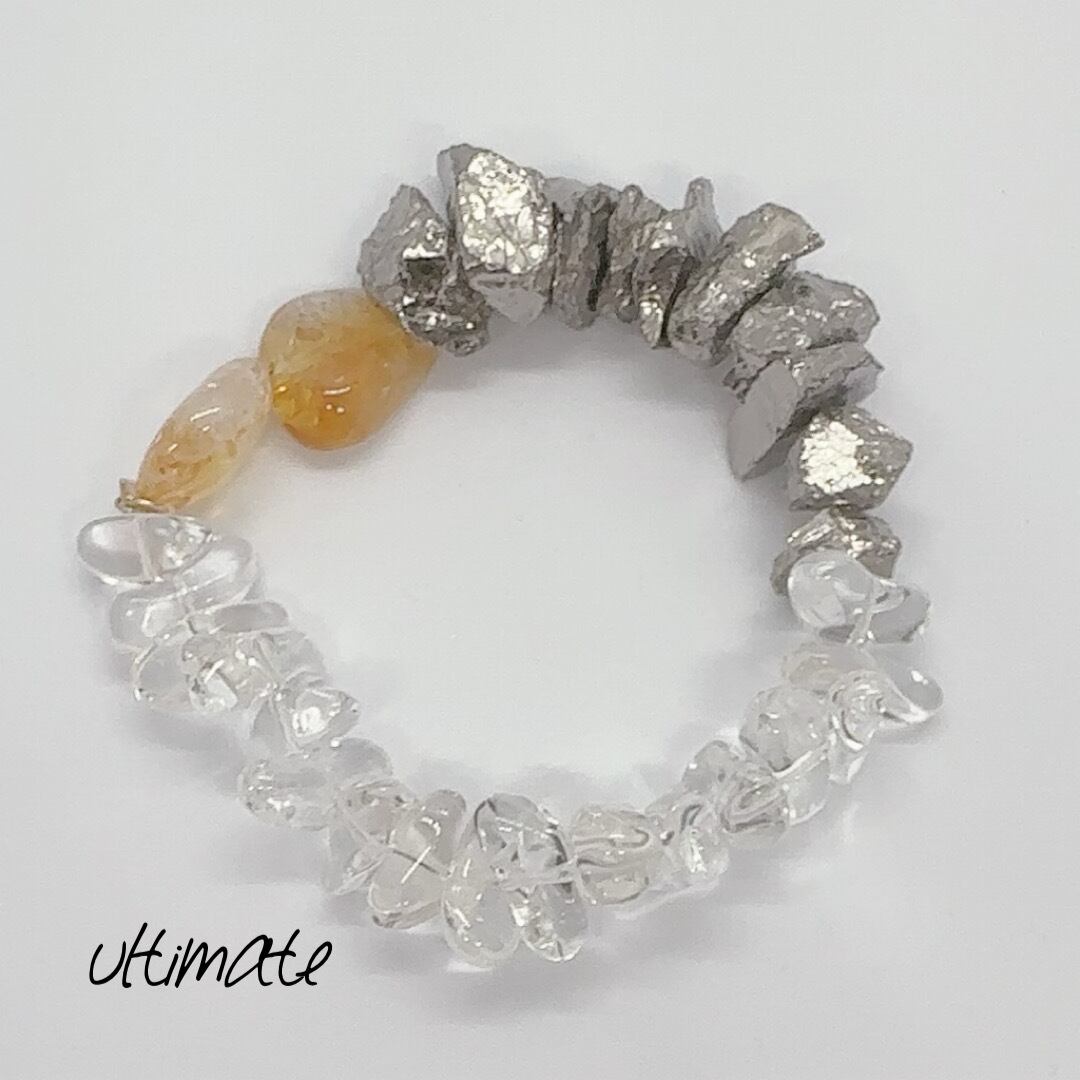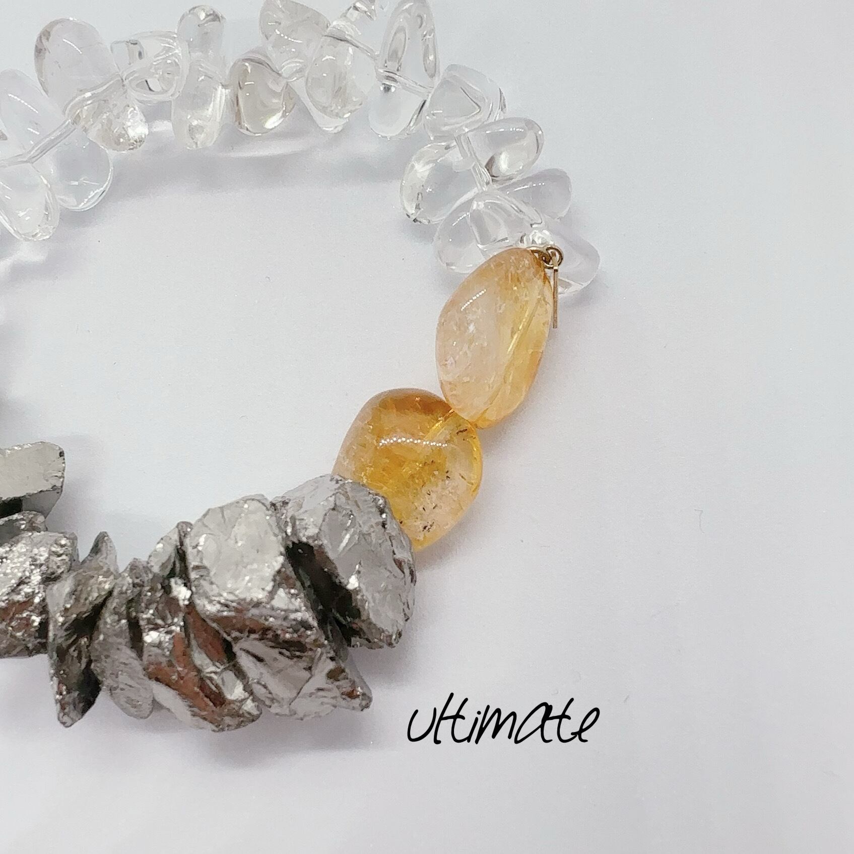 stone bracelet《シトリン×シルバーカラー水晶×クリアクォーツ》