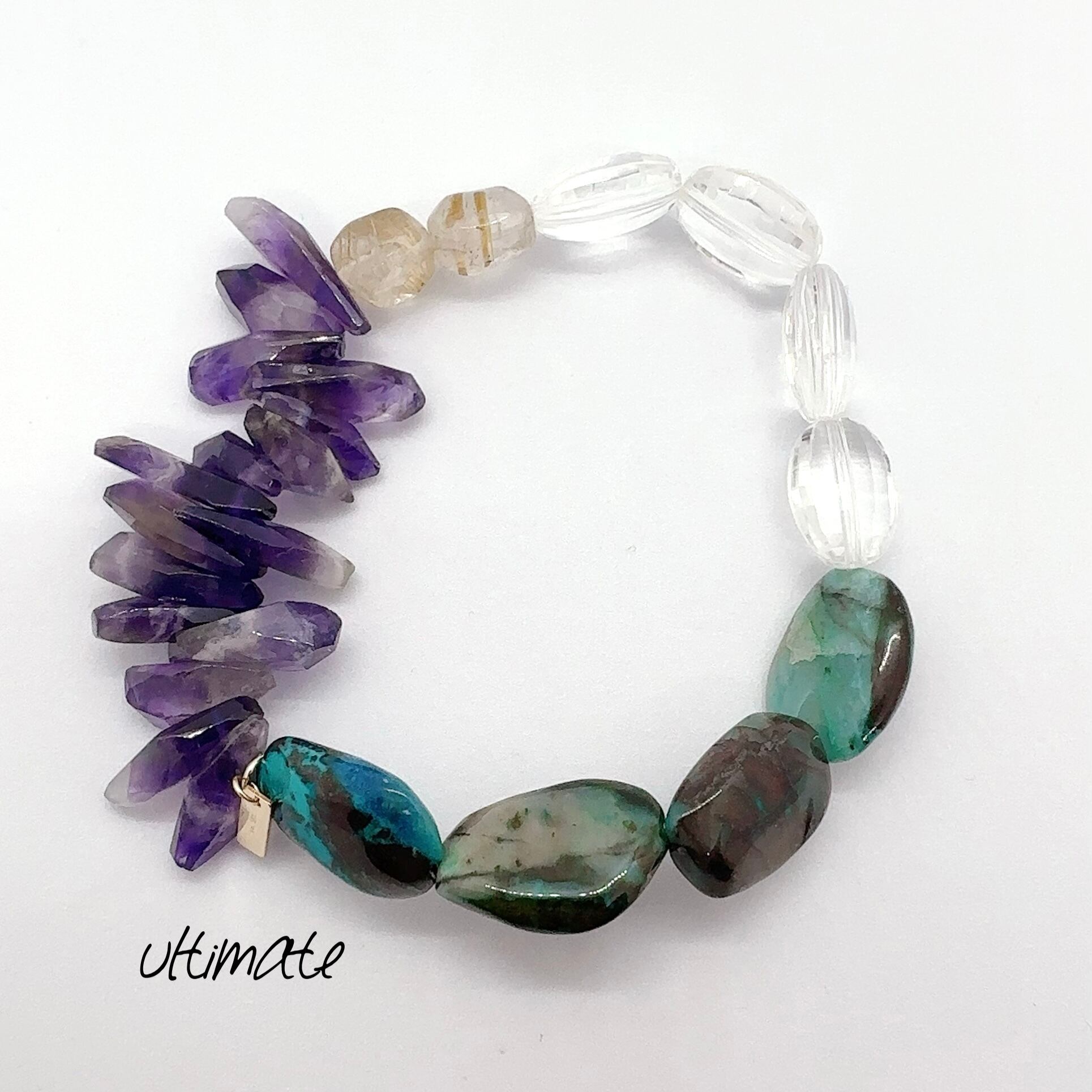 stone bracelet《クリソコラ×ポイントアメジスト×ゴールドルチルクォーツ×水晶》