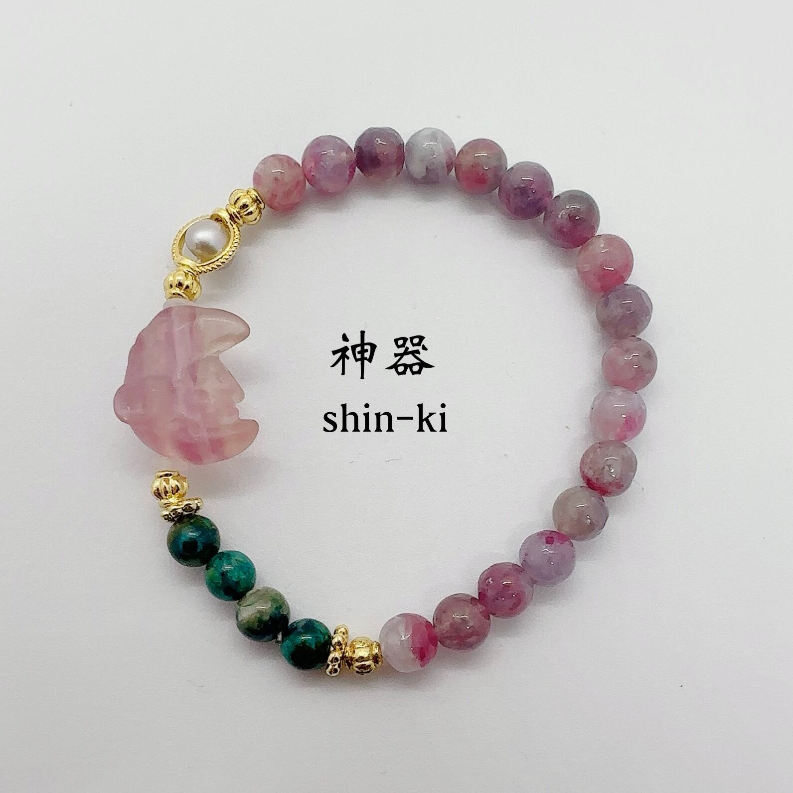ユニコーンストーンと月兎の細身のブレスレット。