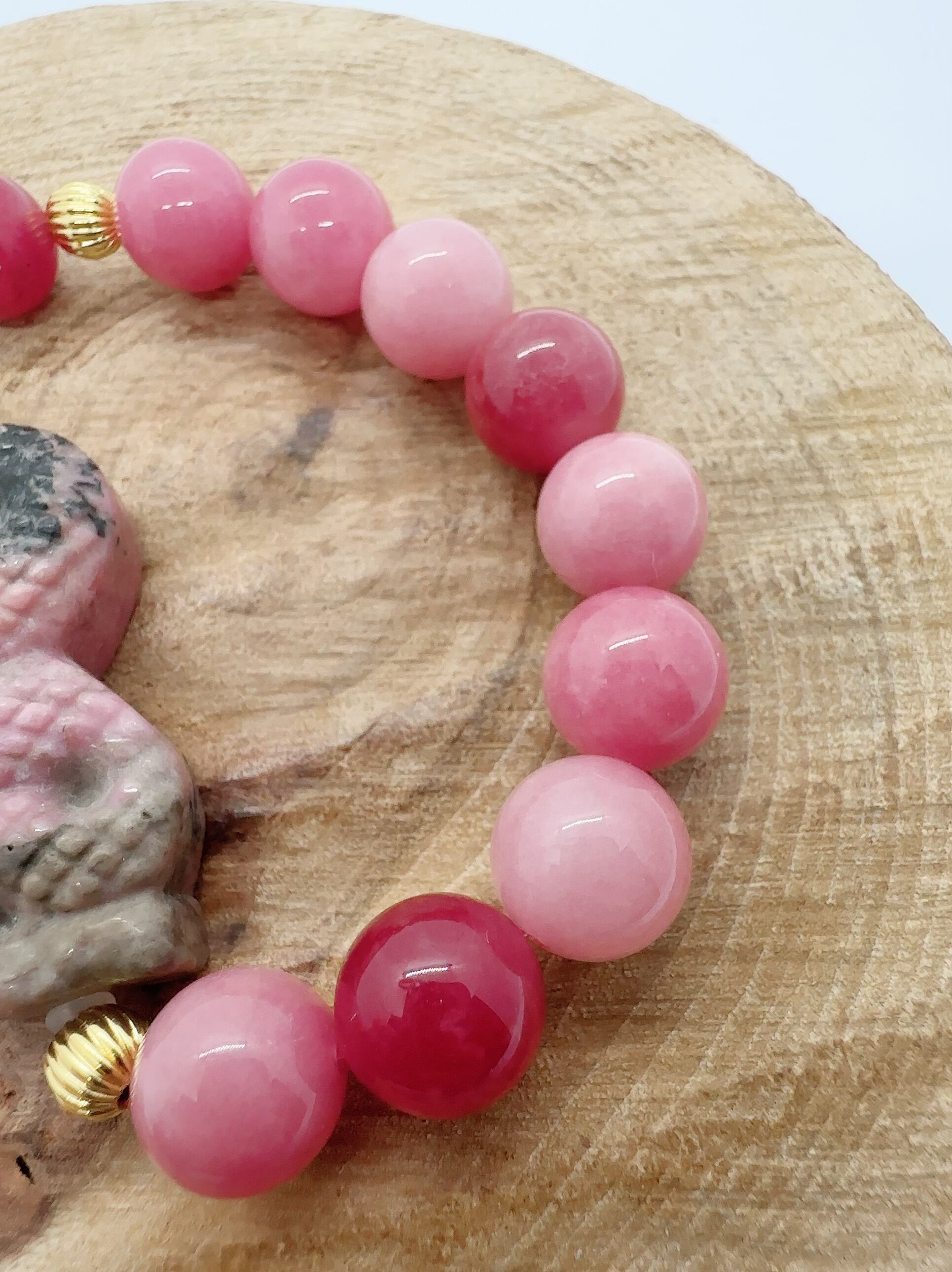 stone bracelet《蛇》ロードクロサイト×《龍》水晶×ピンクカラージェード