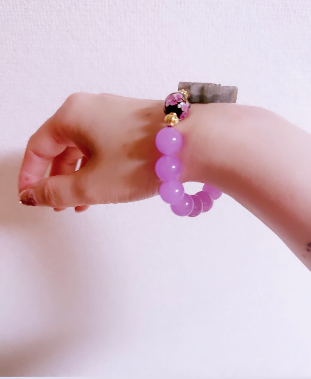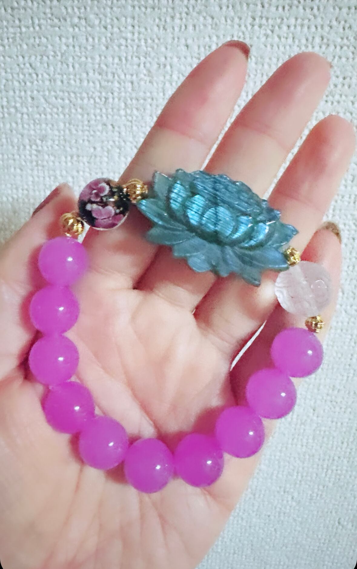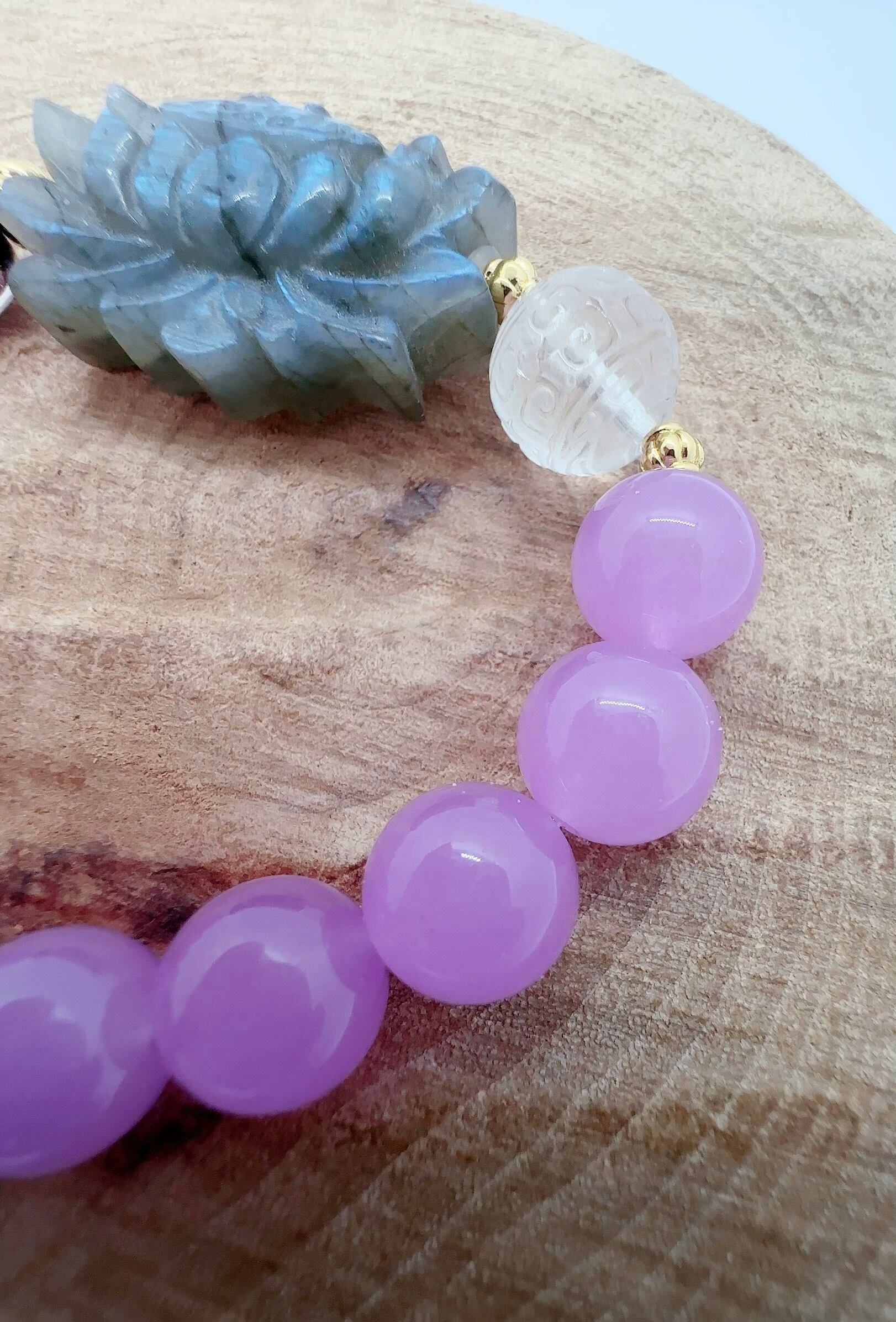stone bracelet《蓮の花》ラブラドライト×パープルカラージェード×《回紋珠》水晶×とんぼ玉