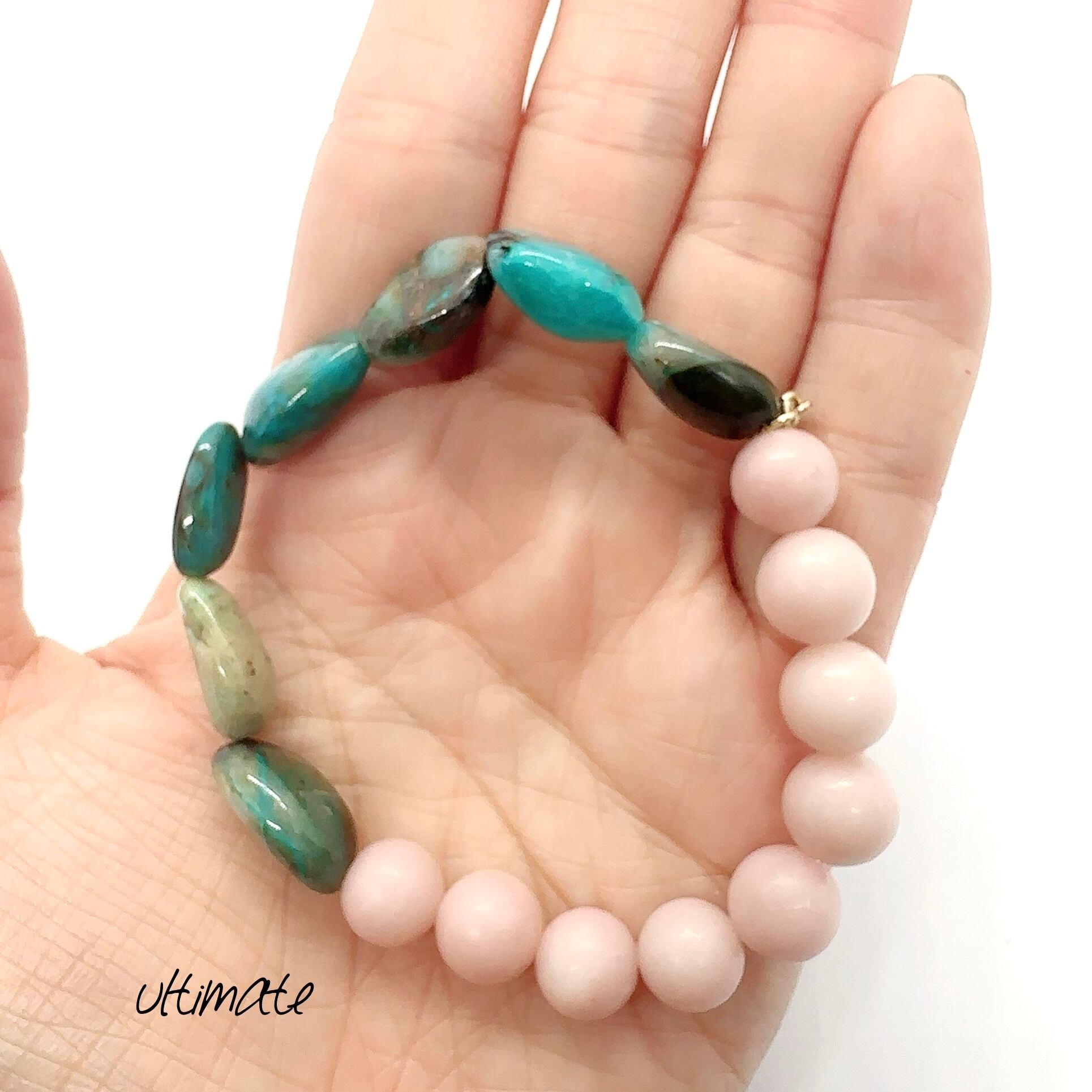 stone bracelet《ピンクソープストーン×クリソコラ》