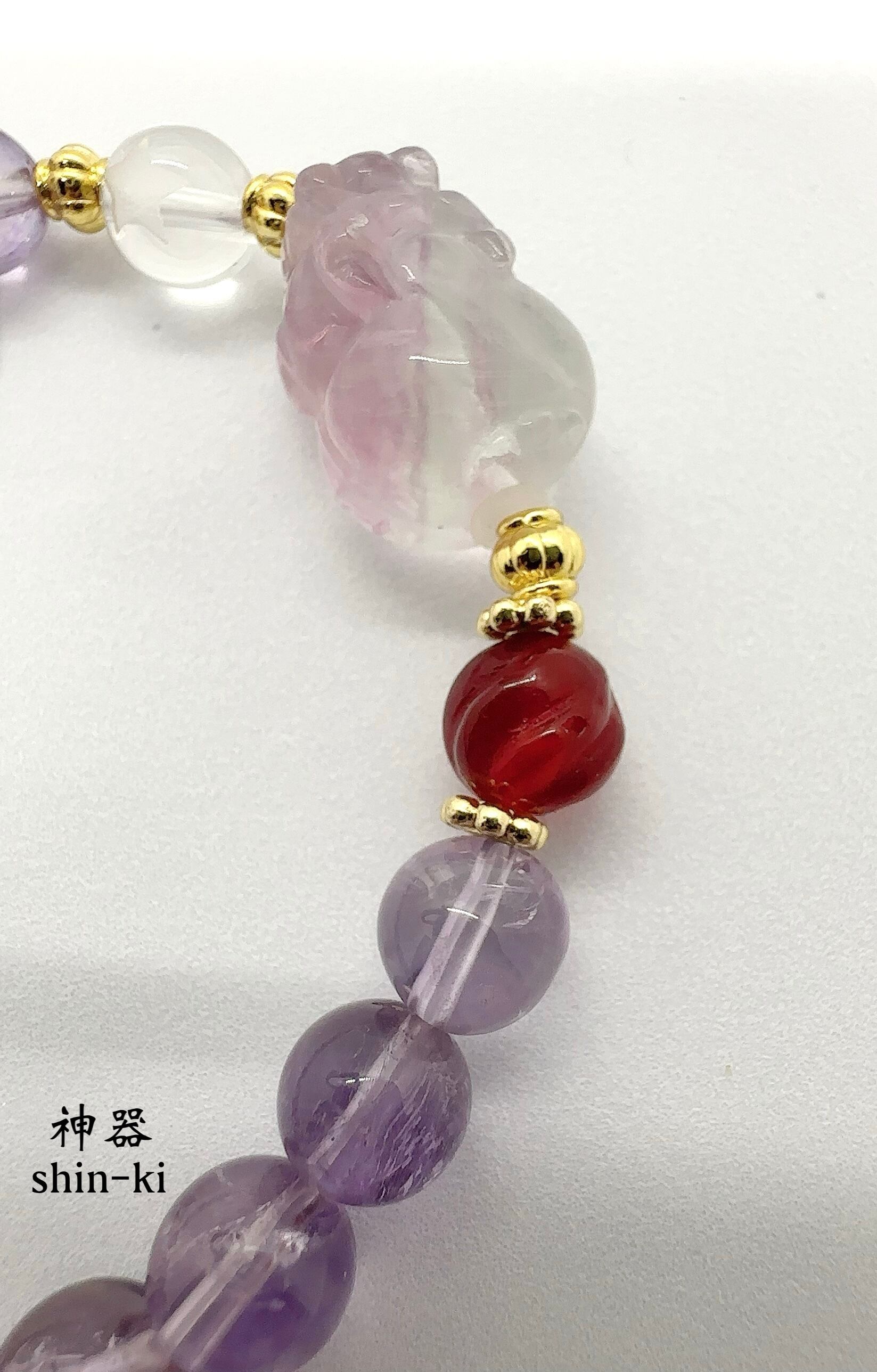 stone bracelet《貔貅》フローライト×レッドアゲート×ラベンダーアメジスト