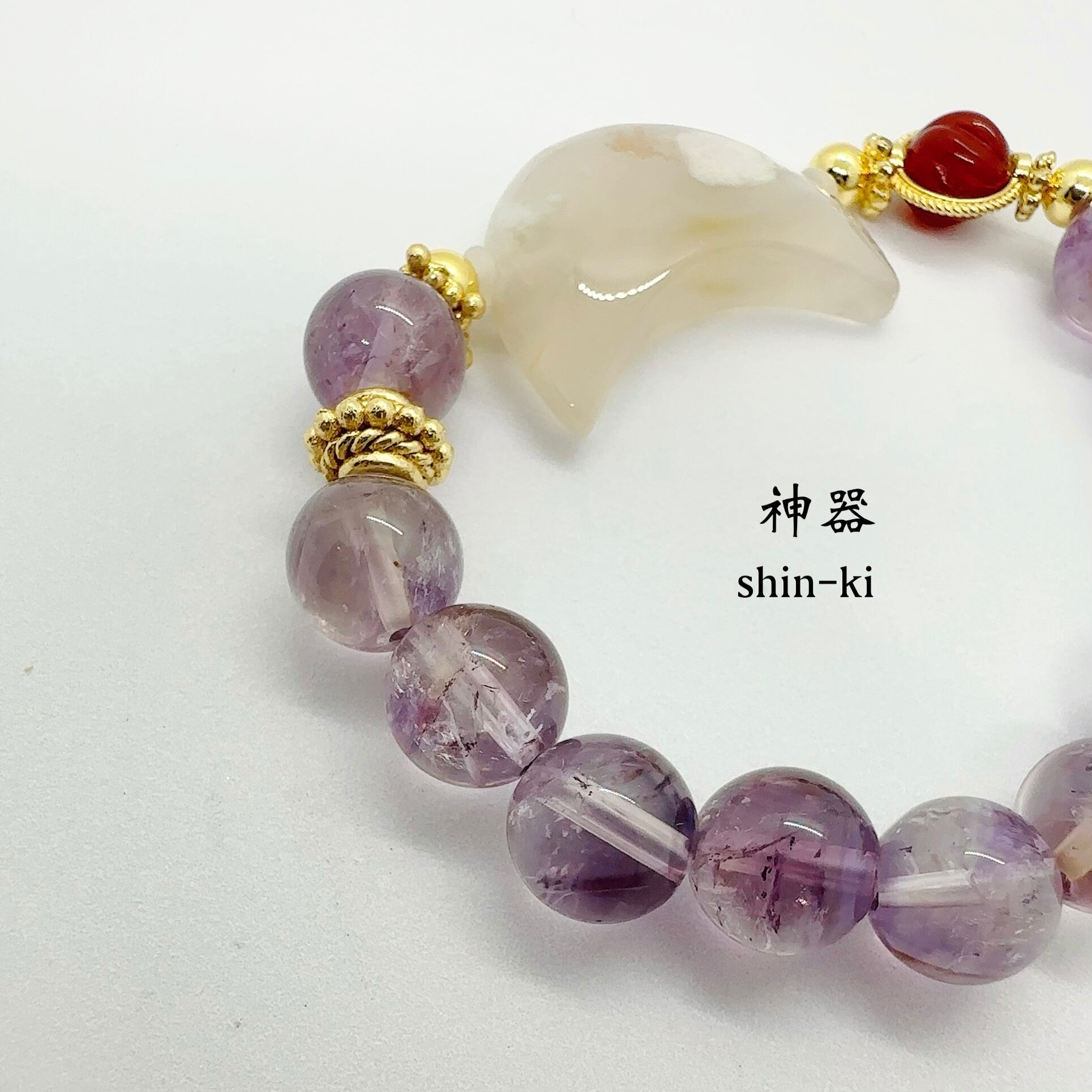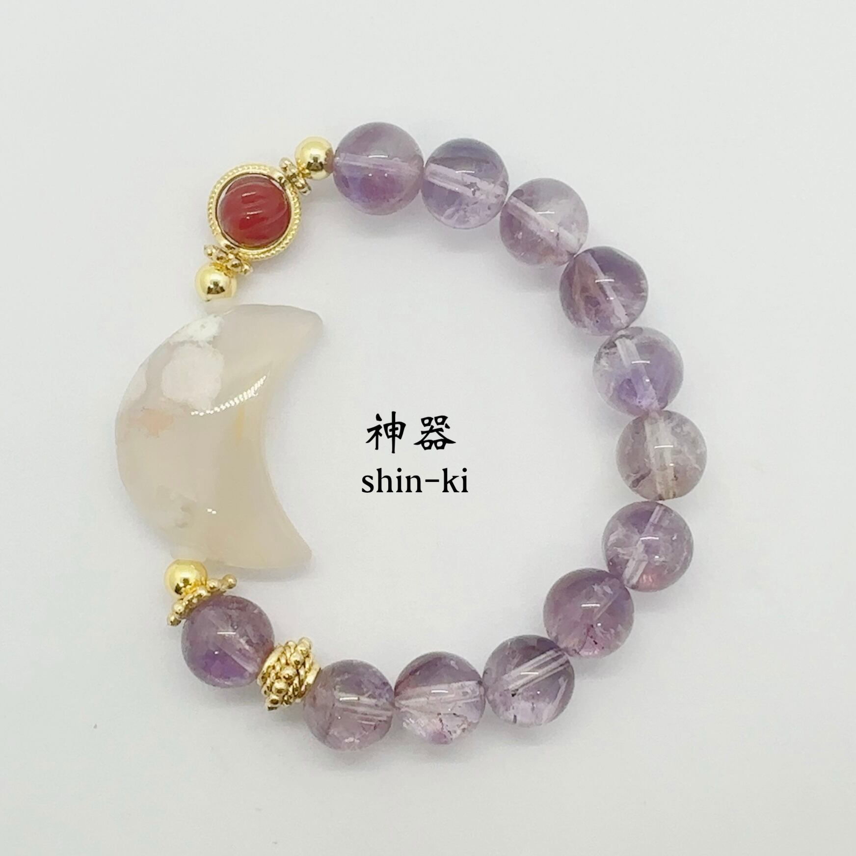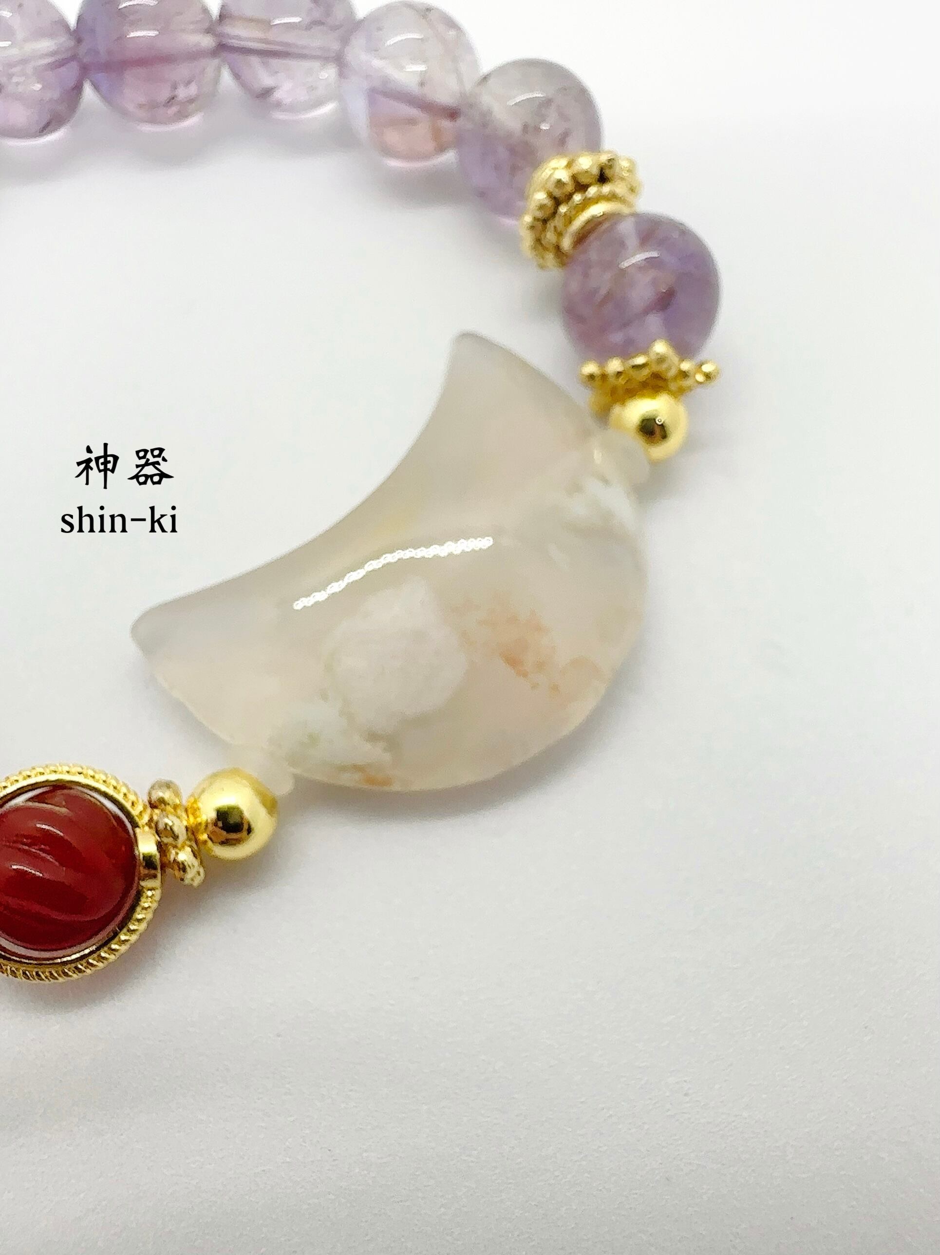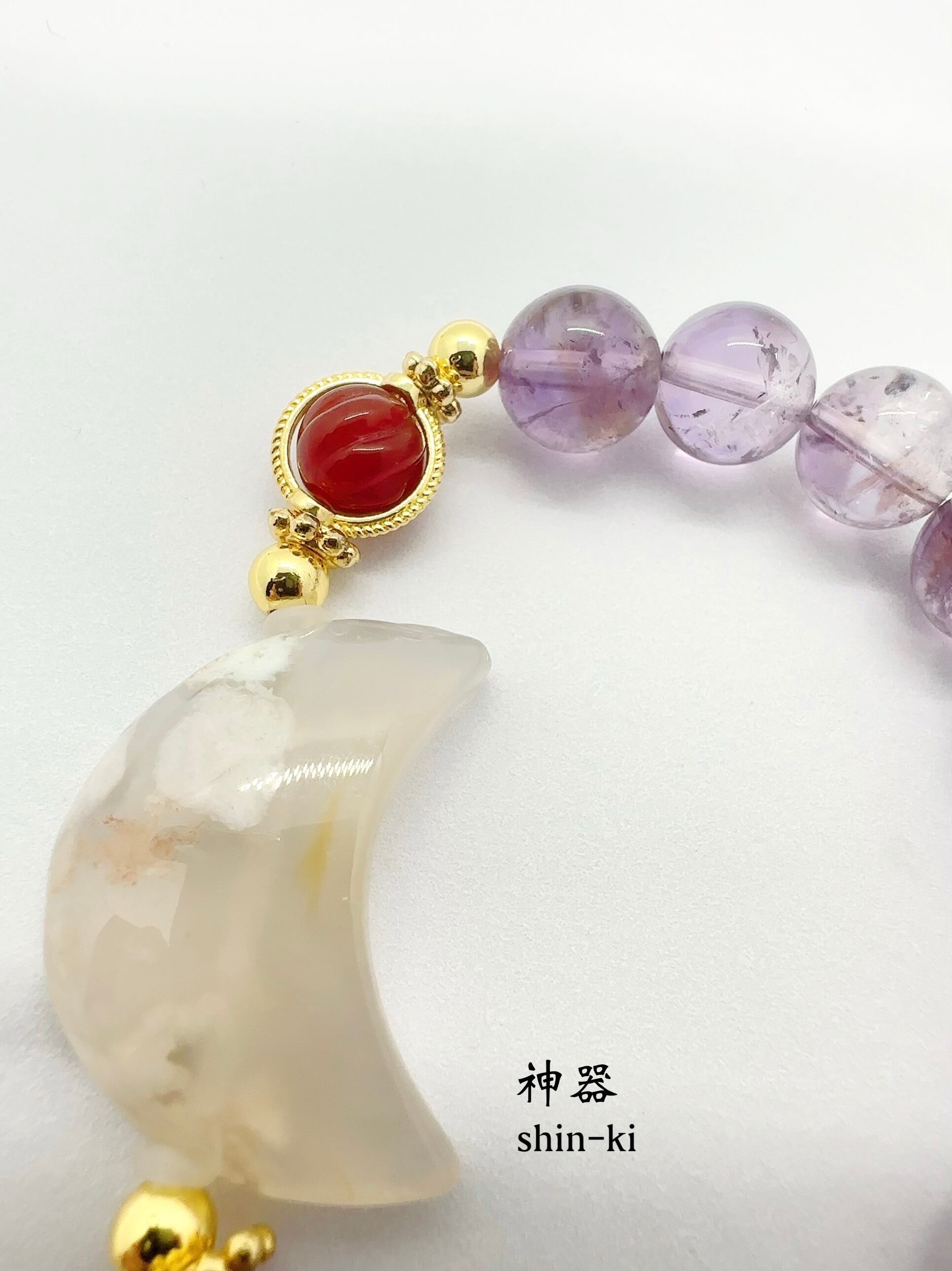 stone bracelet《月》桜瑪瑙×カーネリアン×ラベンダーアメジスト