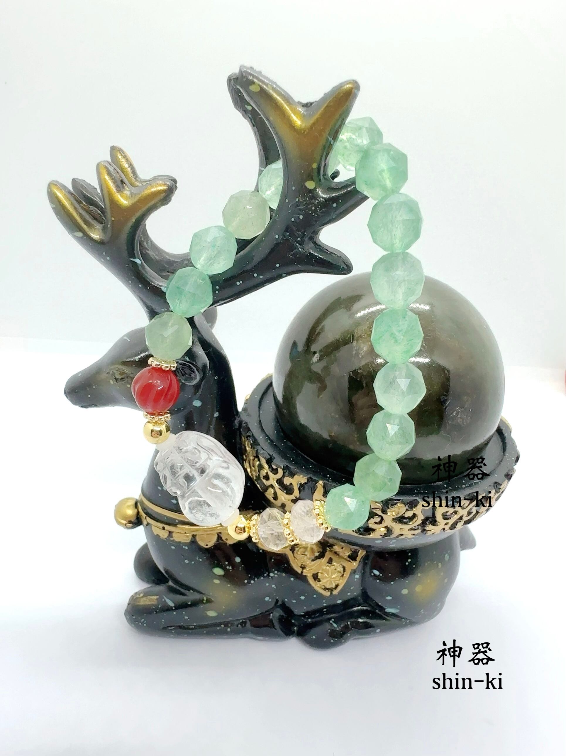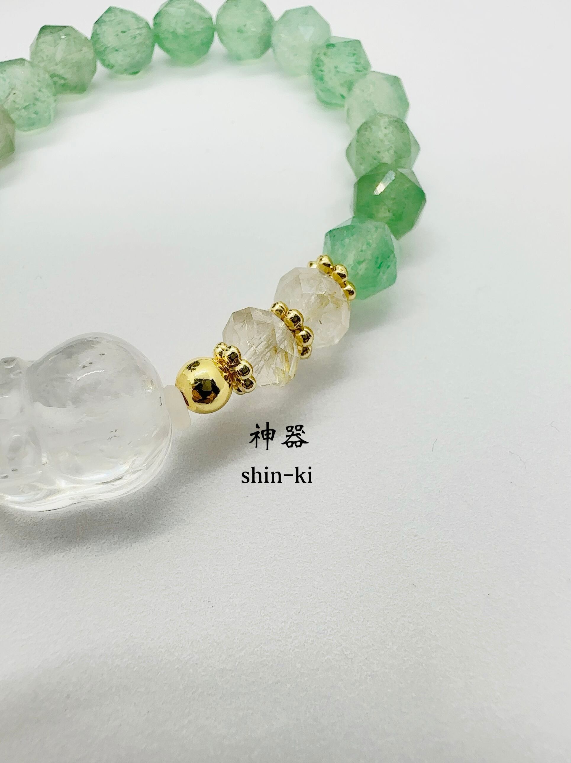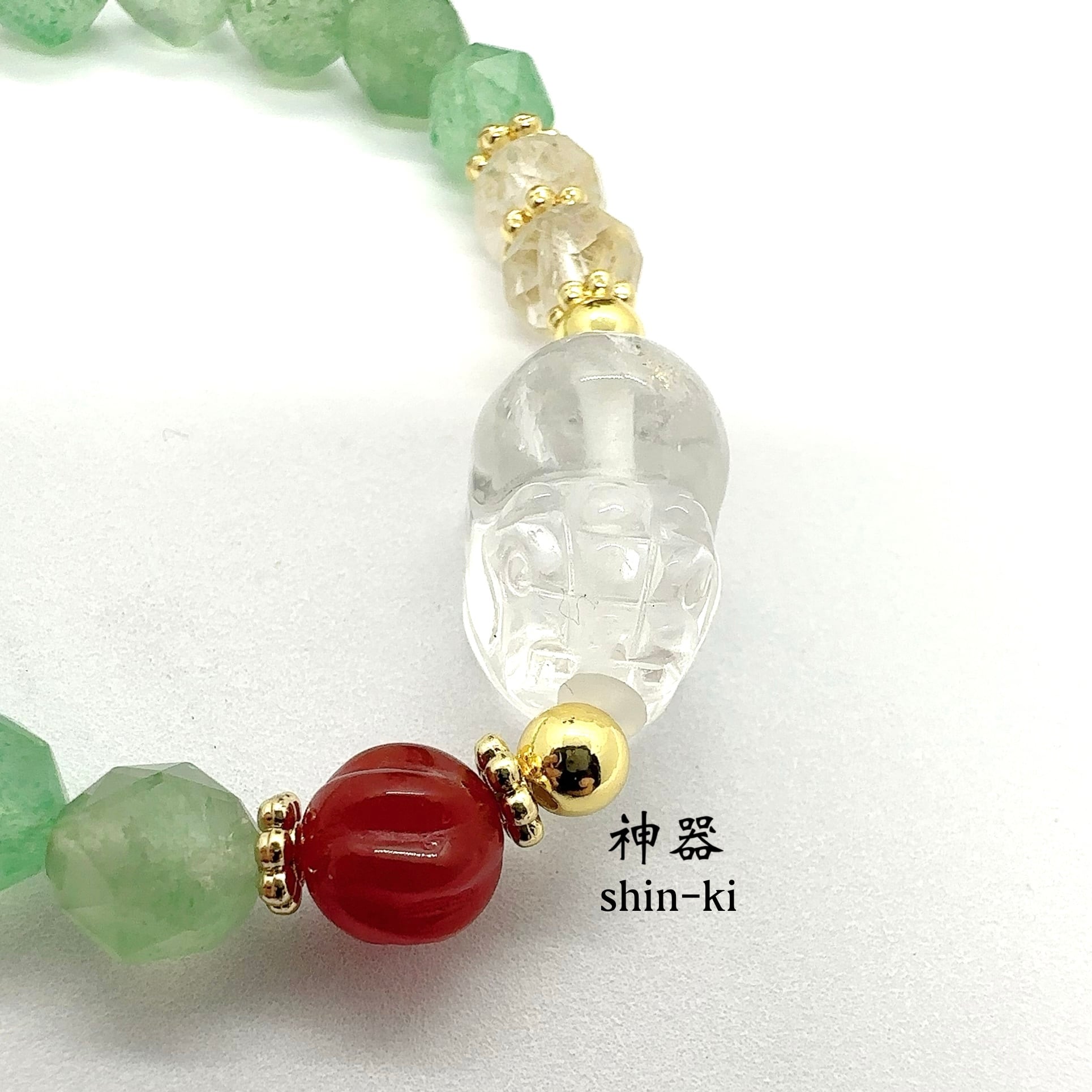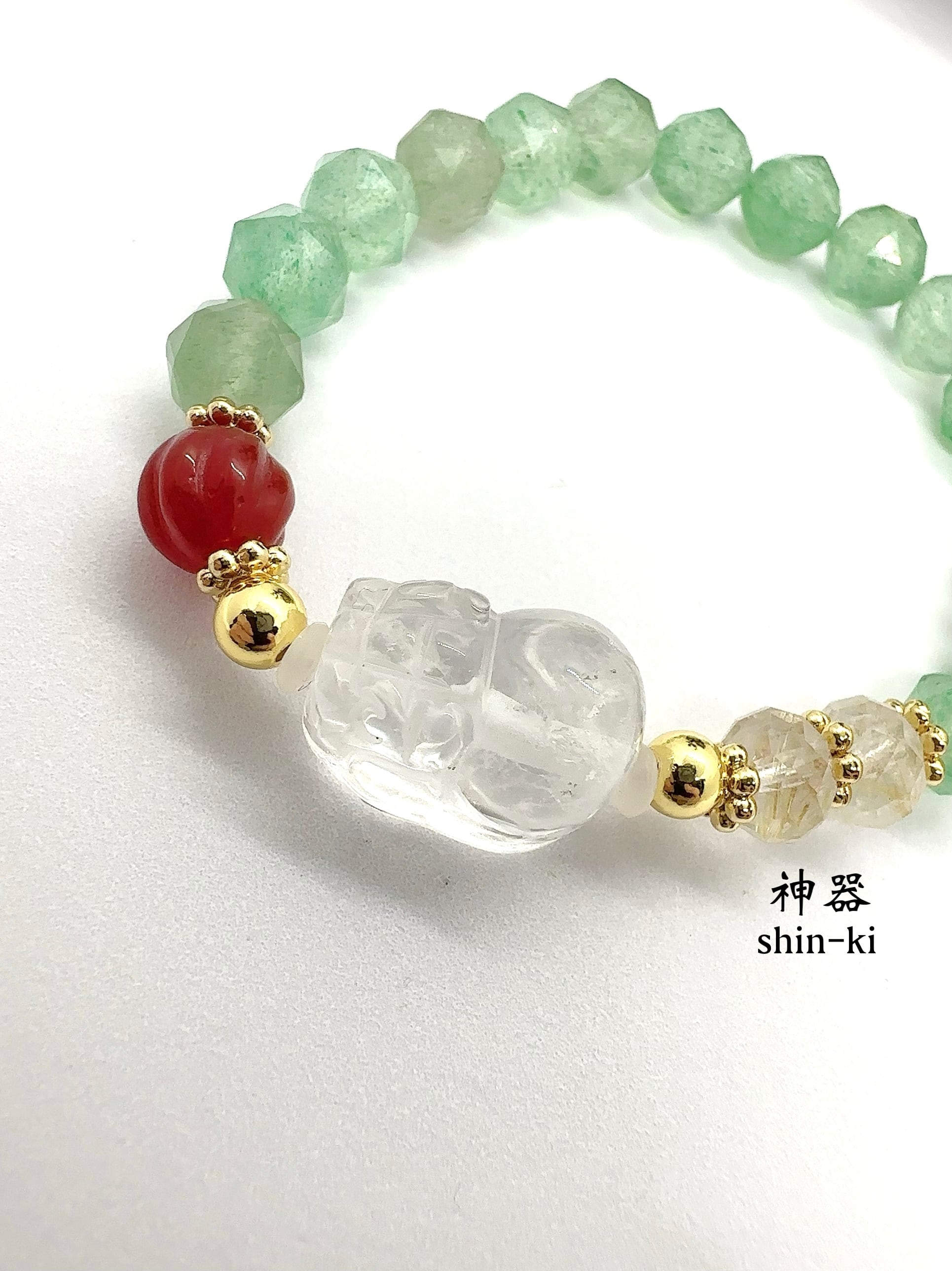 stone bracelet《貔貅》水晶×カーネリアン×グリーンアベンチュリン×ルチルクォーツ