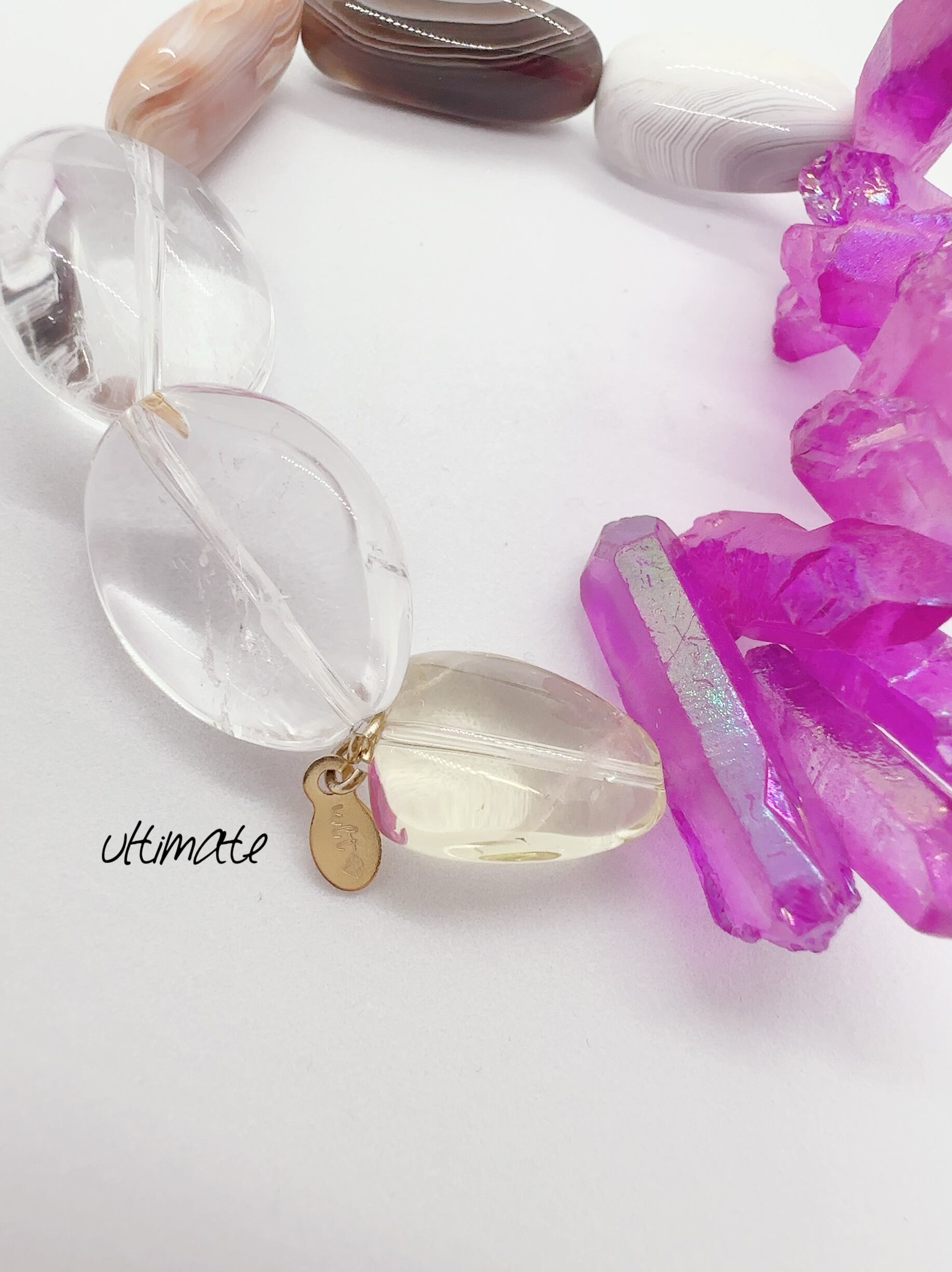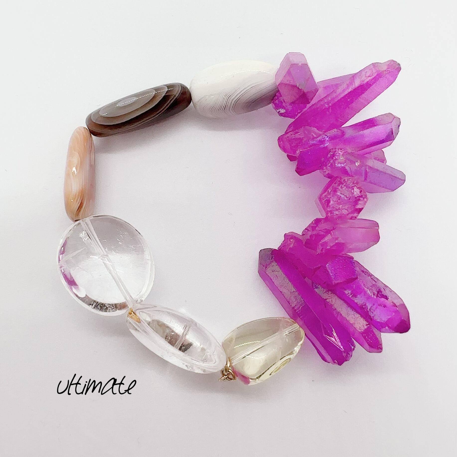 stone bracelet《氷柱水晶パープルコーティング×ピンクボツワナアゲート×水晶×レモンクォーツ》