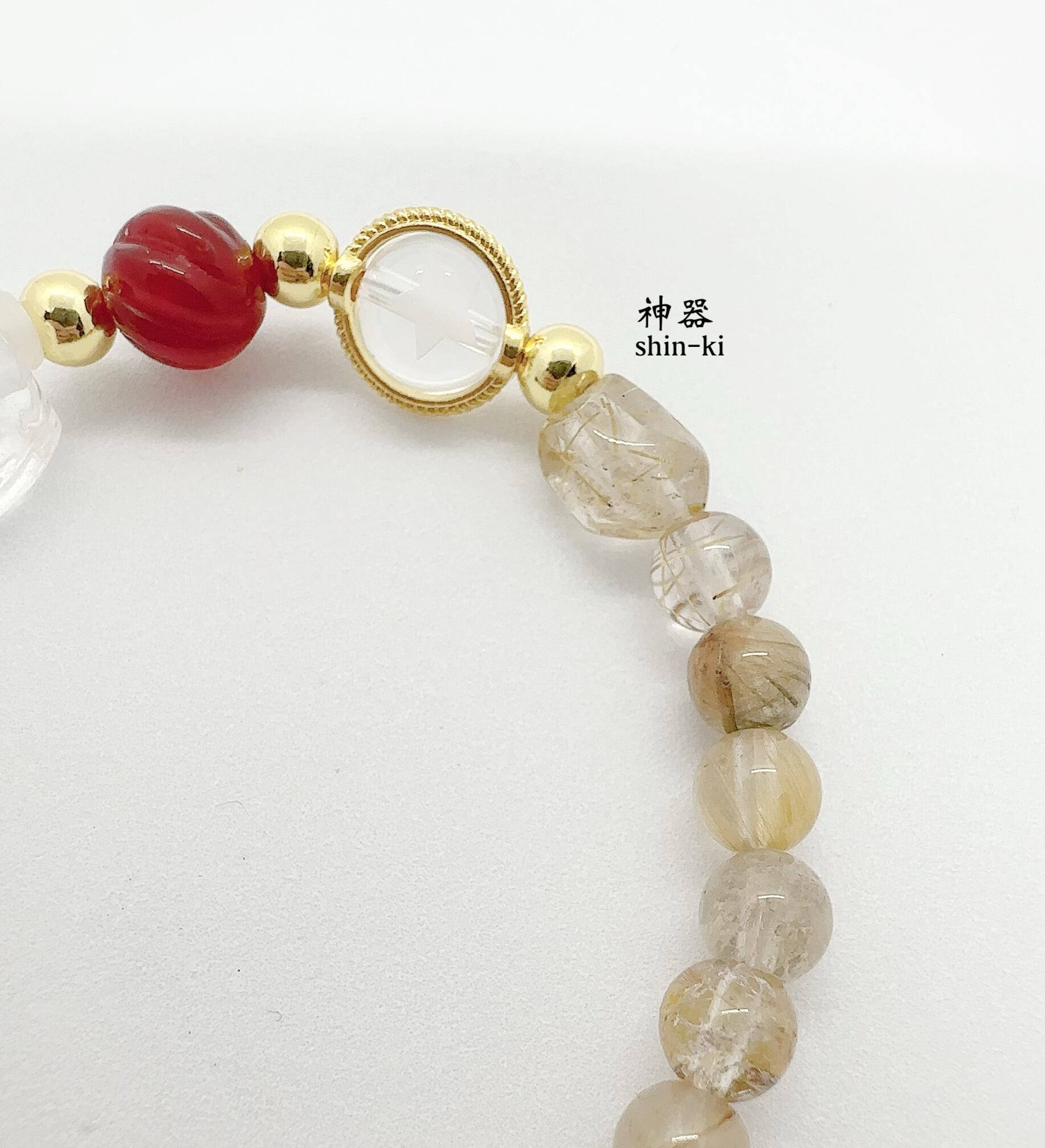 stonebracelet A 《貔貅》水晶×ルチルクォーツ×レッドアゲート