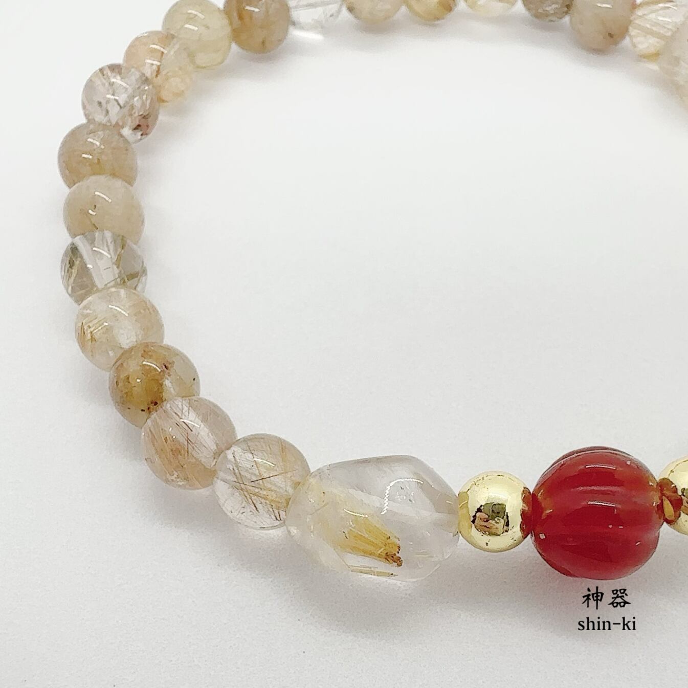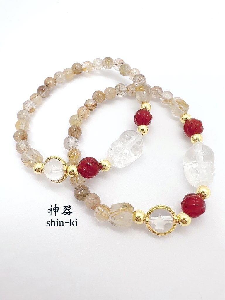 stone bracelet B《貔貅》水晶×ルチルクォーツ×レッドアゲート