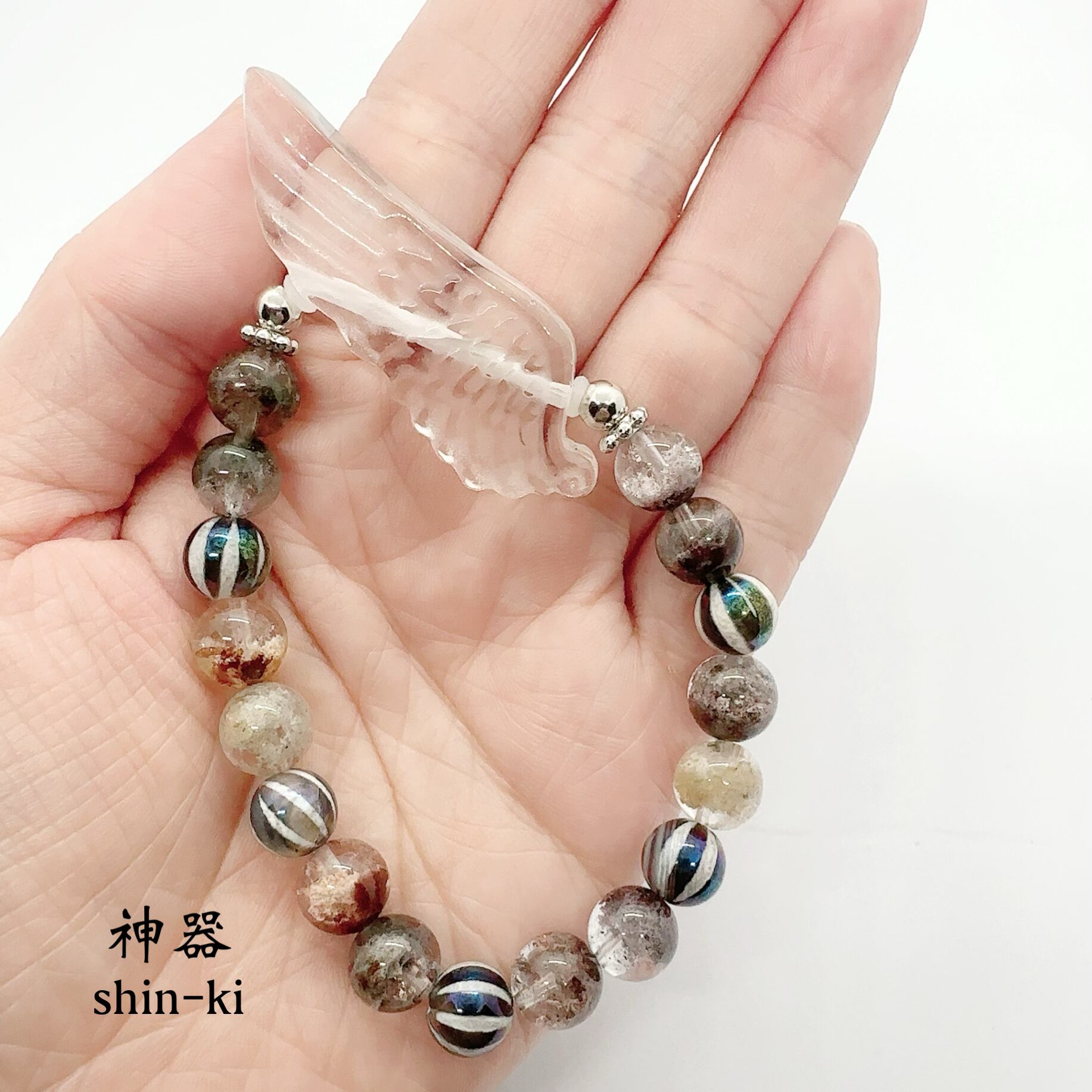 様々なガーデンクォーツと、羽の水晶のブレスレット。