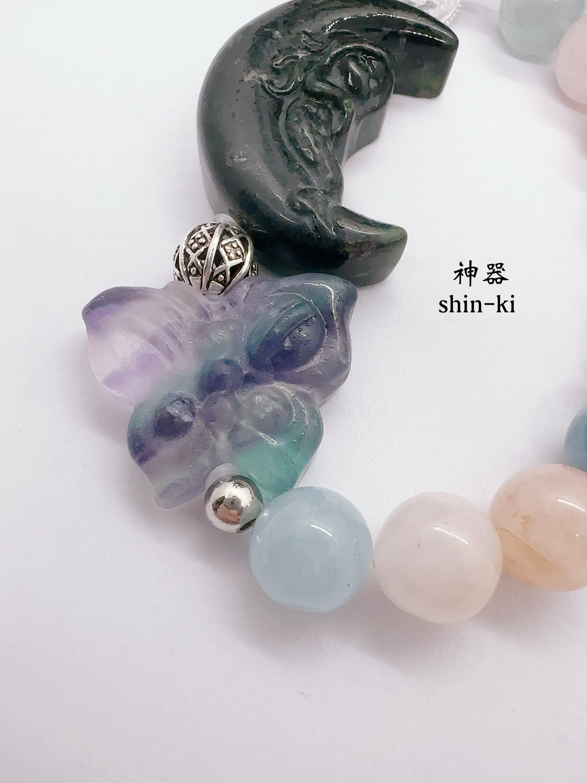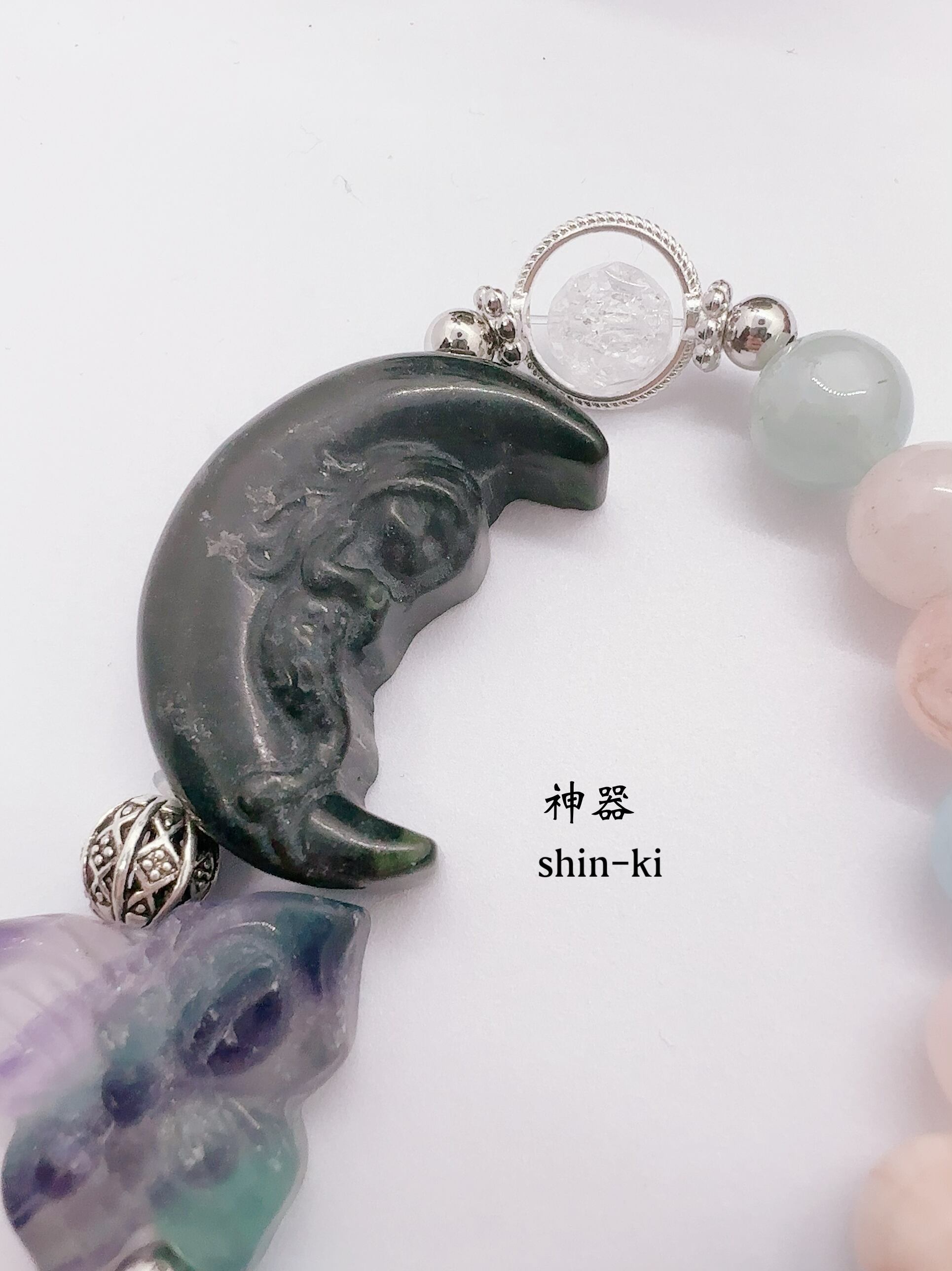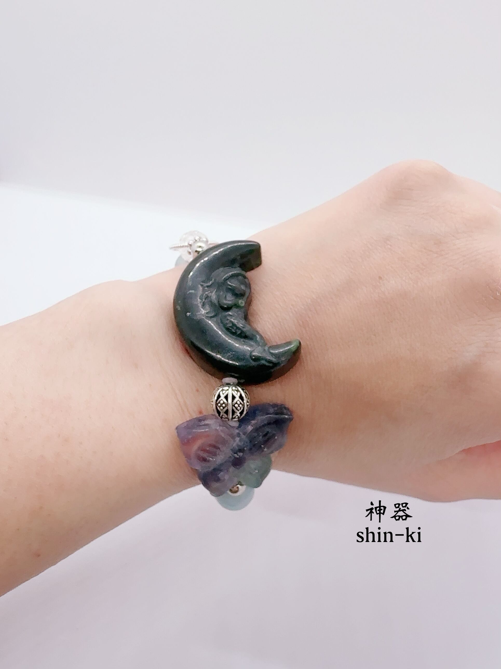 《月》オブシディアン×《蝶》フローライト×クラック水晶×ミックスベリル
