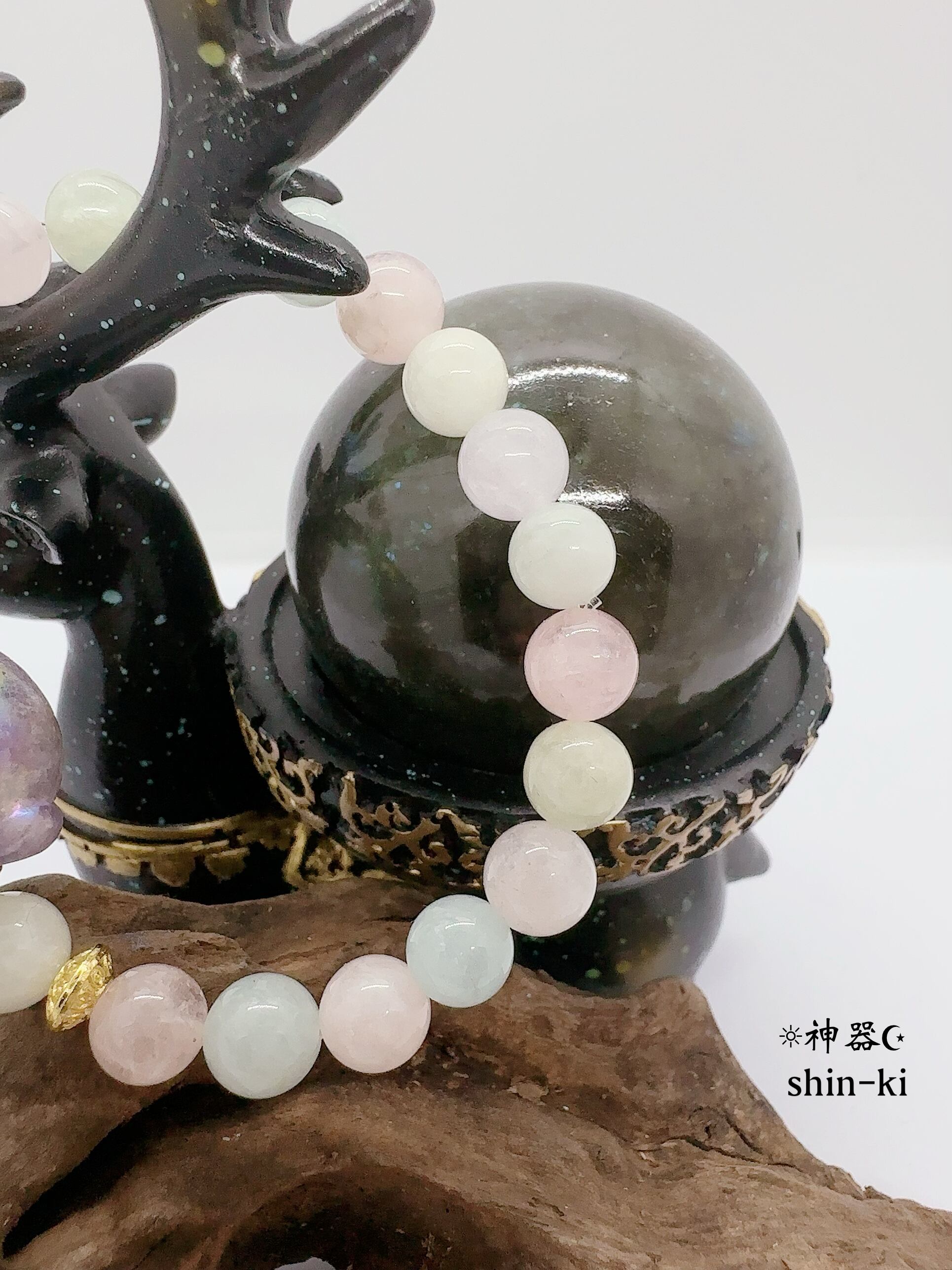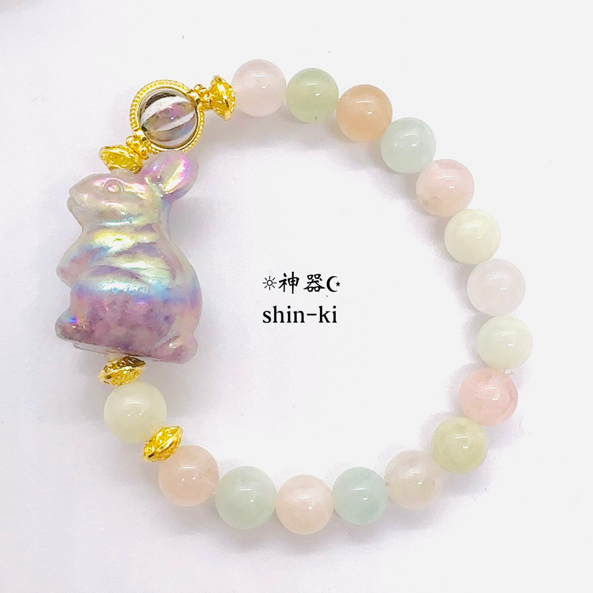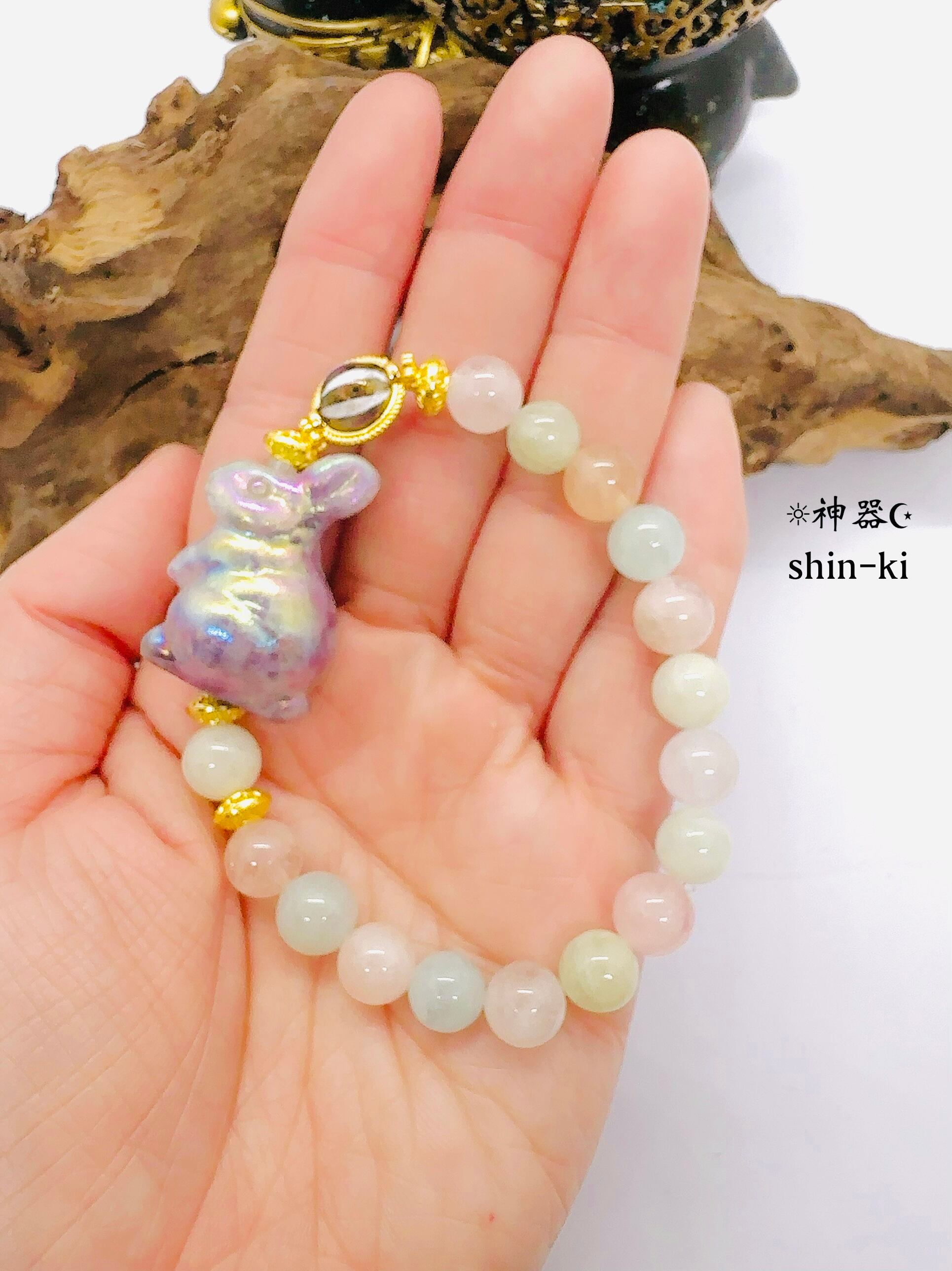 stone bracelet《兎》オーラ藍田玉(BK)×ミックスベリル×《ストライプ》アゲート