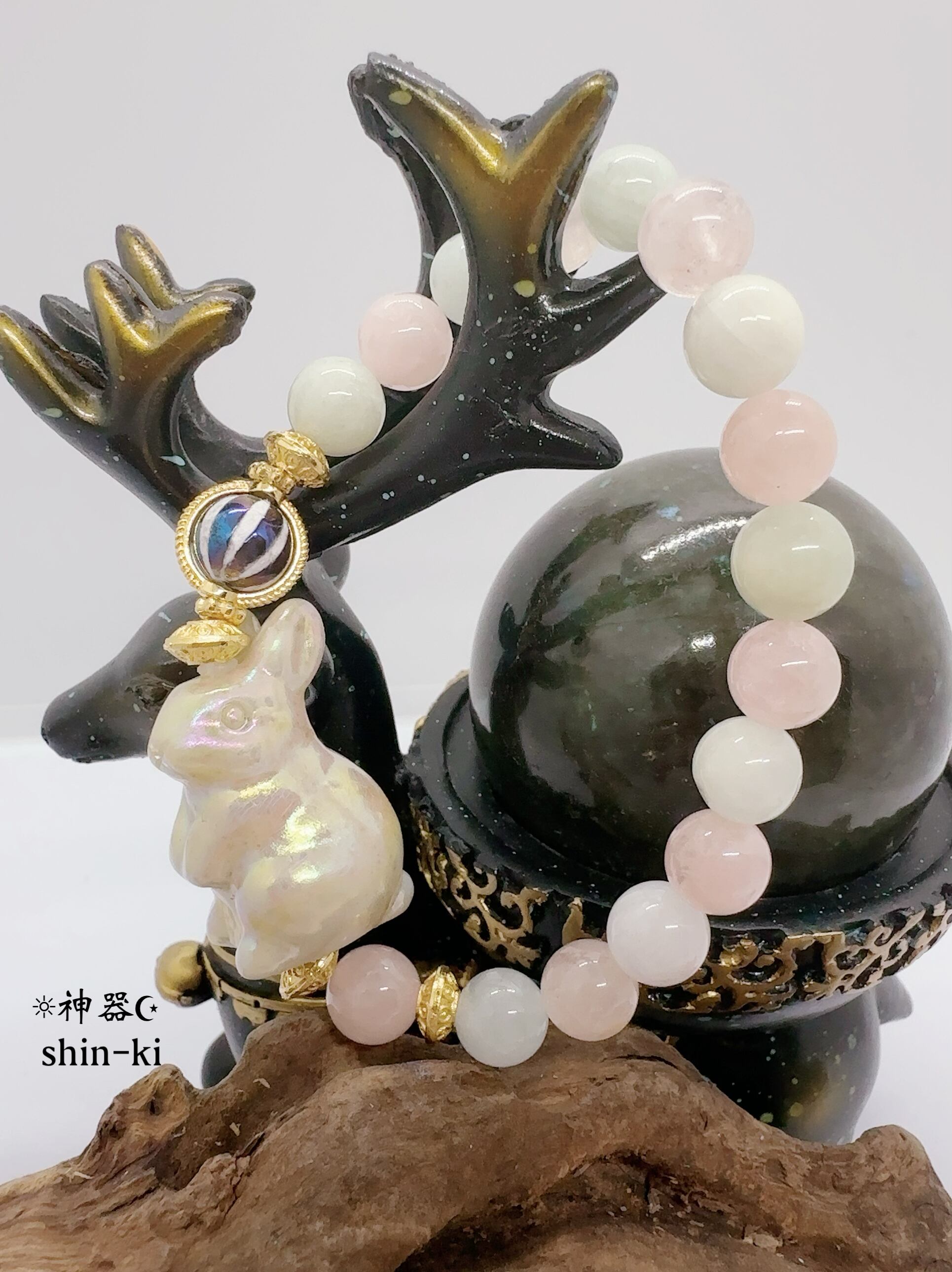stone bracelet《兎》オーラ藍田玉(WH)×ミックスベリル×《ストライプ》アゲート