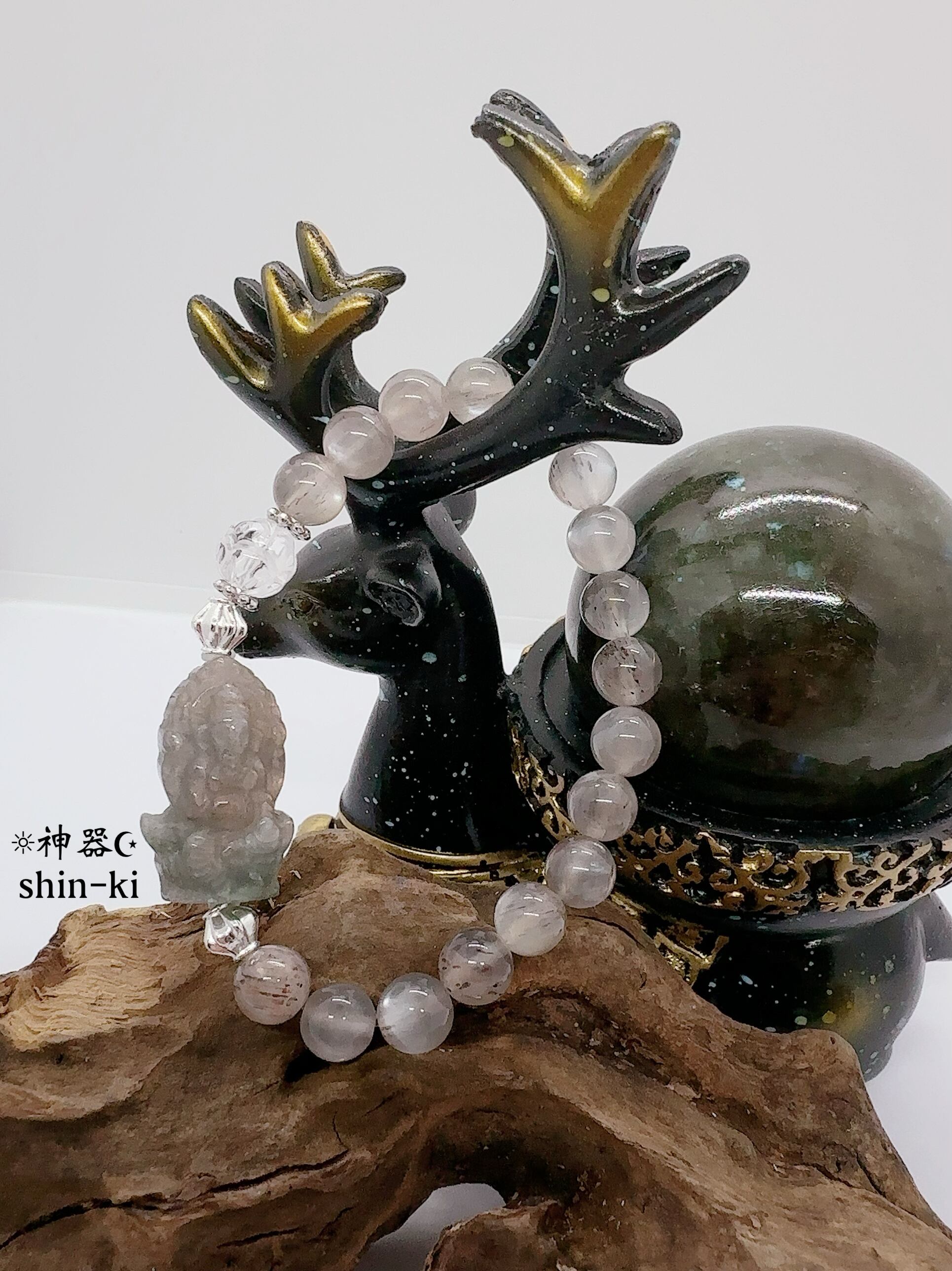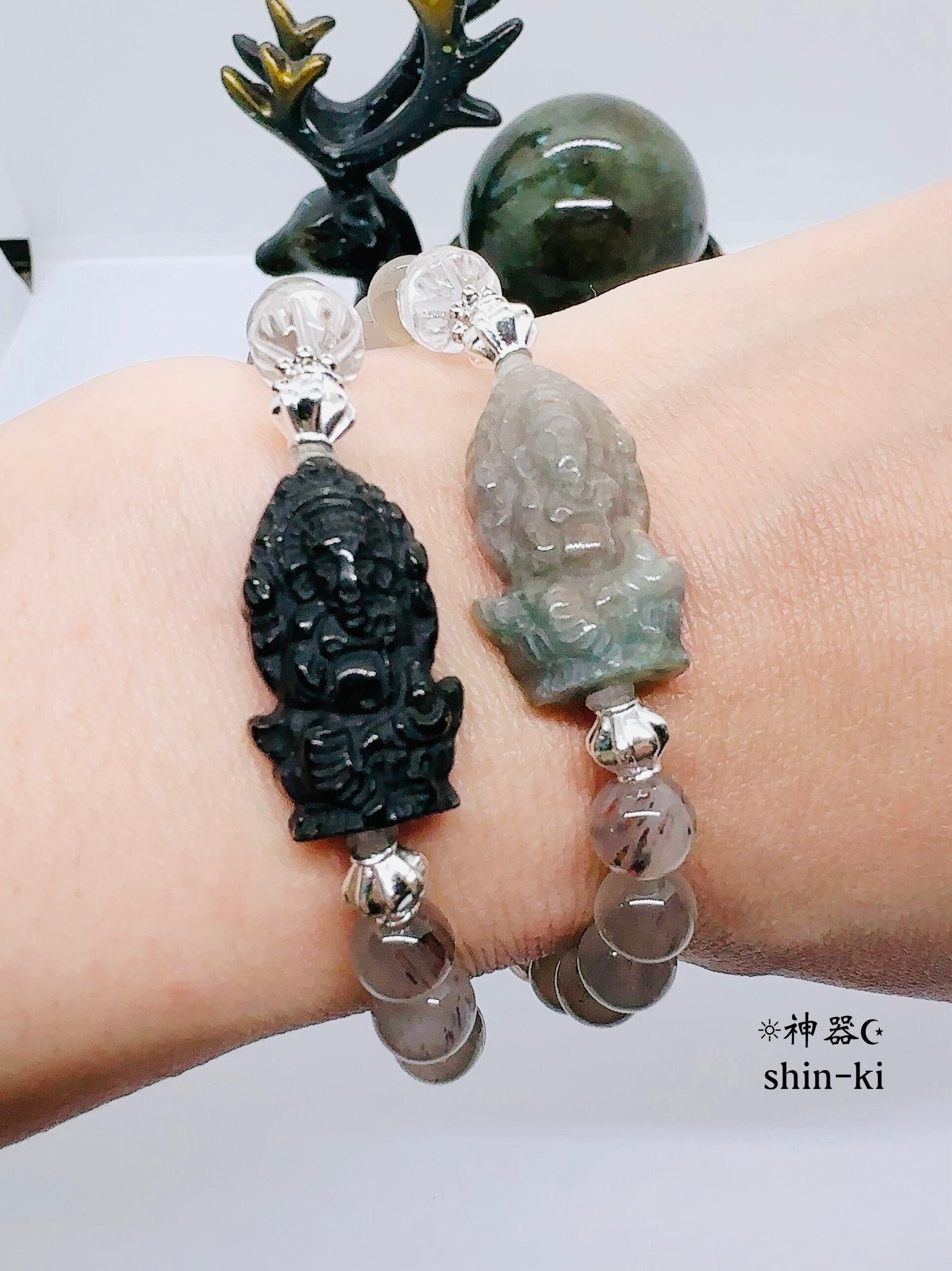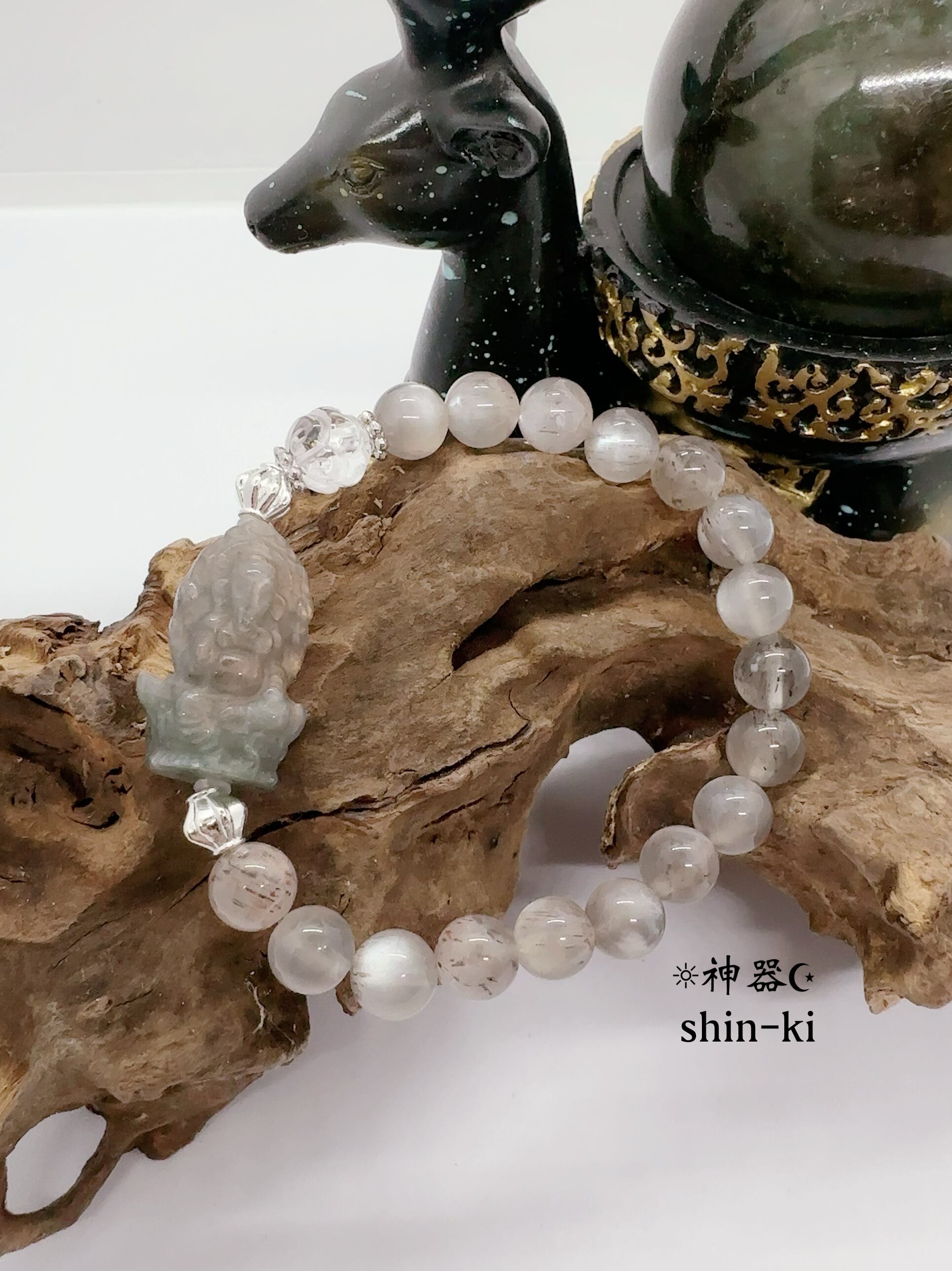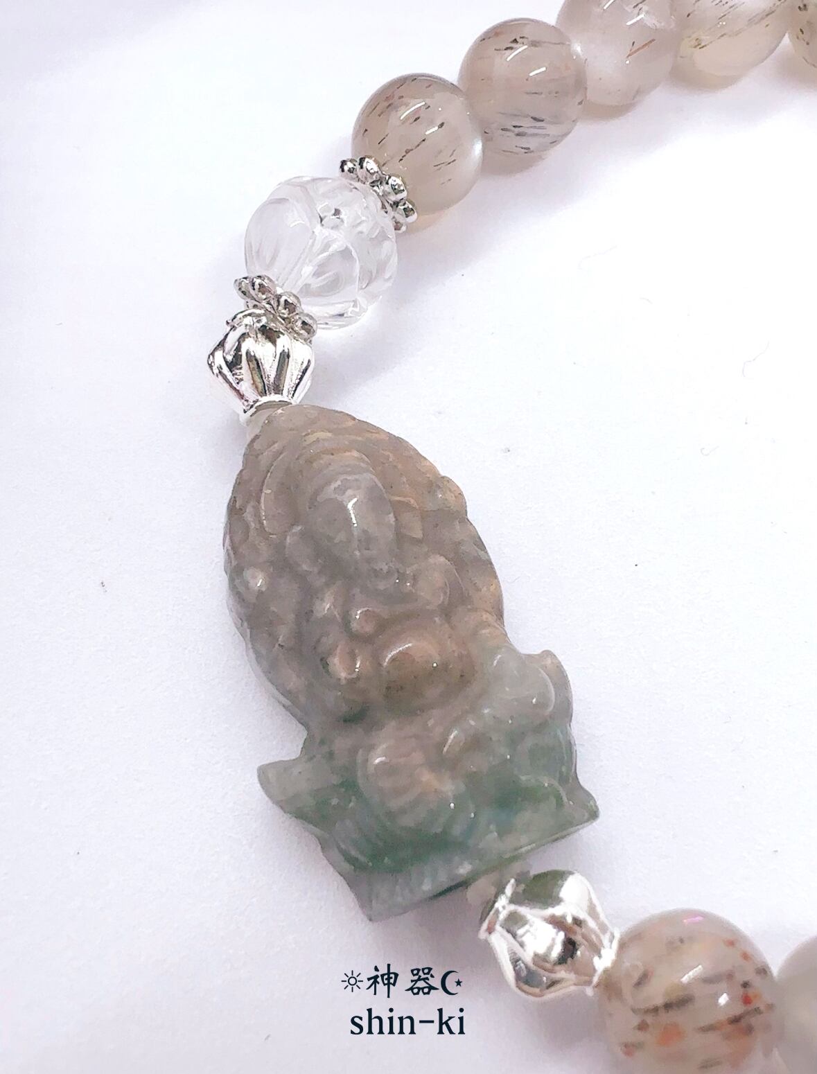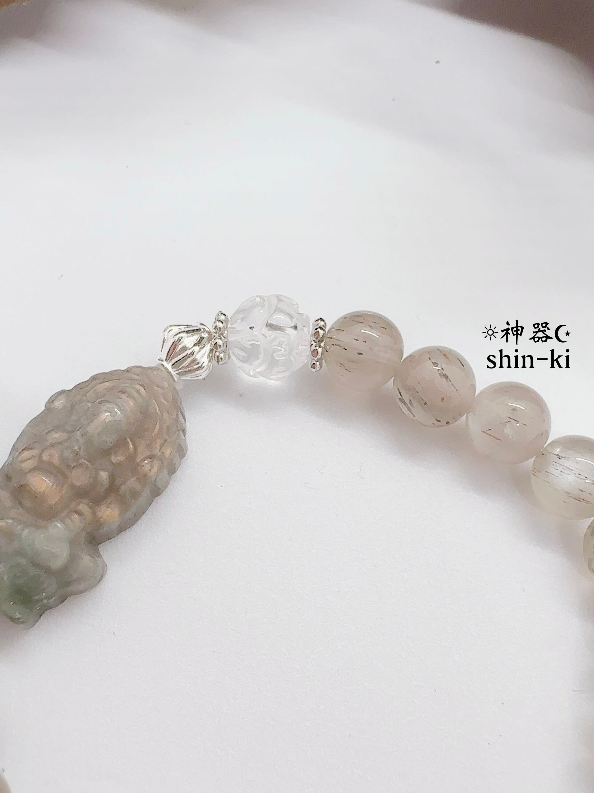 stone bracelet《ミニガネーシャ》ラブラドライト×《ロータス》水晶×グレーサンムーンストーン