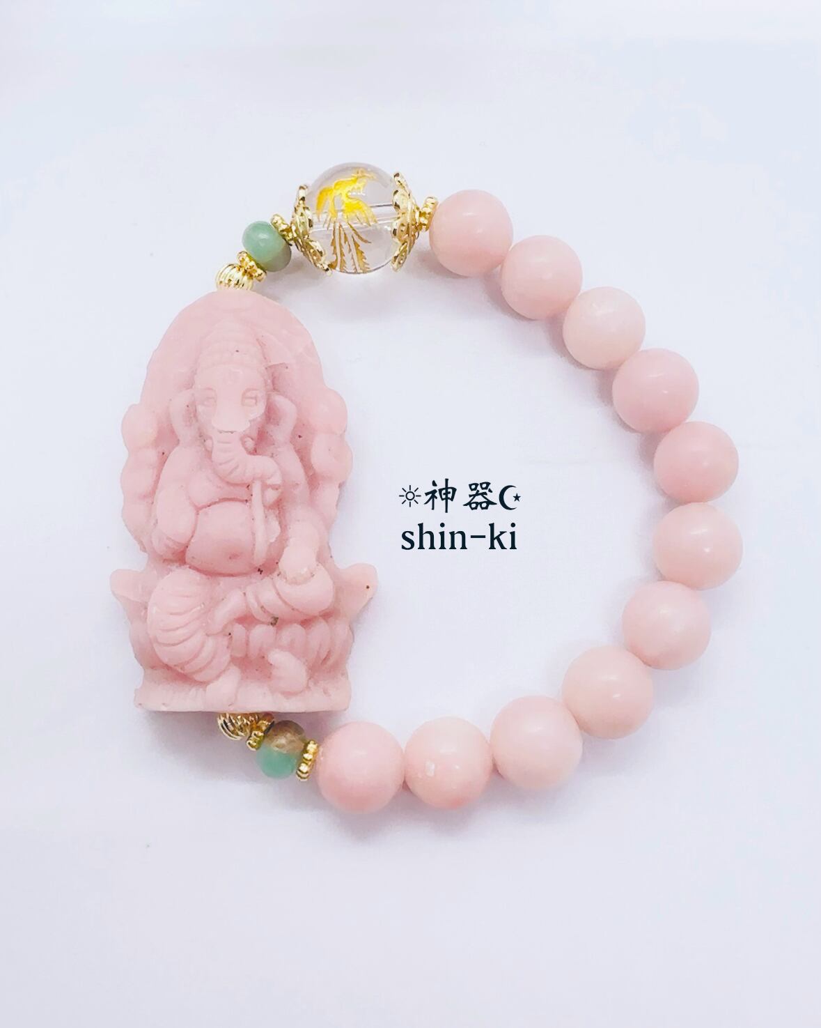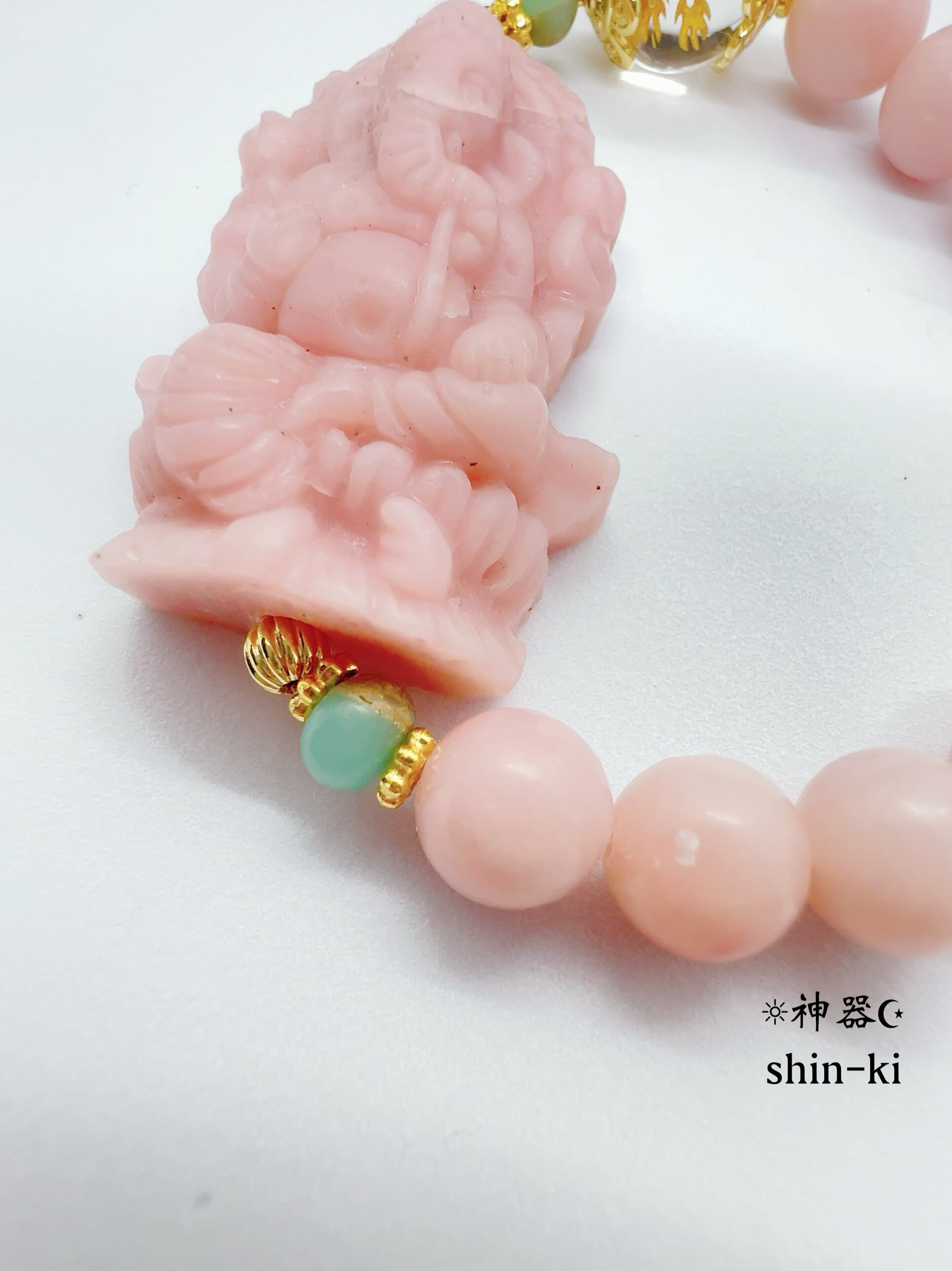 stone bracelet《ガネーシャ》ピンクオパール×《四神獣》水晶朱雀ソープストーン×インプレッションストーン