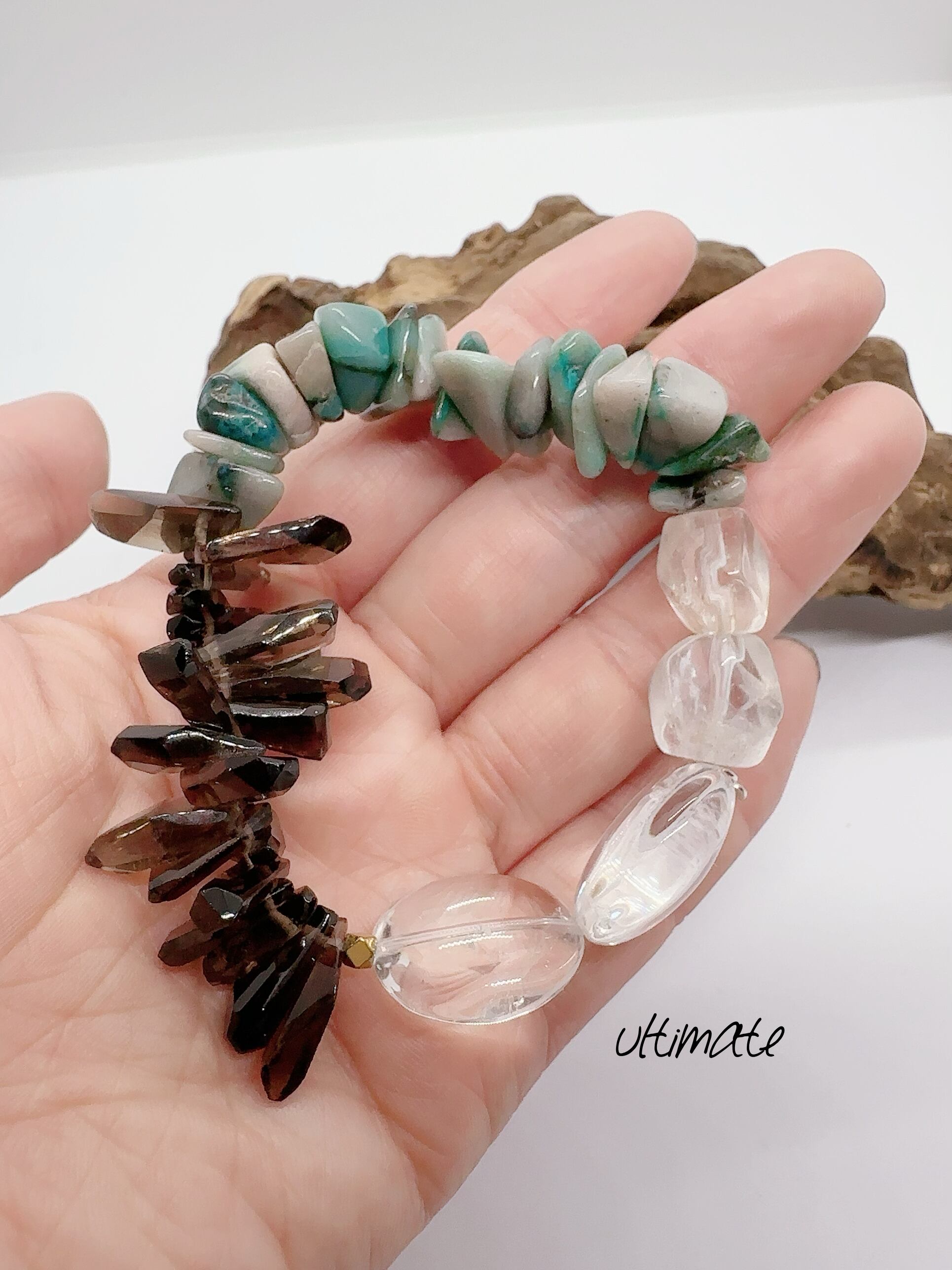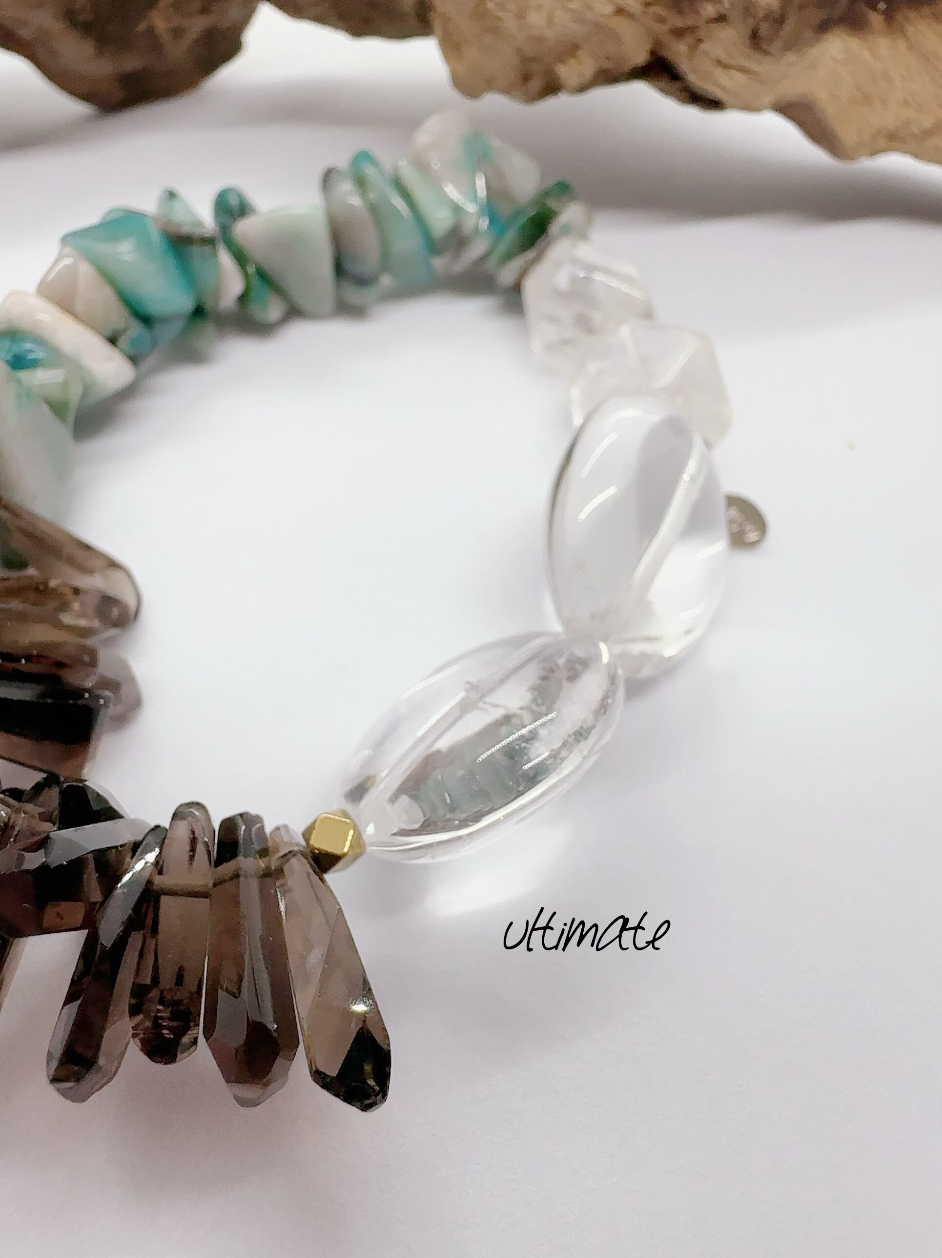 stone bracelet ポイントスモーキークォーツ× クァンタムクアトロシリカ×水晶