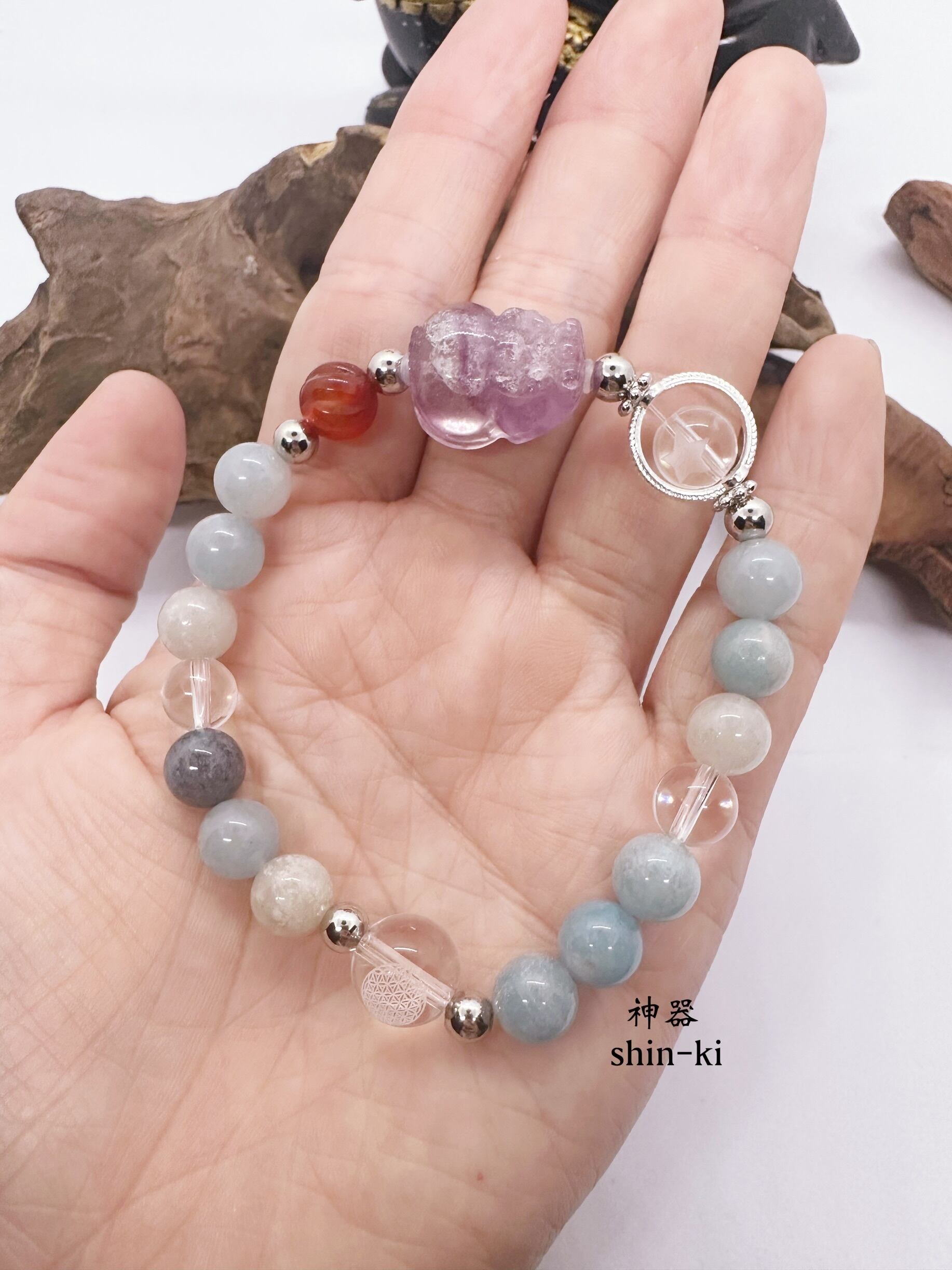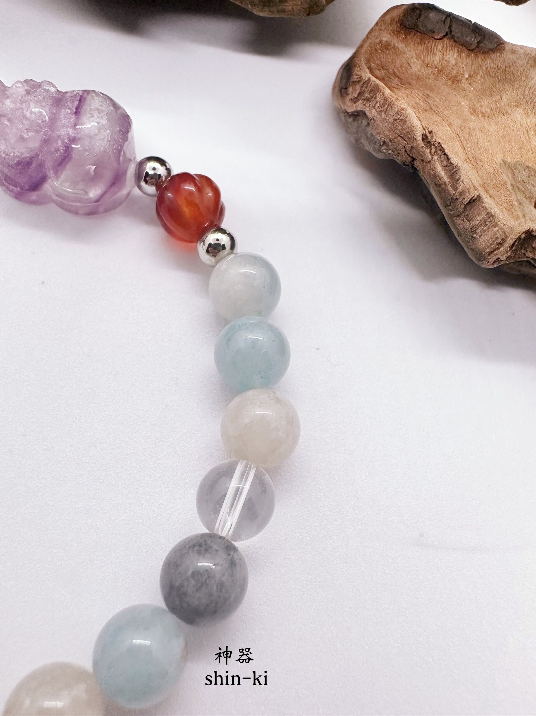 stone bracelet《貔貅》フローライト×カーネリアン×トロレアイト×水晶