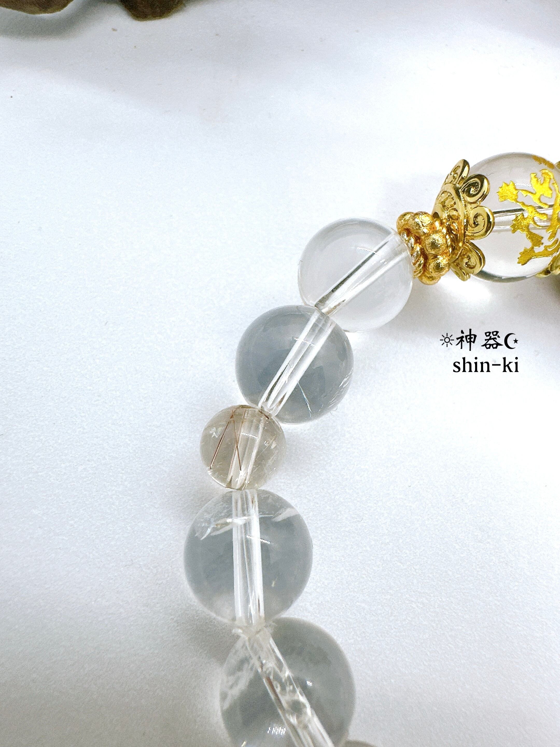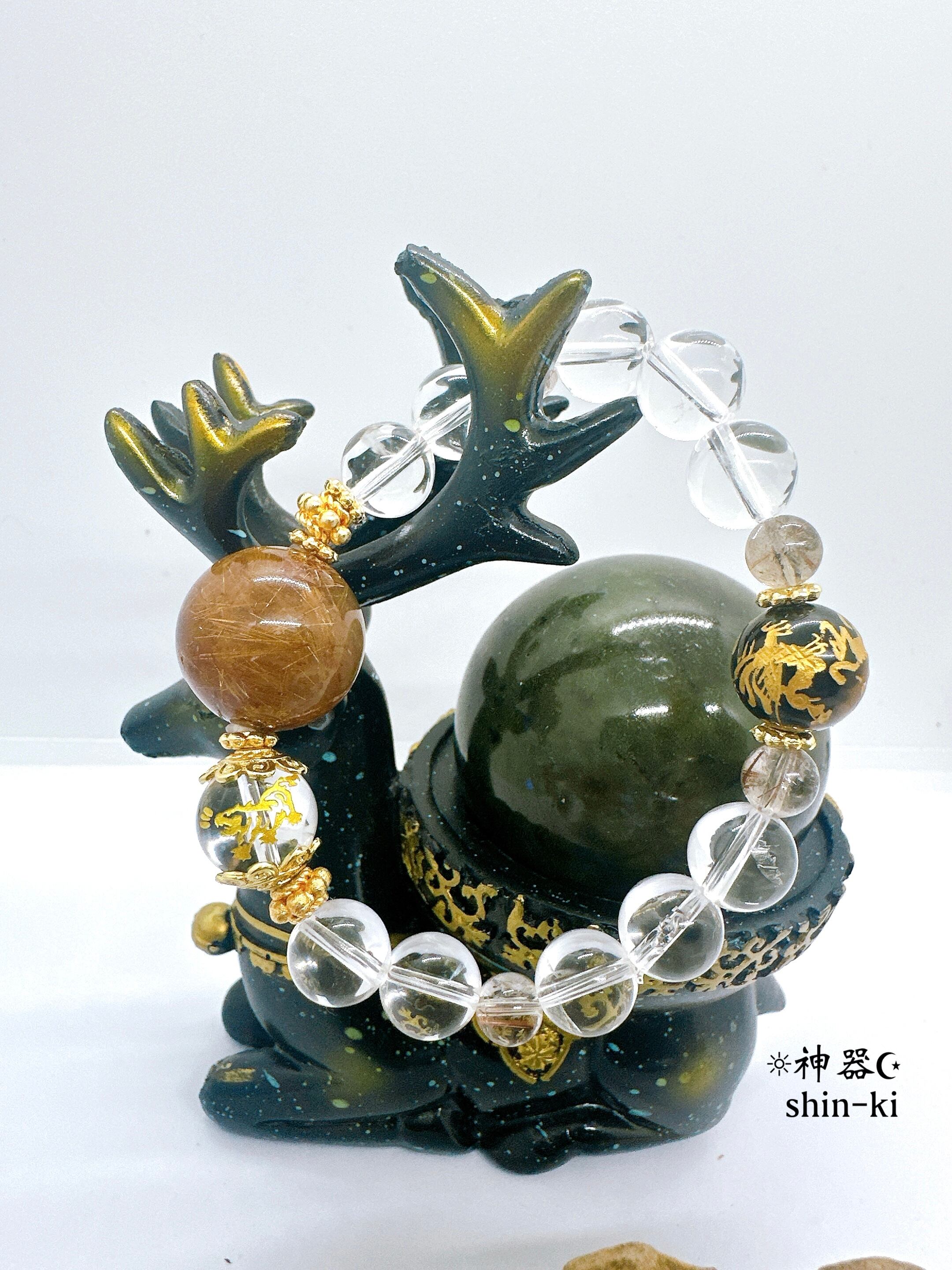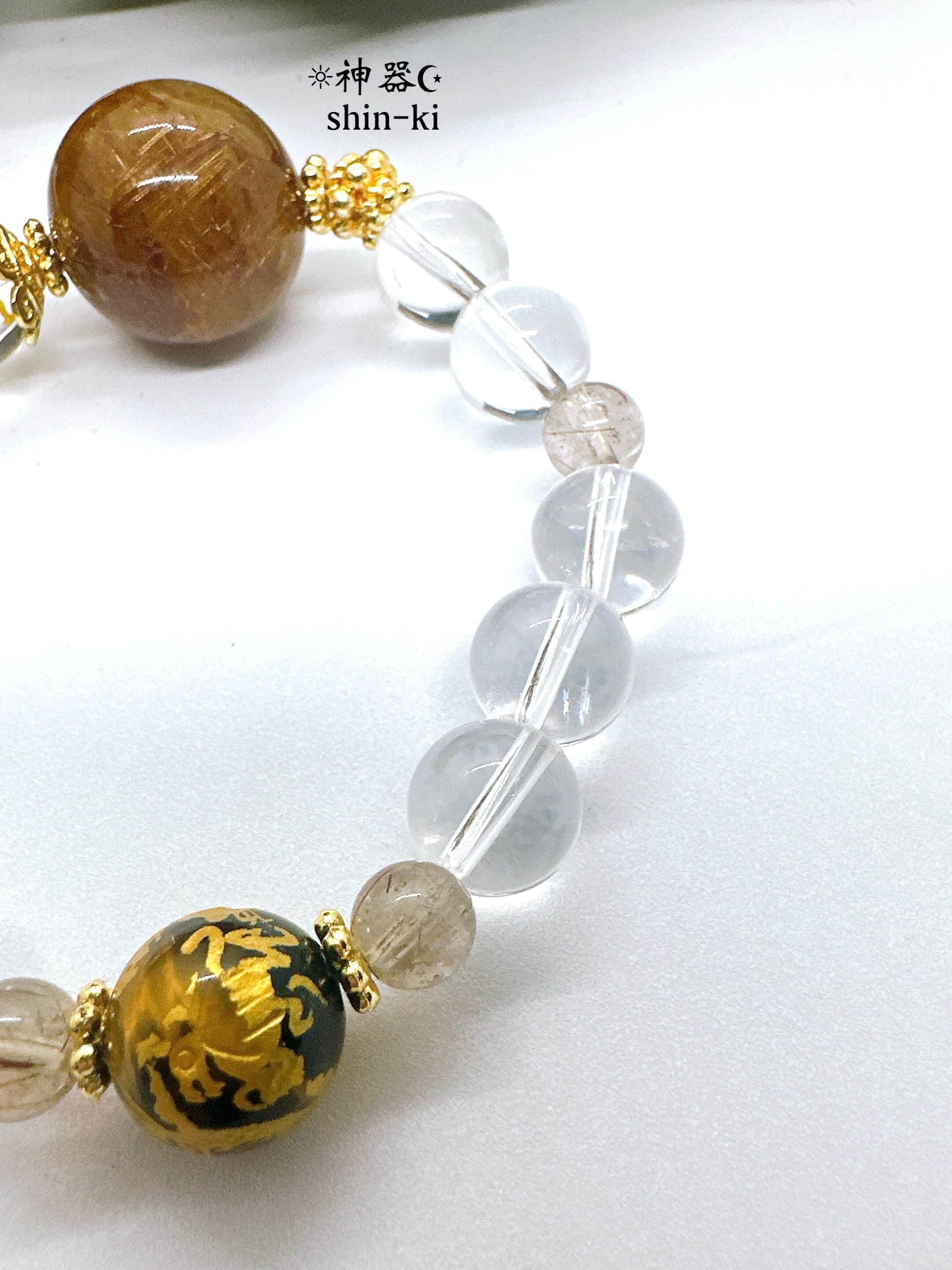 stone bracelet ルチルクォーツ×白虎(水晶)×四神獣×ブラウンルチルクォーツ×ヒマラヤ水晶
