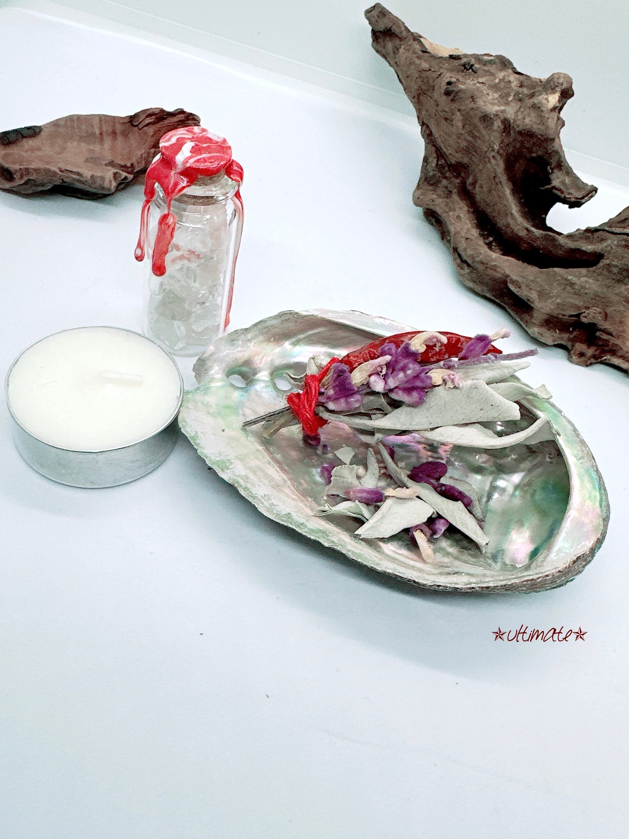 アバロンシェルを使ってホワイトセージを焚くことで、四元素のバランスを軽えると考えられています。