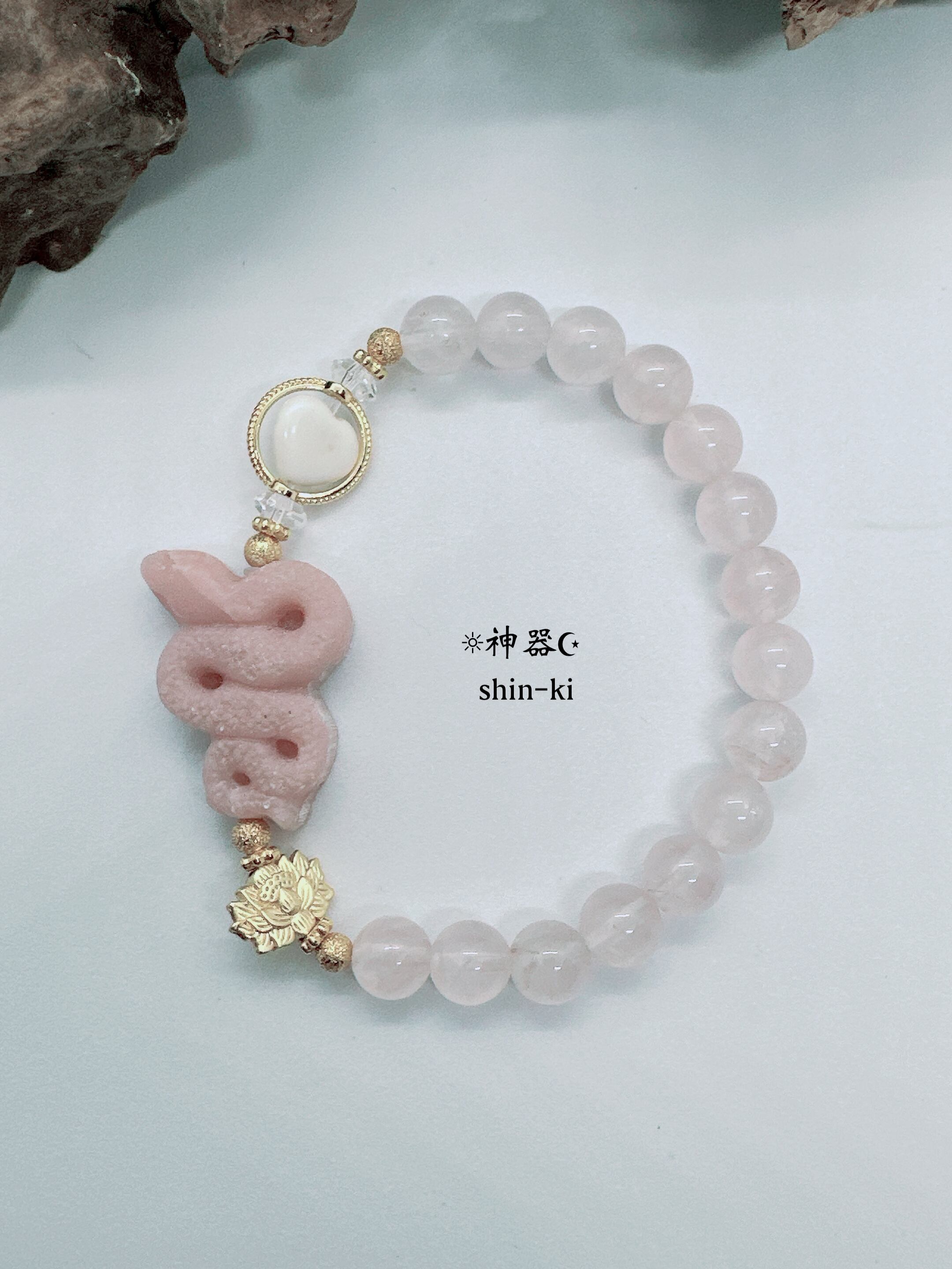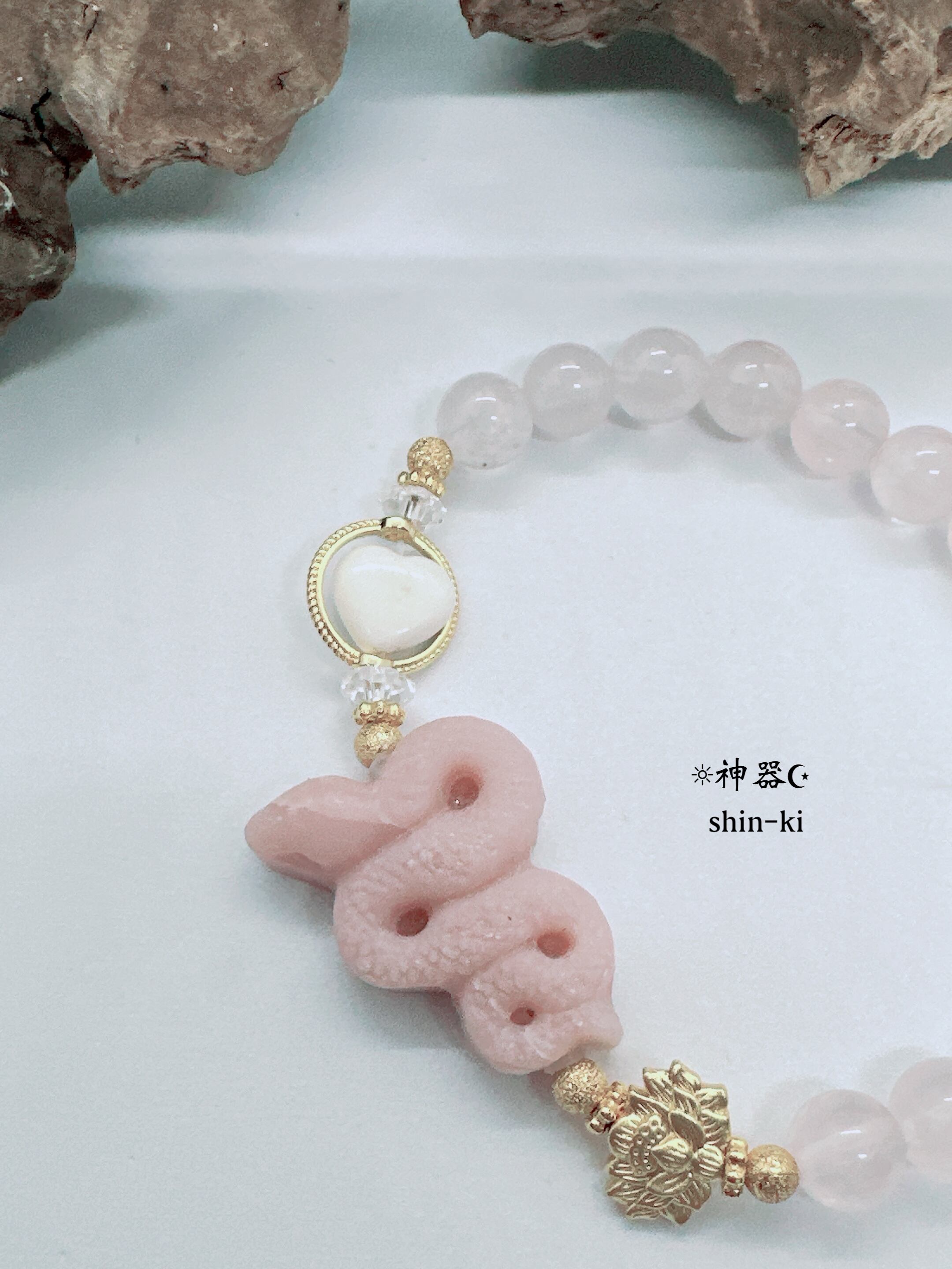 《蛇》ピンクオパール×ローズクォーツ×《ハート》ハウライト