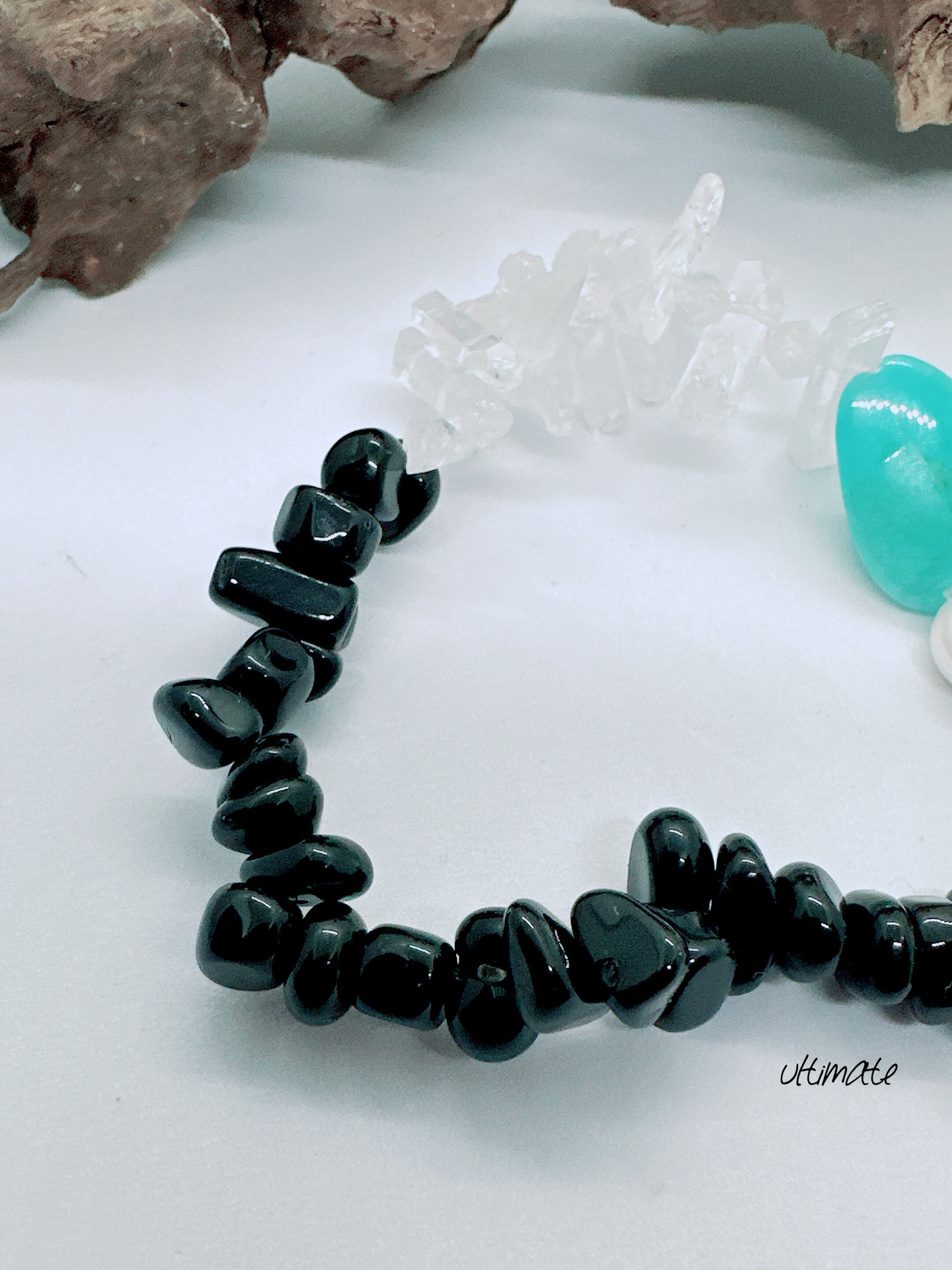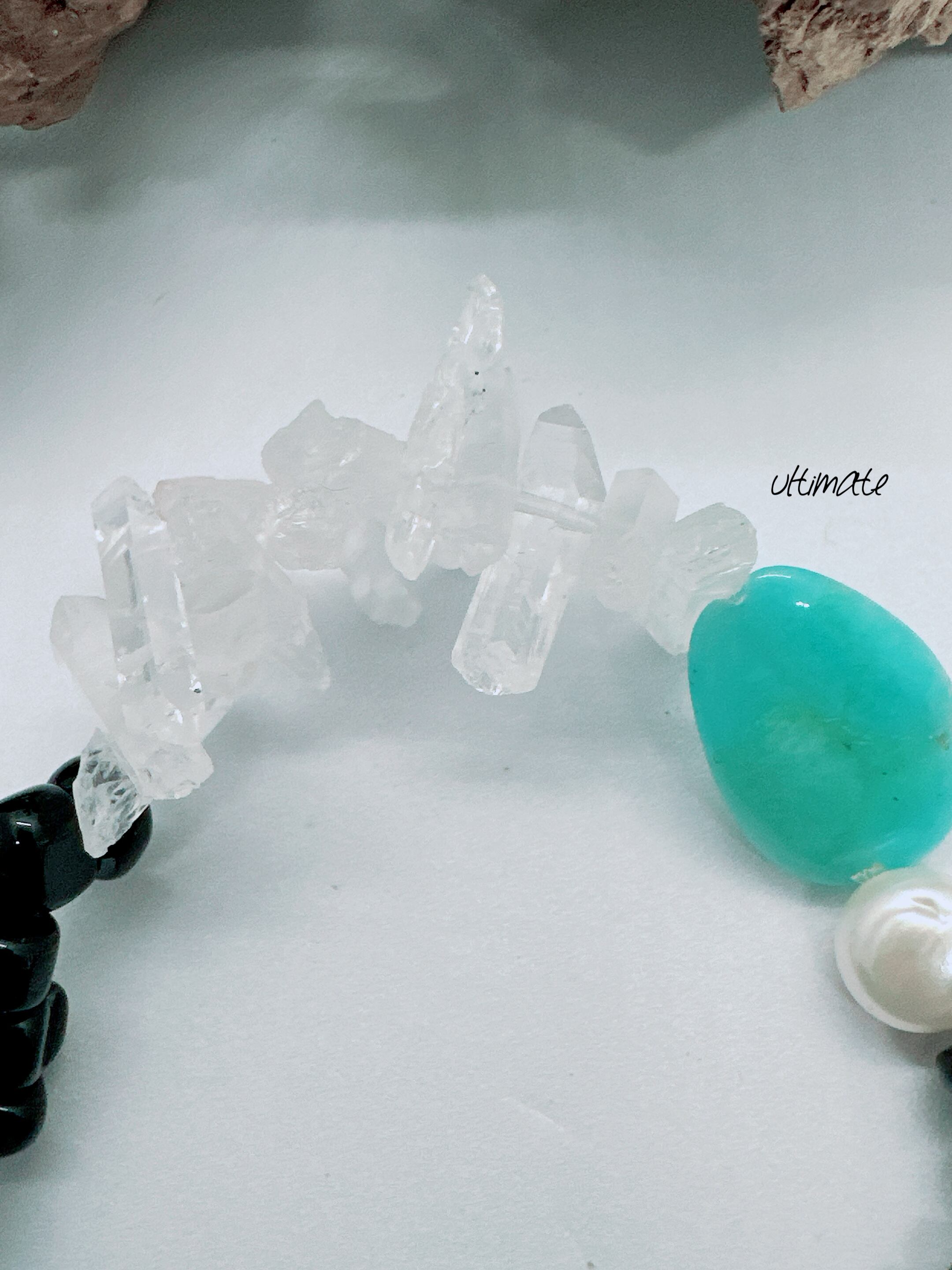 stone bracelet アマゾナイト×オニキス×アマゾナイト×バロックパール×氷柱水晶